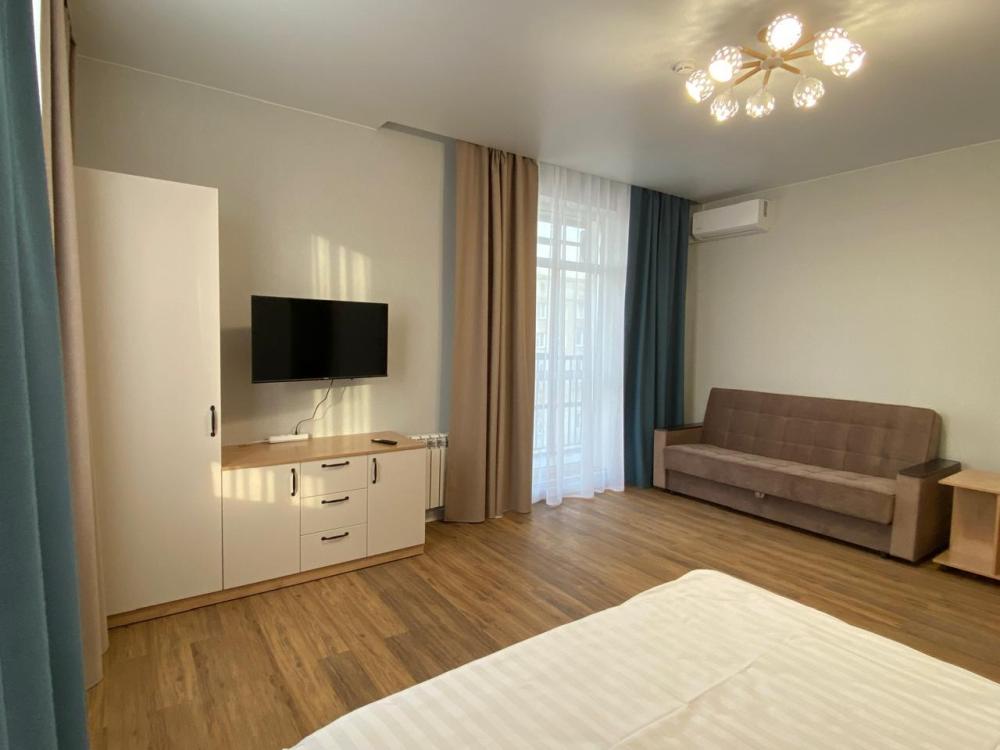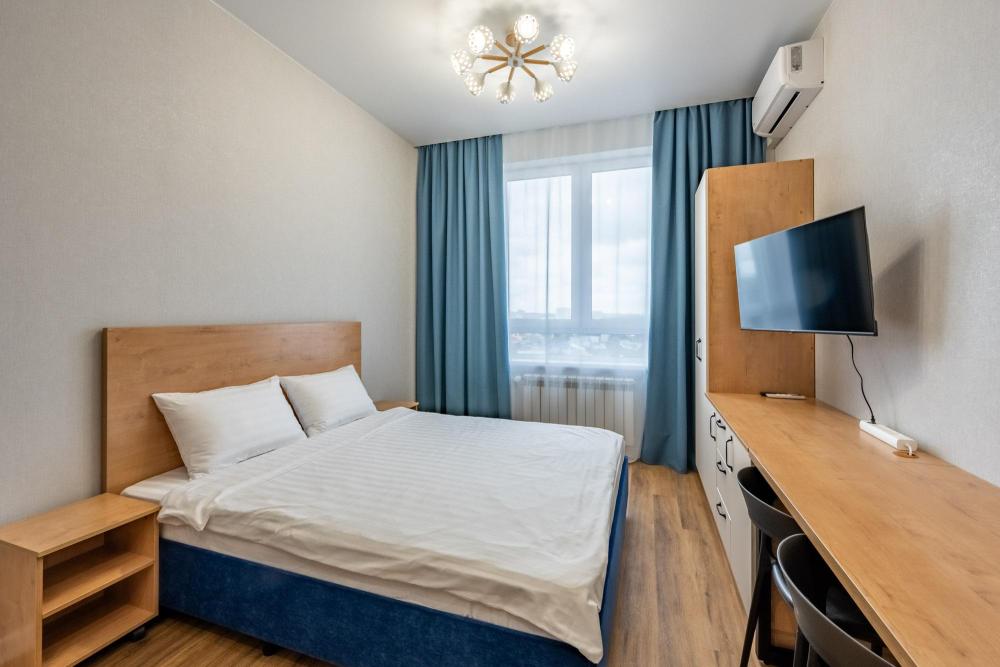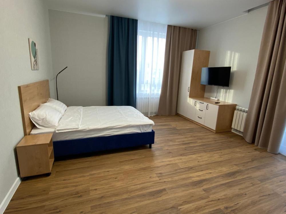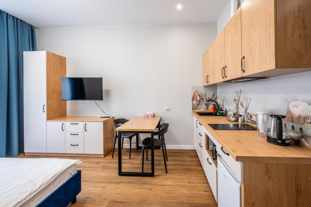 Уютная квартира - студия. Двуспальная кровать с ортопедическим матрасом, шкаф в комнате и прихожей. Белое постельное бельё, кухонная зона со всем необходимым. Предоставляем моющие средства для личной гигиены: зубной набор, шампунь, кондиционер для волос, жидкое мыло, шапочка для душа, тапочки, средство для стирки. В квартире есть: — телевизор с функцией Smart TV, — кондиционер, — микроволновка, — варочная поверхность, — холодильник, — чайник, фильтр для воды, — фен, — полотенца, — посуда для приготовления и для сервировки стола, — утюг и гладильная доска — стиральная машина — водонагреватель. Есть Wi-Fi, пользование включено в стоимость. ВОЗМОЖНА ОПЛАТА ОТ ЮРИДИЧЕСКОГО ЛИЦА ПО РАСЧЕТНОМУ СЧЕТУ. №117