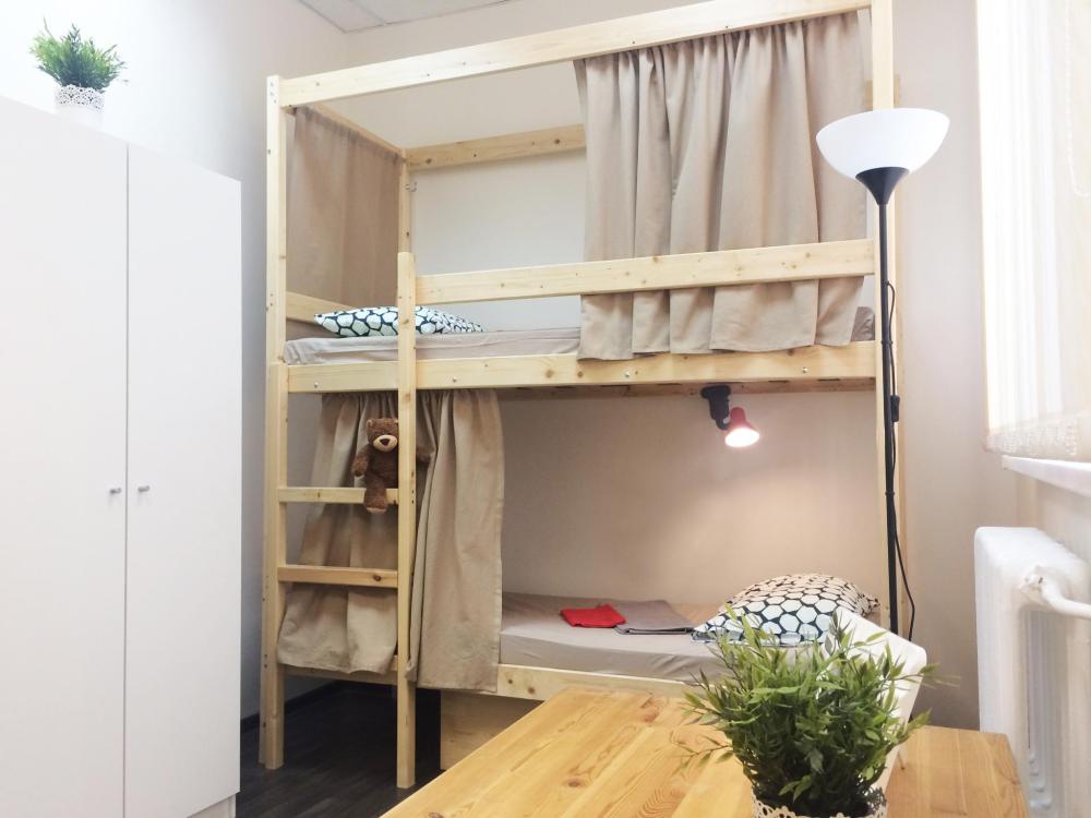 Комната хостела оформлена в светлых, теплых тонах. Комната оснащена персональным светильником, столом, стульями. Каждому гостю, предоставляется новое, красивое постельное белье и полотенца. Имеется бесплатный WI-FI.