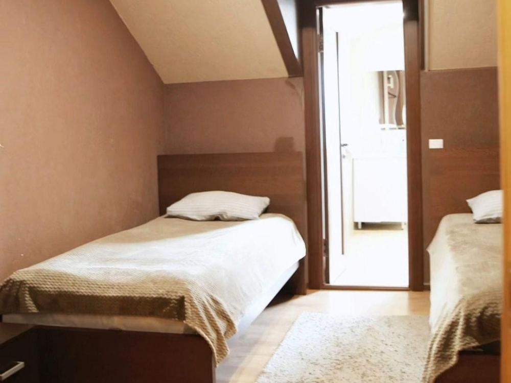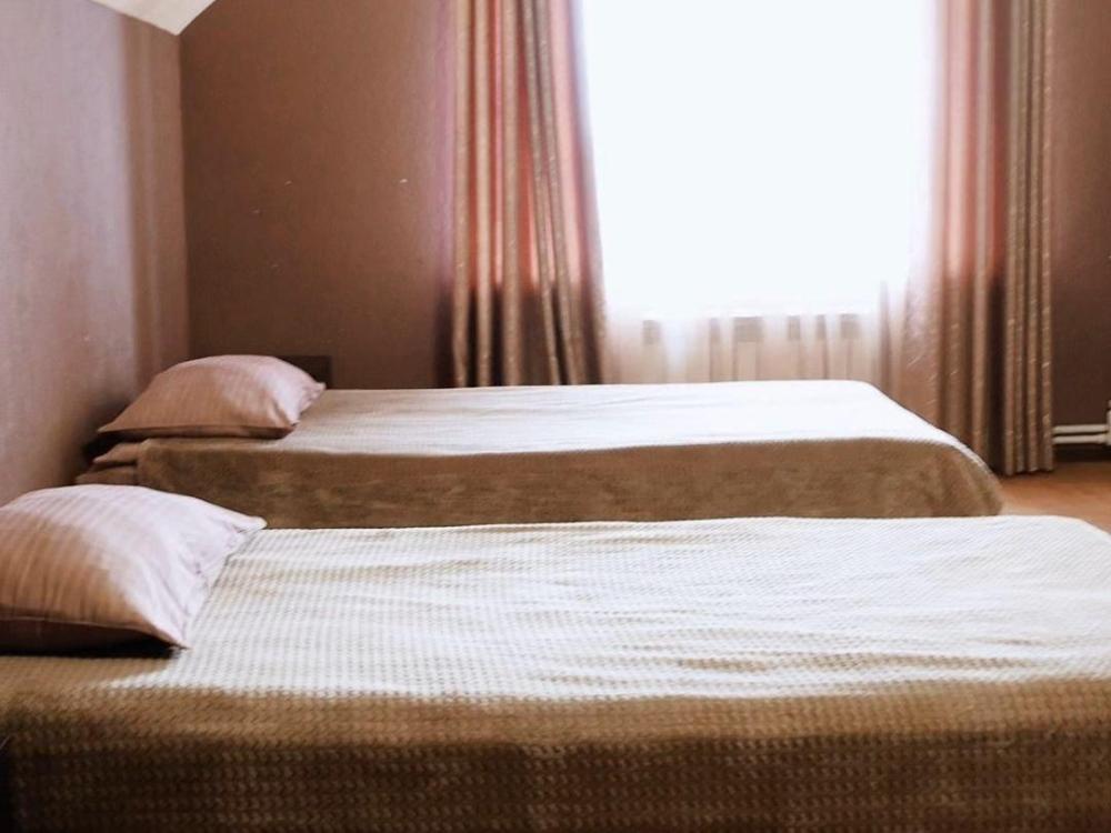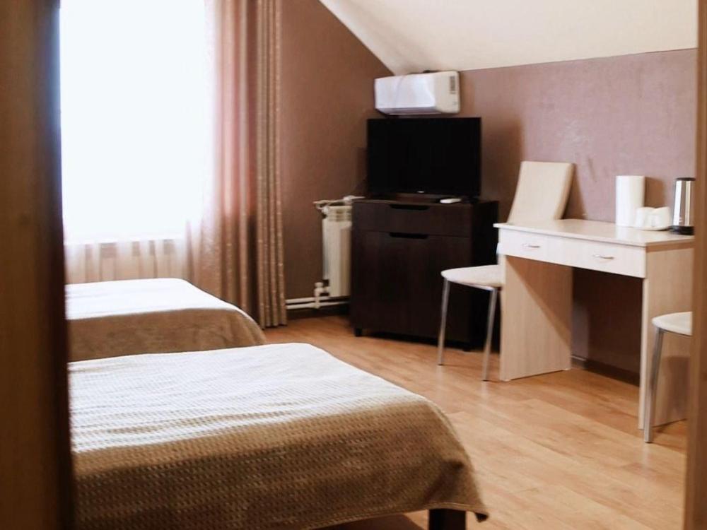В номере : две односпальные кровати, телевизор, прихожая, ванная и туалет на этаже