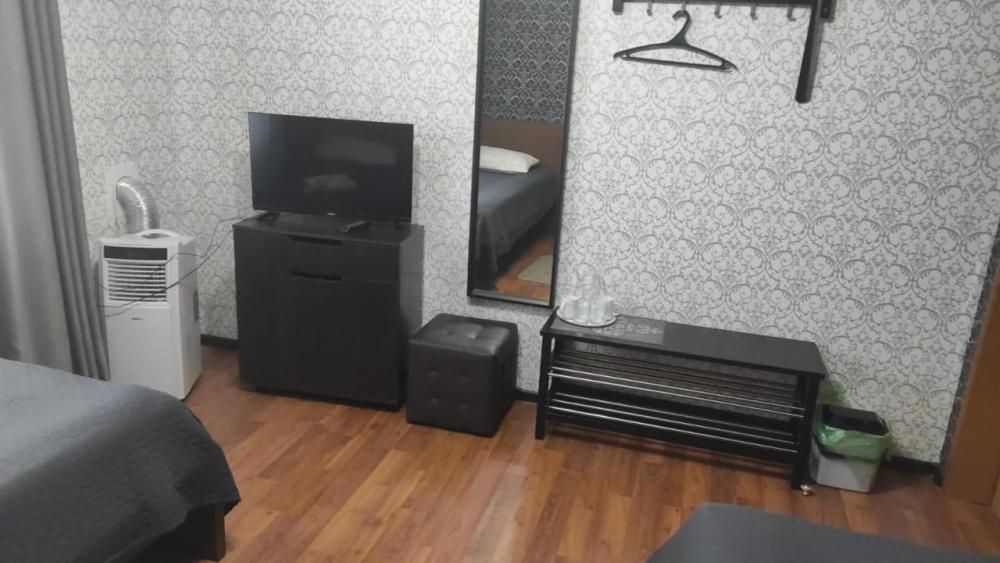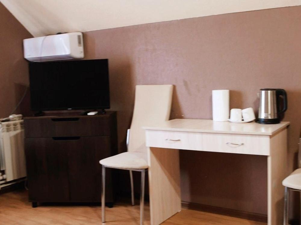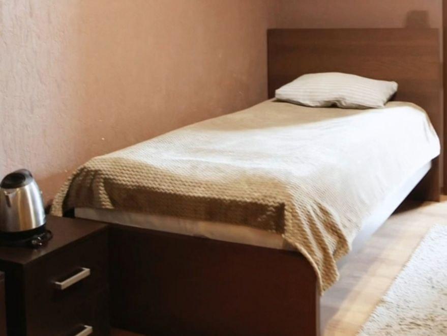 В номере : одна односпальная кровать, телевизор, прихожая, ванная и туалет на этаже