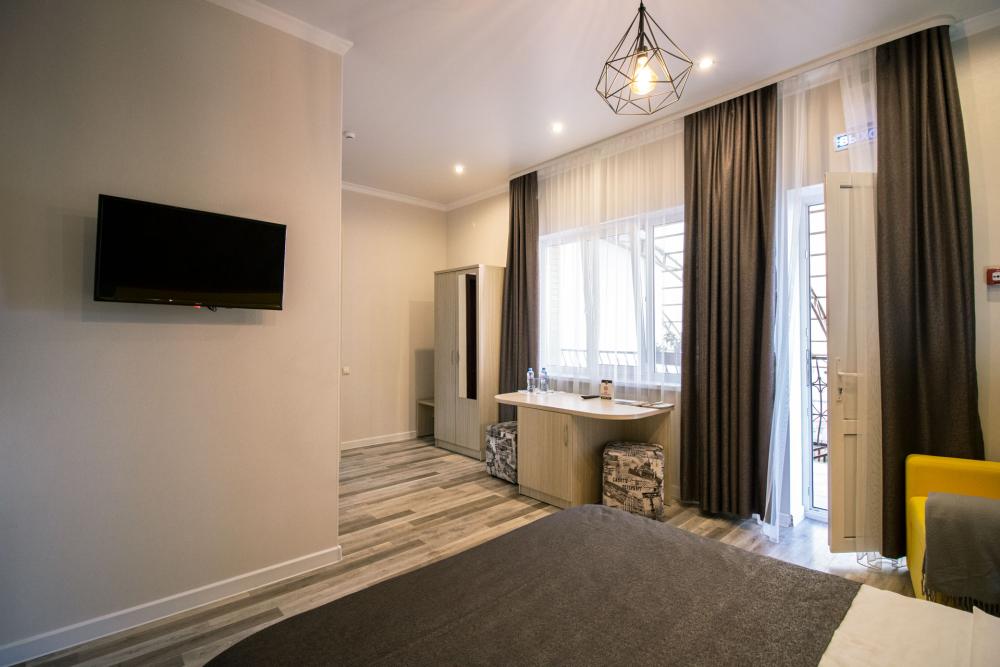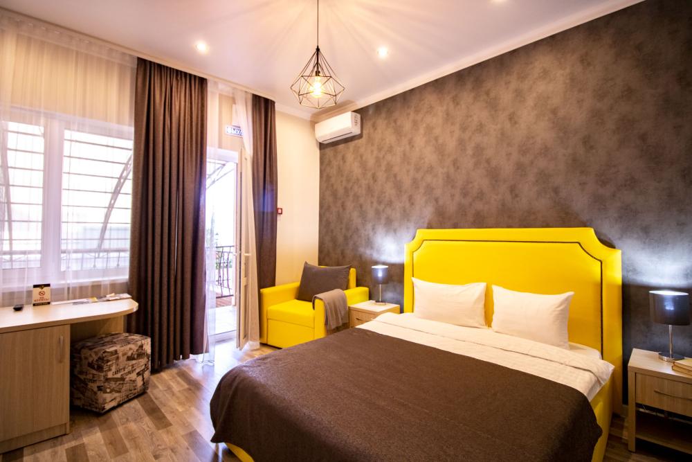 Двухместная комната с двуспальной кроватью. Комната оснащена балконом, телевизором, местом для хранения одежды, кондиционером, ванной комнатой, предоставляются туалетно-косметические принадлежности.