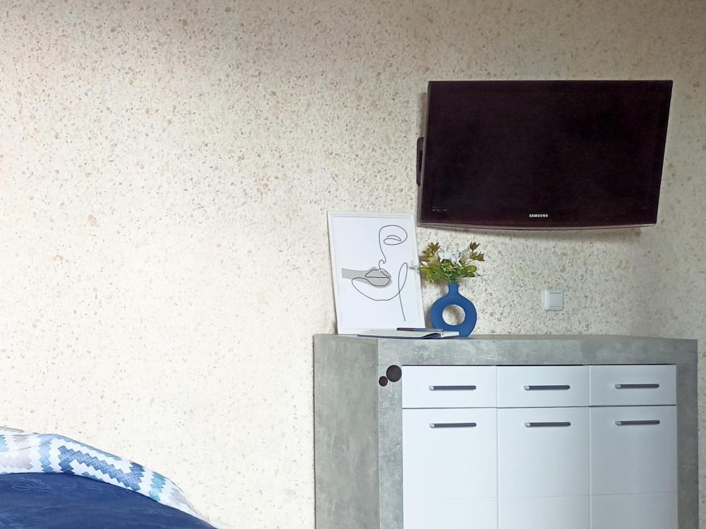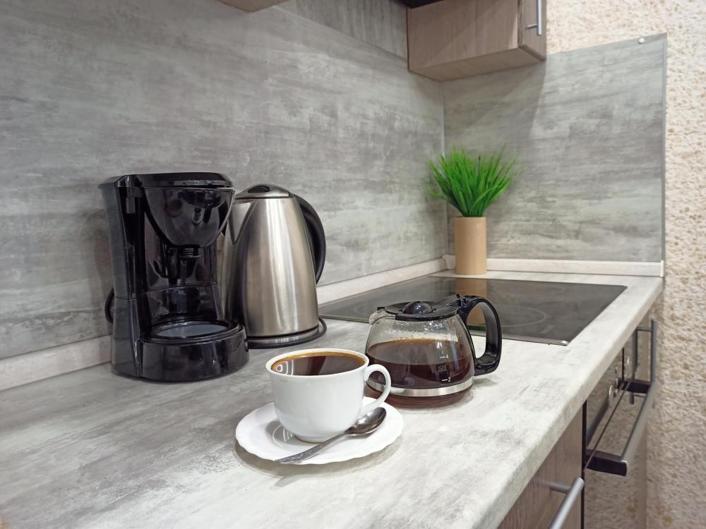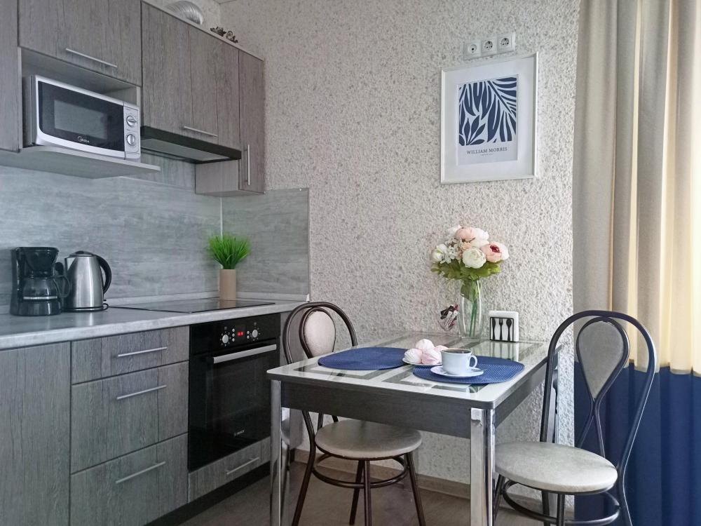 Апартаменты студия для 2 гостей. В квартире удобная двуспальная кровать, качественные постельные принадлежности, мягкие полотенца, цифровое ТВ, скоростной Wi-Fi. Кухонная зона со всем необходимым: холодильник, микроволновка и плита, кухонная утварь и посуда. Накопительный водонагреватель на случай отключения горячей воды. Возможно допoлнитeльнoe мecтo для ребенка - кресло-кровать.