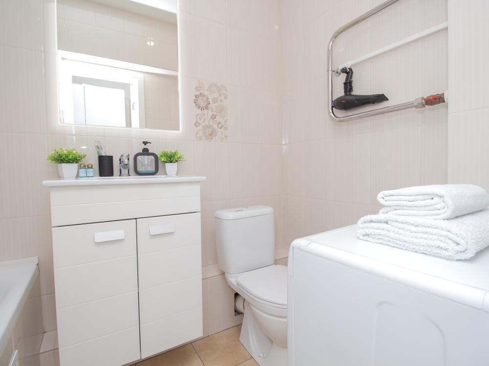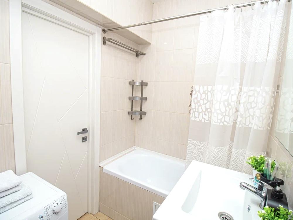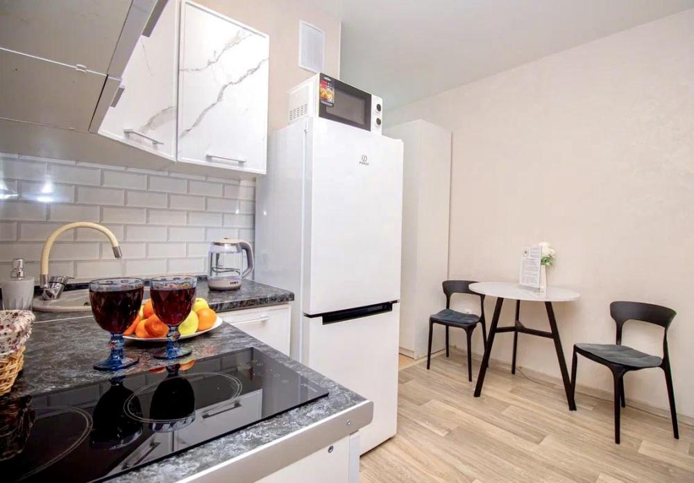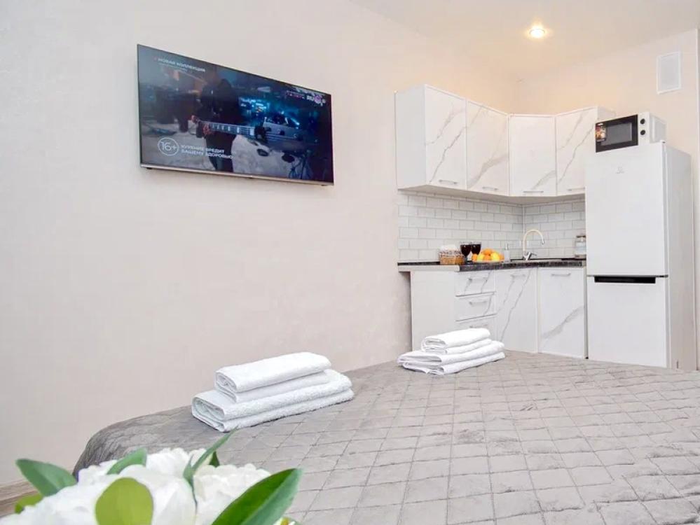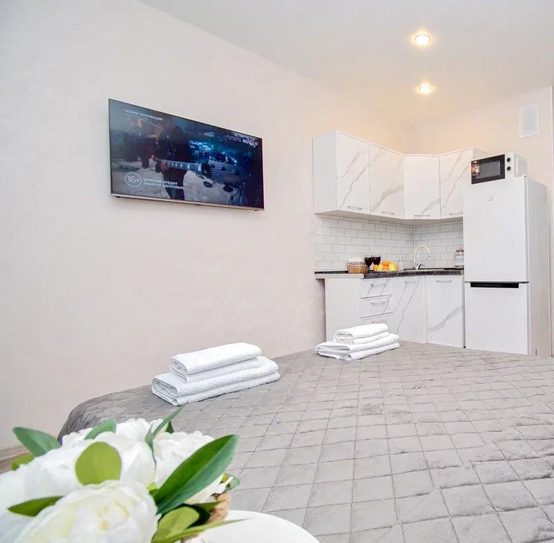 Комфортабельная новая студия с евроремонтом. Удобная большая двуспальная кровать с выглаженным постельным бельем из качественного материала (хлопок). Полностью оборудованная кухня: столовые приборы, набор посуды, микроволновая печь и многое другое, необходимое для приготовления пищи. Высокоскоростной WI-FI интернет, большой ЖК телевизор с множеством каналов по кабельному ТВ и поддержкой Смарт-ТВ.