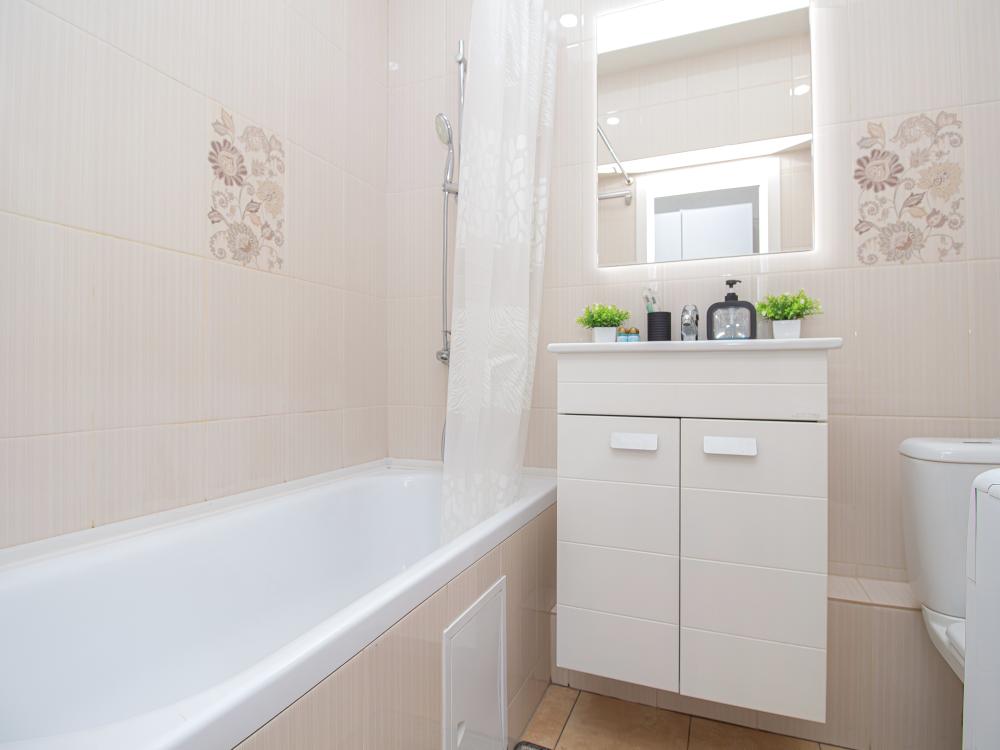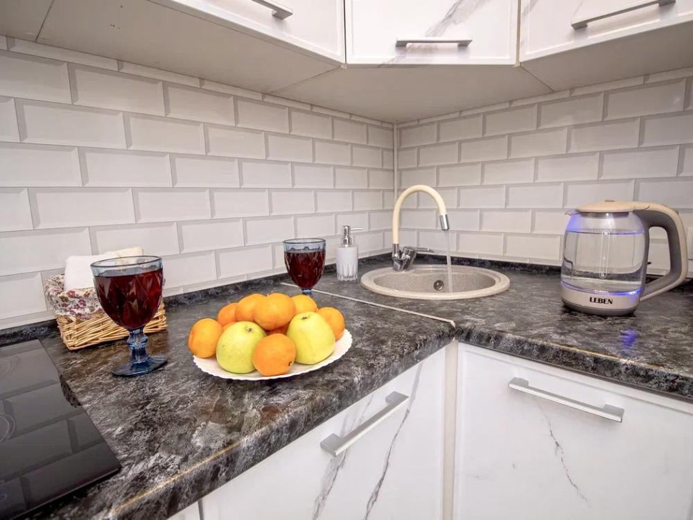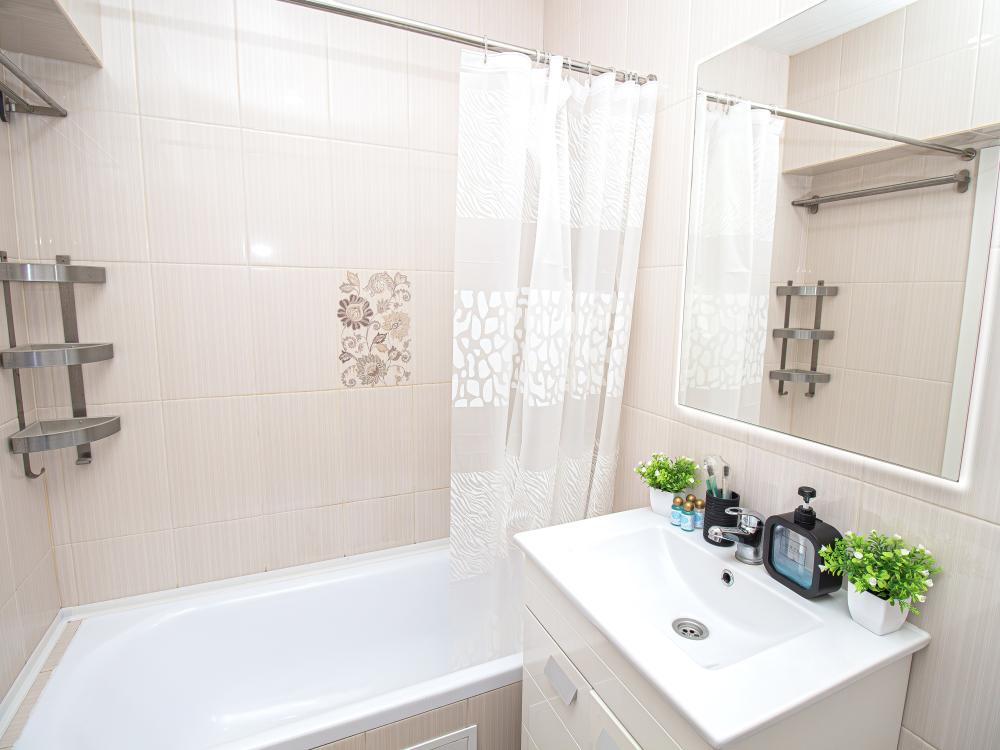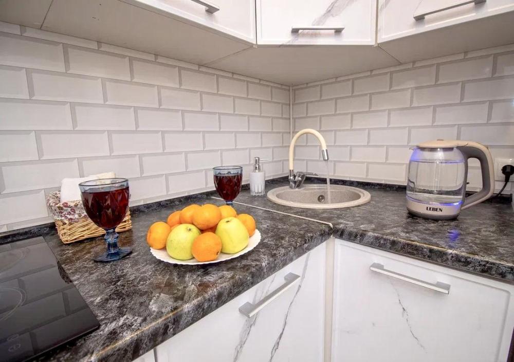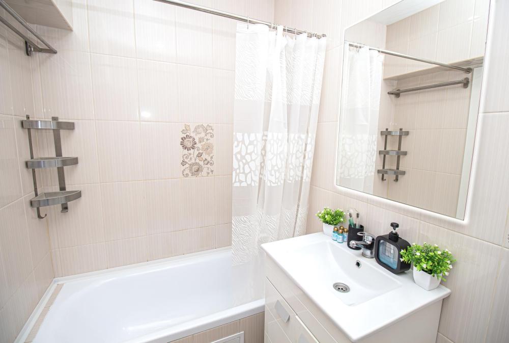 Комфортабельная новая студия с евроремонтом. Удобная большая двуспальная кровать с выглаженным постельным бельем из качественного материала (хлопок). Полностью оборудованная кухня: столовые приборы, набор посуды, микроволновая печь и многое другое, необходимое для приготовления пищи. Высокоскоростной WI-FI интернет, большой ЖК телевизор с множеством каналов по кабельному ТВ и поддержкой Смарт-ТВ.