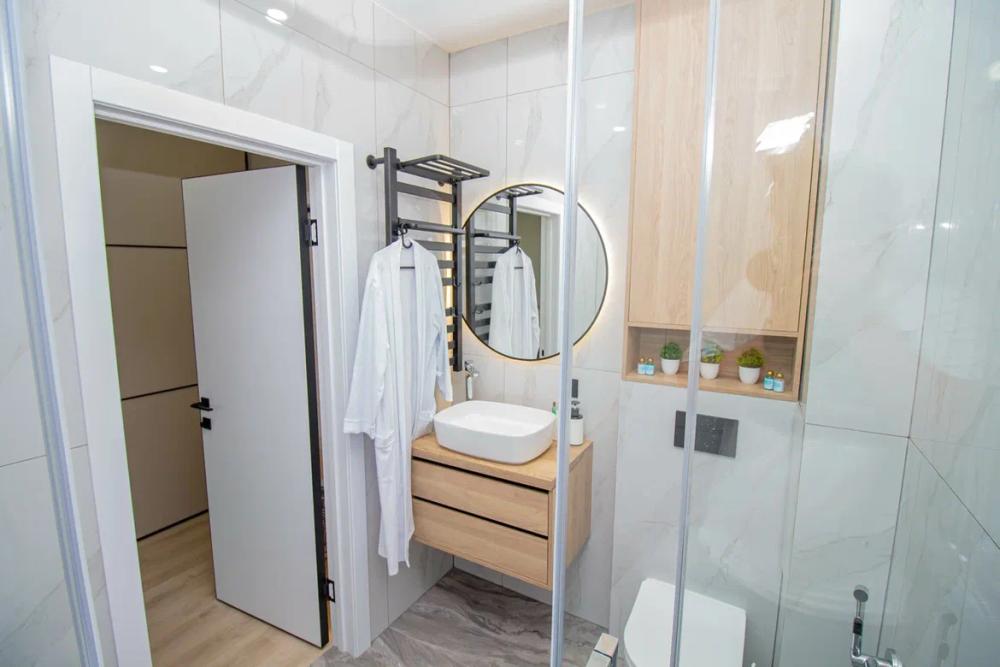 Дистанционный заезд. Вам больше не нужно ждать человека, который вас заселит и подстраиваться под него. Вы можете заехать даже ночью, просто пройдя процедуру онлайн и получив виртуальные ключи (код) от умного замка. Совершенно новая, очень уютная и красивая квартира - студия с дизайнерским ремонтом в самом центре газовой столицы. Удобная большая двуспальная кровать с выглаженным постельным бельем из качественного материала (хлопок); полностью оборудованная кухня: столовые приборы, набор посуды, духовка, микроволновая печь и многое другое, необходимое для приготовления пищи; бесплатный высокоскоростной WI-FI интернет, большой ЖК телевизор с высоким качеством видео и множеством каналов; Удобное местоположение и развитая инфраструктура. В пешей доступности находятся: ТРЦ "Солнечный"- самый крупный в городе; продуктовые и строительные магазины, библиотека, поликлиника, храм, мечеть, отделения банков, салоны красоты и многое другое. Так же в квартире имеется халат, фен, стиральная машинка, сушилка с бельем, утюг и гладильная доска.