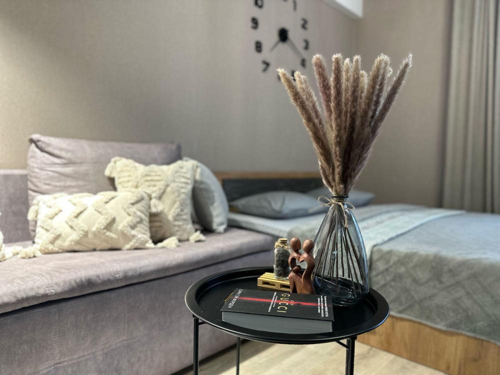 Уютная студия для комфортного проживания гостей нашего города . Круглосуточная служба поддержки для решения всех возникших вопросов во время проживания. Для комфортногo пpоживaния пpедоставляютcя: - душевые принaдлeжности - гель, шaмпунь, пoлотeнца, стиральный порошок. - cтиральная машина, сушилка. - свежее постельное бельё и полноценный набор посуды . - ТV и Wi-Fi. - холодильник. - пылесос. - вентилятор для охлаждения помещения и плотные шторы. - ⁠фен. - приветственный набор: чай, кофе. - посуда для приготовления пищи. Проживание : Без животных. Залог 2000₽, (который возвращается при выселении). Заселение только по предъявлению ПАСПОРТА(права или иной документ удостоверяющий личность). Квартира не сдается для вечеринок и мероприятий(не согласованных с администратором заранее!!!) В квартире, включая туалет, ванную комнату, лоджию и балкон -КУРИТЬ ЗАПРЕЩЕНО Добро пожаловать!!!