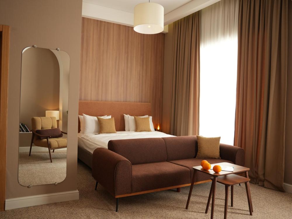 Окунитесь в атмосферу уюта и элегантности в номере категории Супериор с балконом, расположенном в историческом здании нашего отеля, построенного в 1900 году. Просторный и светлый номер площадью от 20 до 25 м² сочетает в себе оригинальный архитектурный шарм прошлого и современные стандарты комфорта. Изящный балкон с видом на море или на горы — идеальное место для утреннего кофе или вечернего бокала вина. В ванной комнате — душевая кабина и всё необходимое для вашего комфорта.