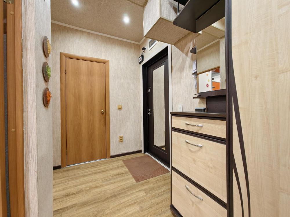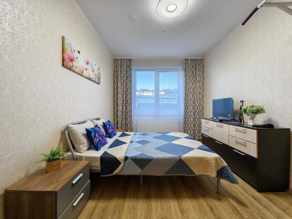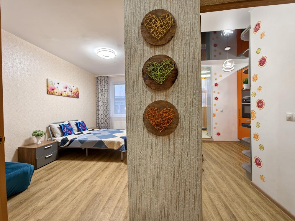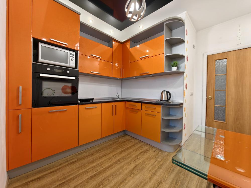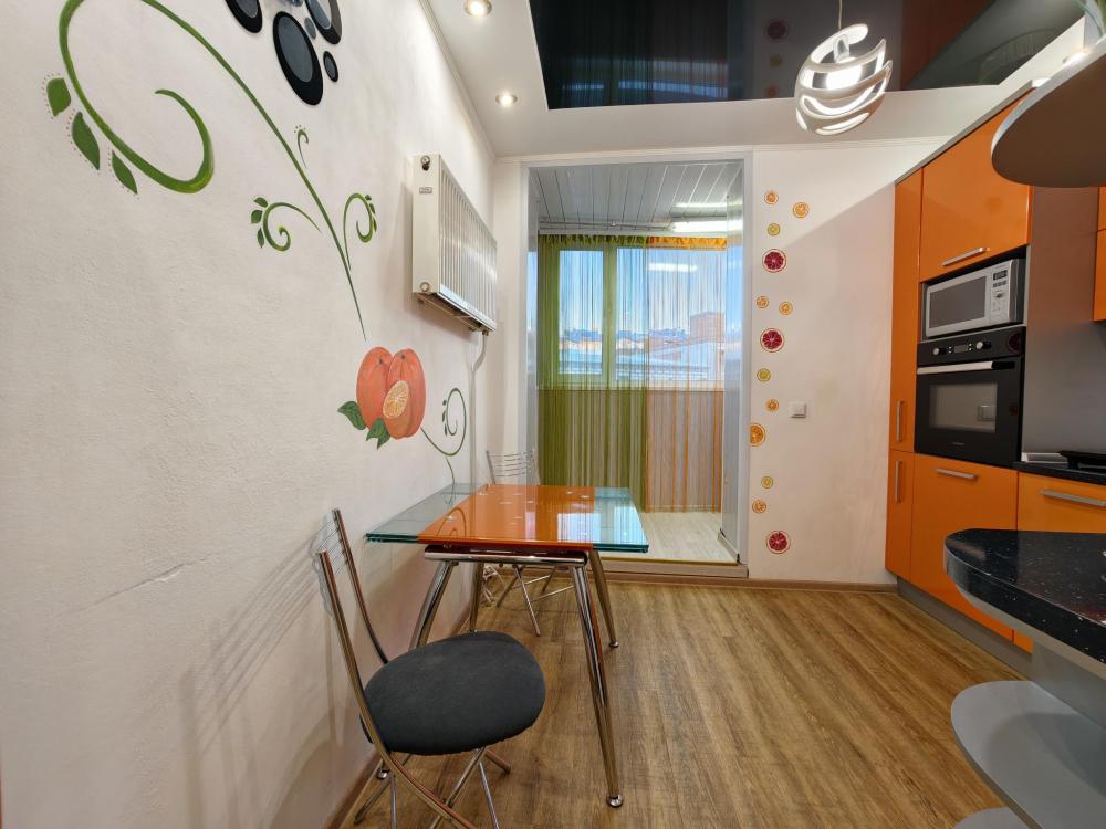 Главное преимущество квартиры — удобное спальное место. В спальне установлена большая двуспальная кровать с ортопедическим матрасом высокой комфортности, свежим постельным бельем и мягкими подушками. Кухня оборудована всем необходимым: холодильником, плитой, микроволновой печью, чайником, набором посуды и столовыми приборами. В ванной комнате — современная сантехника, стиральная машина, фен и чистые полотенца.