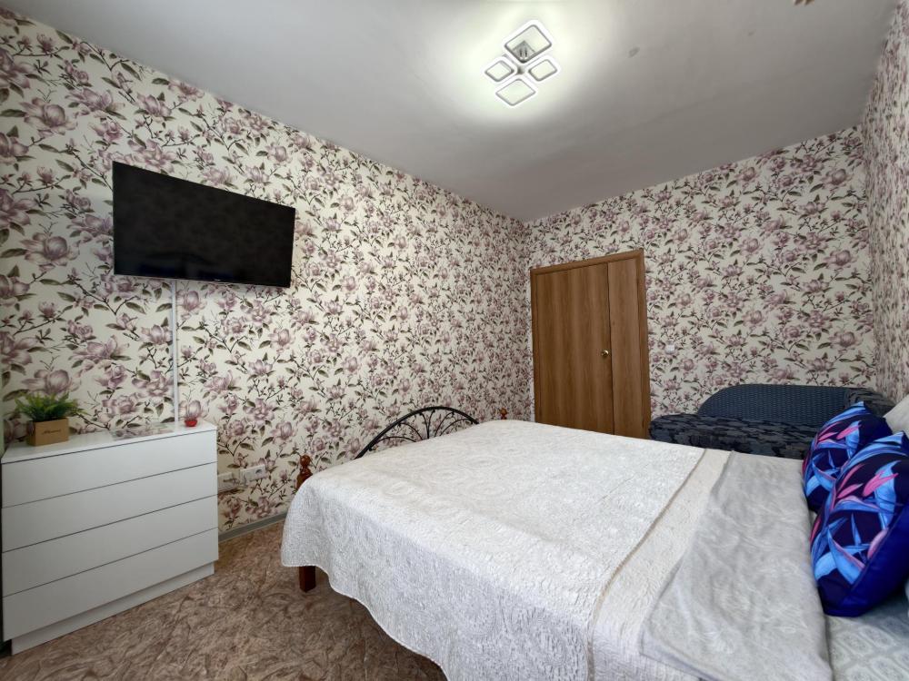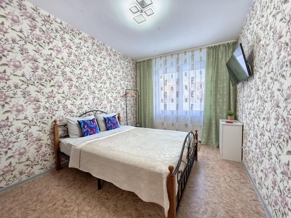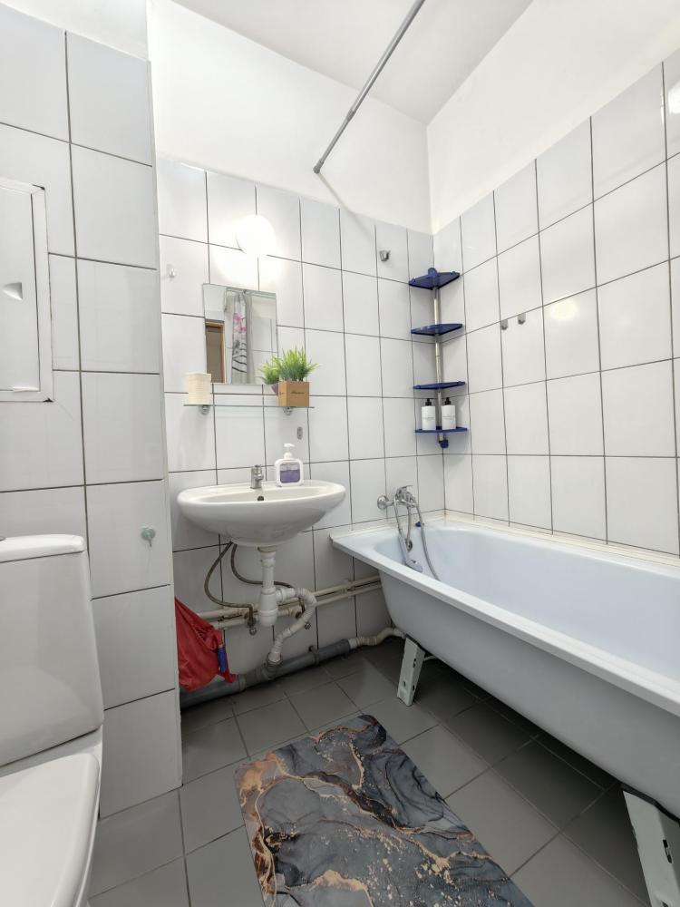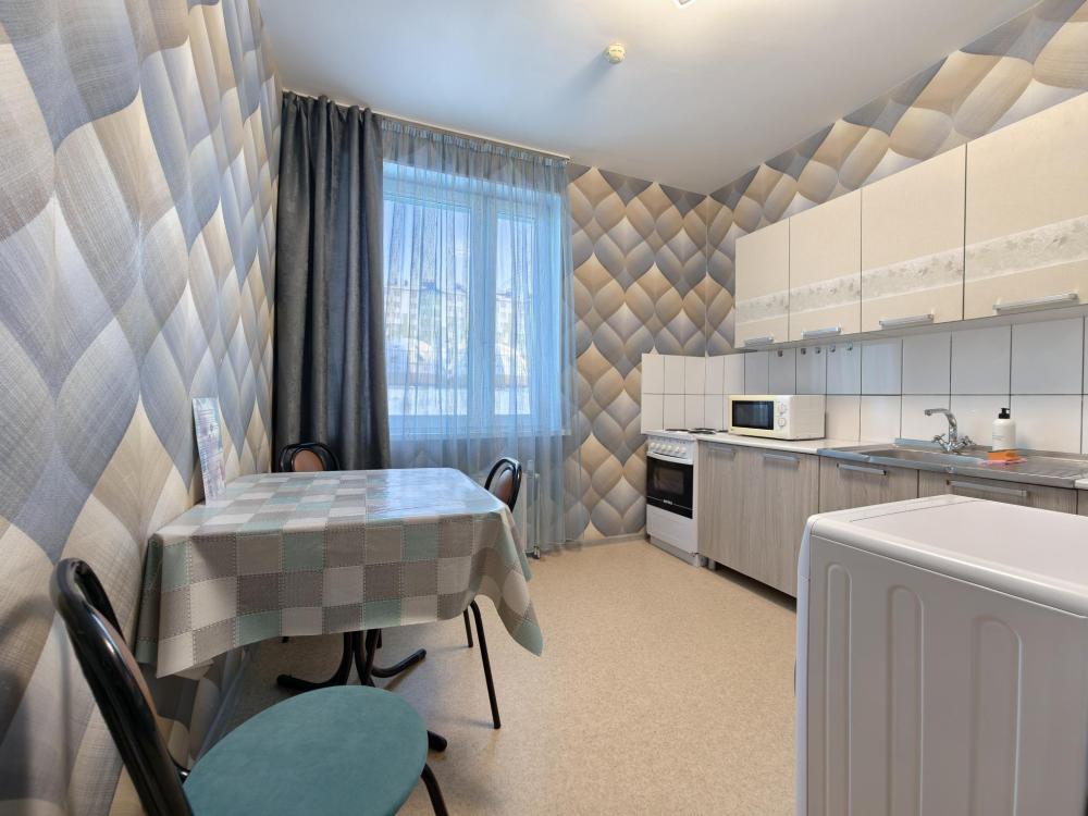 Просторное и светлое помещение оформлено в современном стиле, где каждая деталь подобрана для вашего удобства. В квартире создана приятная атмосфера уюта и спокойствия: мягкий свет, качественная мебель и продуманная планировка позволят почувствовать себя как дома. Главное преимущество квартиры — удобное спальное место. В спальне установлена большая двуспальная кровать с ортопедическим матрасом высокой комфортности, свежим постельным бельем и мягкими подушками. Кухня оборудована всем необходимым: холодильником, плитой, микроволновой печью, чайником, набором посуды и столовыми приборами. В ванной комнате — современная сантехника, стиральная машина, фен и чистые полотенца.