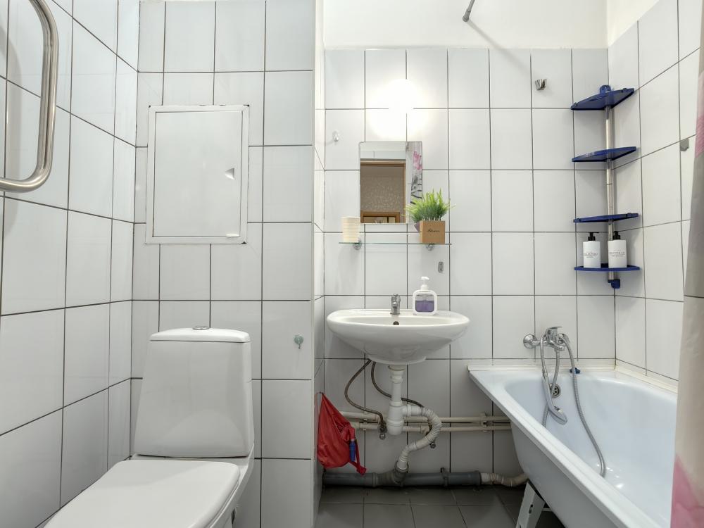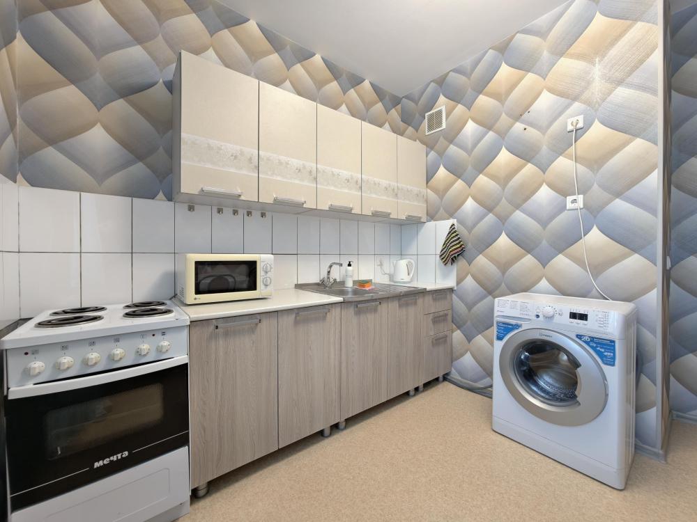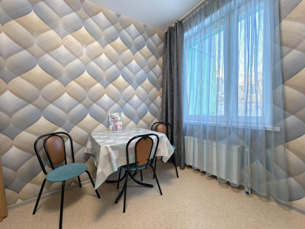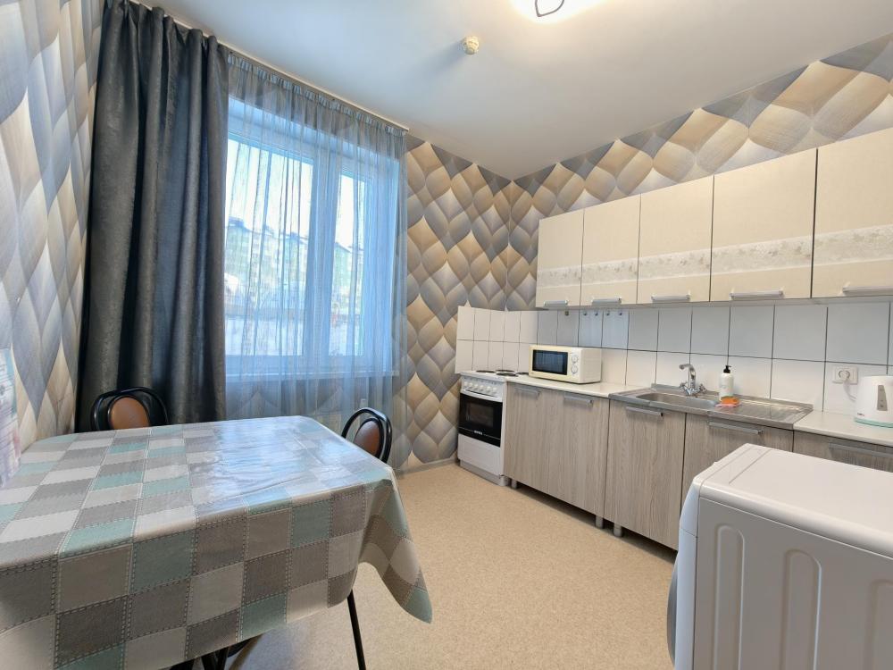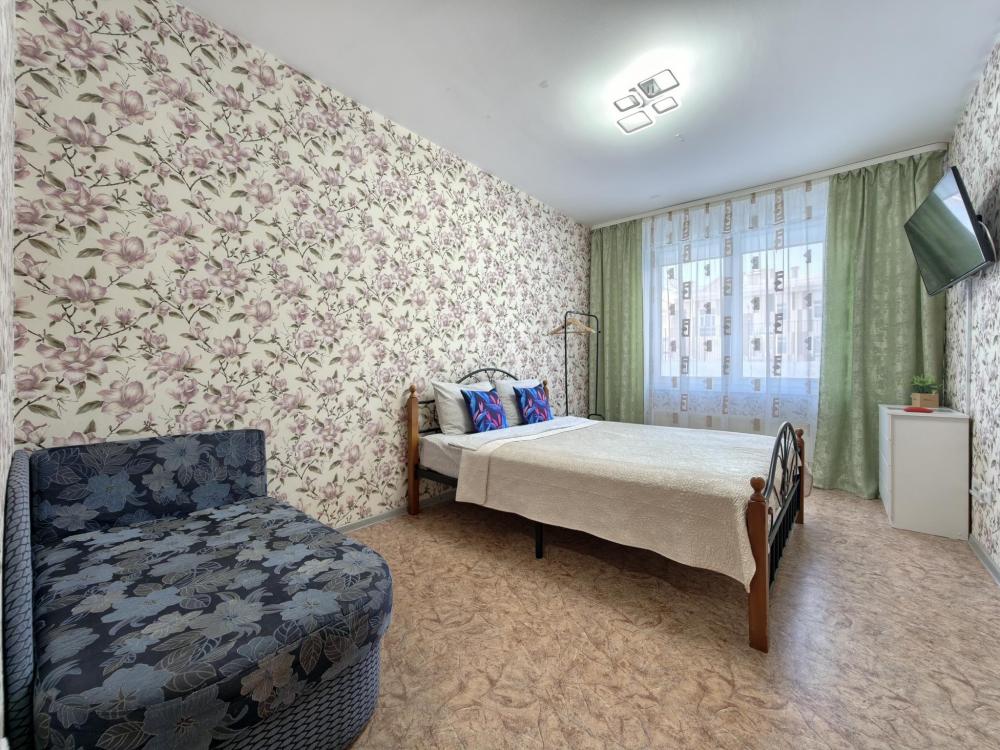 Просторное и светлое помещение оформлено в современном стиле, где каждая деталь подобрана для вашего удобства. В квартире создана приятная атмосфера уюта и спокойствия: мягкий свет, качественная мебель и продуманная планировка позволят почувствовать себя как дома. Главное преимущество квартиры — удобное спальное место. В спальне установлена большая двуспальная кровать с ортопедическим матрасом высокой комфортности, свежим постельным бельем и мягкими подушками. Кухня оборудована всем необходимым: холодильником, плитой, микроволновой печью, чайником, набором посуды и столовыми приборами. В ванной комнате — современная сантехника, стиральная машина, фен и чистые полотенца.