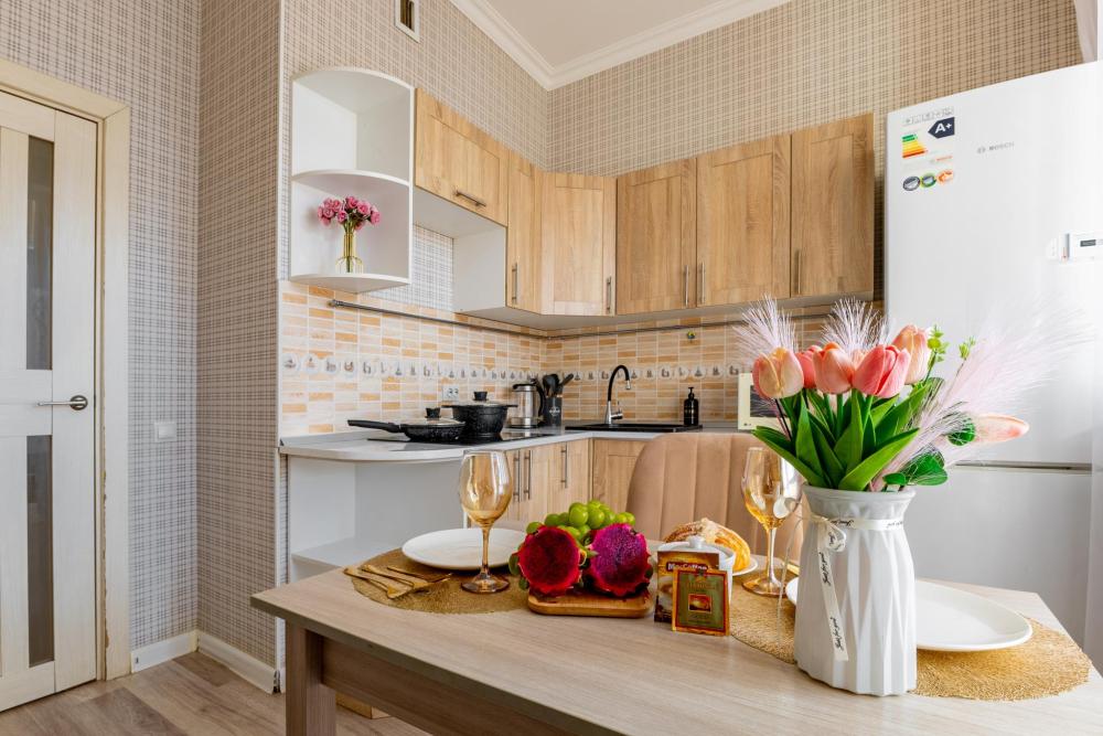 Уютные однокомнатные апартаменты с балконом. К услугам гостей бесплатный Wi-Fi на всей территории. В апартаментах есть спальня, обеденная зона, кухня с холодильником, телевизор с плоским экраном. Гостям этих апартаментов предоставляются полотенца и постельное белье, одноразовые тапочки и туалетно-косметические принадлежности (шампунь, гель для душа, ватные диски, ушные палочки и т.д.).