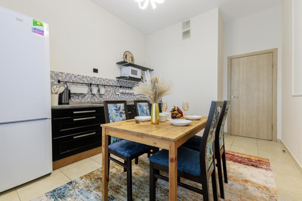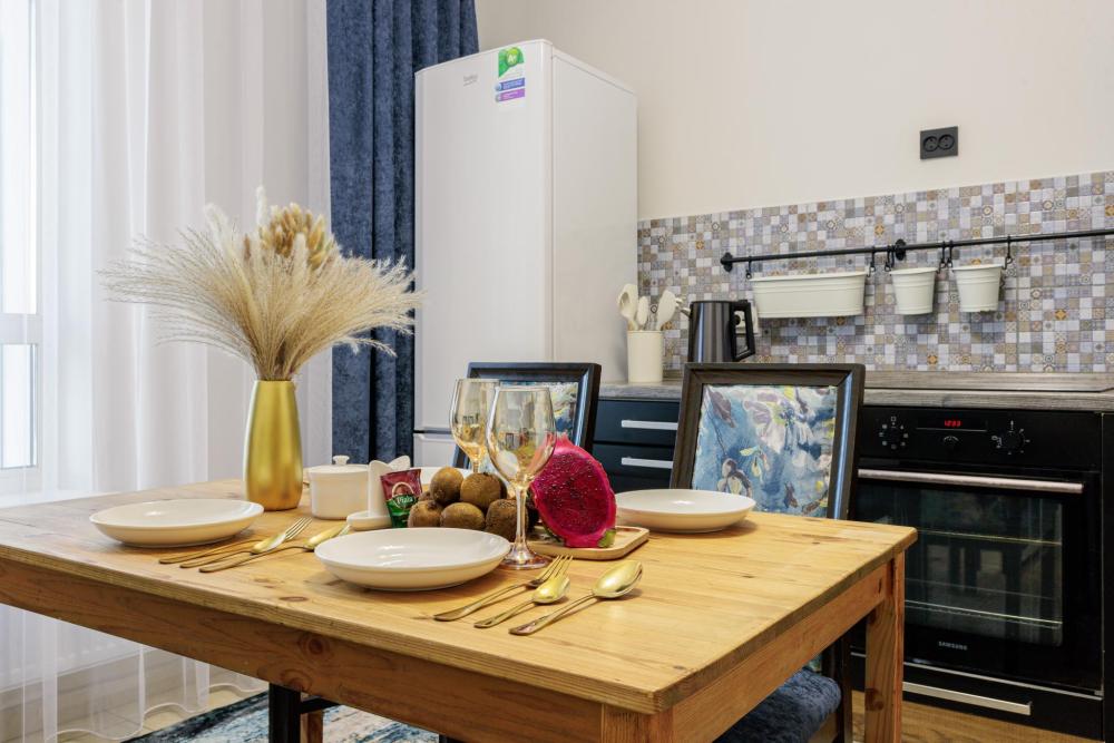 В апартаментах есть всё необходимое для комфортного проживания: высокоскоростной интернет (Wi-Fi), смарт-ТВ, одноразовые средства личной гигиены, чистое белое постельное бельё, мягкие полотенца и тапочки.