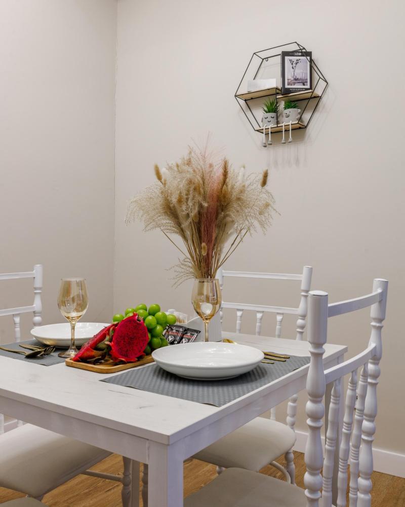 Уютная однокомнатная квартира в самом сердце Астаны расположена неподалёку от Ботанического сада и комплекса ЭКСПО, что делает её идеальным выбором как для отдыха, так и для деловых поездок. Вход в апартаменты осуществляется по индивидуальному коду, что обеспечивает удобство и дополнительную безопасность. Гостям предоставляются одноразовые тапочки и принадлежности (шампунь, гель для душа, ватные диски, ушные палочки и др.), фен, Smart TV и высокоскоростной Wi-Fi. Кухонная зона оборудована всей необходимой бытовой техникой для приготовления: посудой, микроволновой печью, плитой, чайником и холодильником. В шаговой доступности находятся ведущие спортивные объекты города: Ледовый дворец «Алау», стадион «Астана Арена» и велотрек «Сарыарка». Рядом расположены живописный Ботанический сад, множество магазинов, кафе и другие инфраструктурные объекты. Также неподалёку — торгово-развлекательный центр «Mega Silkway», Назарбаев Университет, Экспо-2017 и монумент «Байтерек» — главные достопримечательности столицы. Международный аэропорт Нурсултан Назарбаев находится всего в 11 км, что делает поездку до апартаментов максимально комфортной.