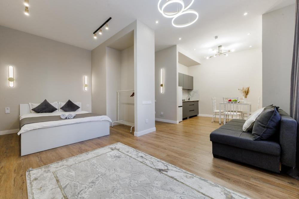 Уютные однокомнатные апартаменты. Из окон открывается вид на город. К услугам гостей бесплатный Wi-Fi на всей территории. В апартаментах есть спальня, обеденная зона, с холодильником, телевизор с плоским экраном. Гостям этих апартаментов предоставляются полотенца и постельное белье, а также одноразовые тапочки и туалетно-косметические принадлежности (шампунь, гель для душа, ватные диски, ушные палочки и т.д.).