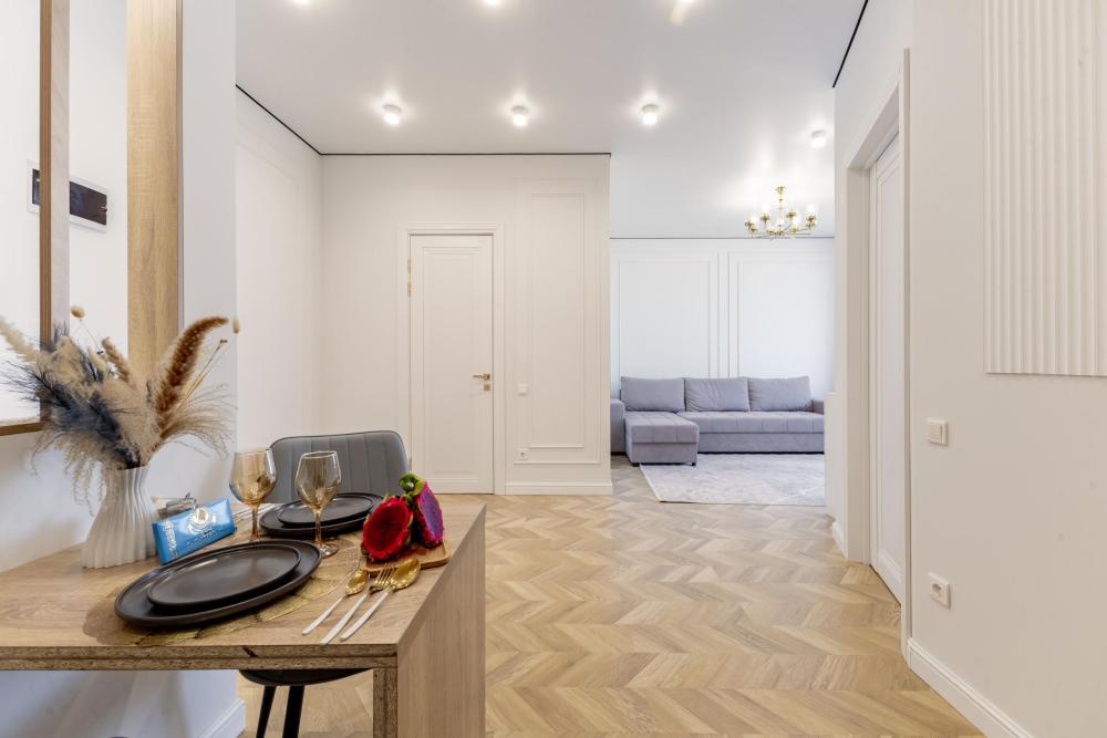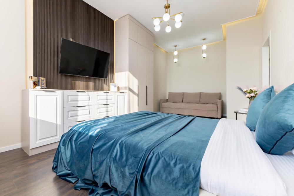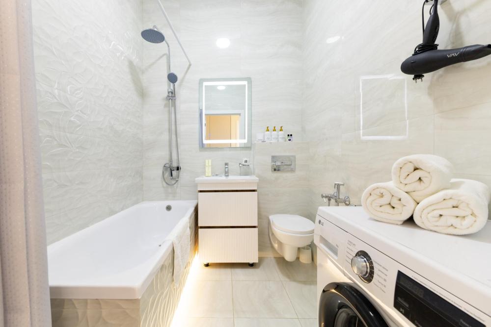 Уютная двухкомнатная квартира в самом сердце Астаны расположена неподалёку от Ботанического сада и комплекса ЭКСПО, что делает её идеальным выбором как для отдыха, так и для деловых поездок. Вход в апартаменты осуществляется по индивидуальному коду, что обеспечивает удобство и дополнительную безопасность. Гостям предоставляются одноразовые тапочки и принадлежности (шампунь, гель для душа, ватные диски, ушные палочки и др.), фен, Smart TV, кондиционер и высокоскоростной Wi-Fi. Кухонная зона оборудована всей необходимой бытовой техникой для приготовления блюд: посудой, микроволновой печью, плитой, чайником и холодильником. В шаговой доступности находятся ведущие спортивные объекты города: Ледовый дворец «Алау», стадион «Астана Арена» и велотрек «Сарыарка». Рядом расположены живописный Ботанический сад, множество магазинов, кафе и другие инфраструктурные объекты. Также неподалёку — торгово-развлекательный центр «Mega Silkway», Назарбаев Университет, Экспо-2017 и монумент «Байтерек» — главные достопримечательности столицы. Международный аэропорт Нурсултан Назарбаев находится всего в 11 км, что делает поездку до апартаментов максимально комфортной.
