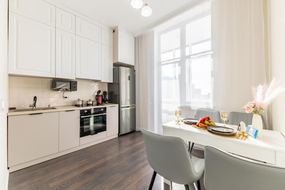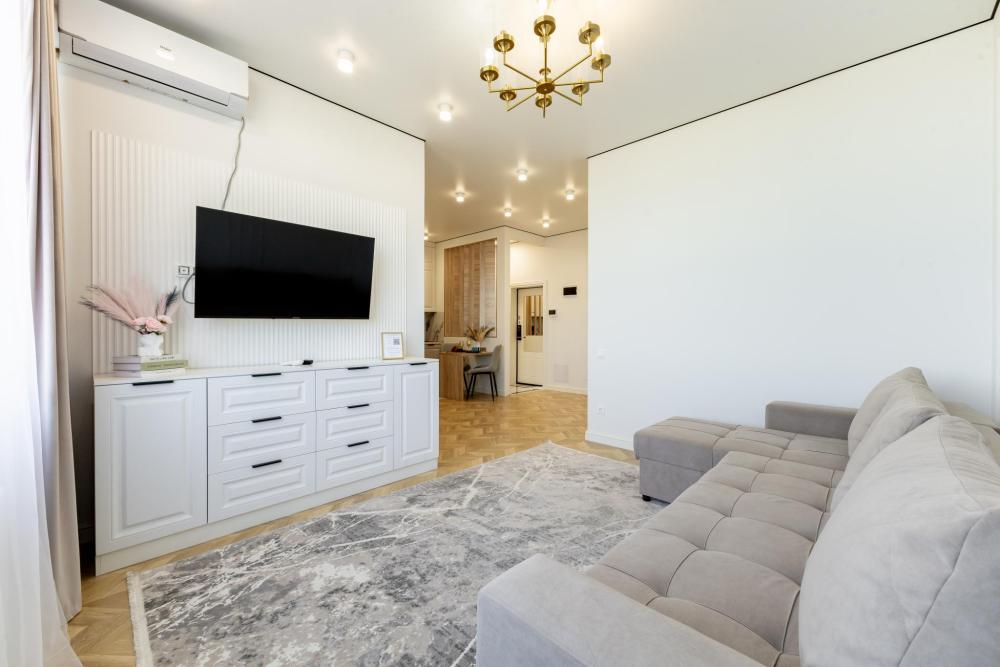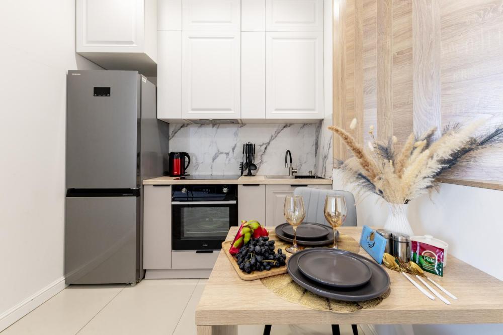 Уютная квартира на левом берегу. Из окон открывается вид на город. В апартаментах есть спальня, обеденная зона, гостиная и кухня с холодильником, кондиционер, телевизор с плоским экраном, бесплатный Wi-Fi.