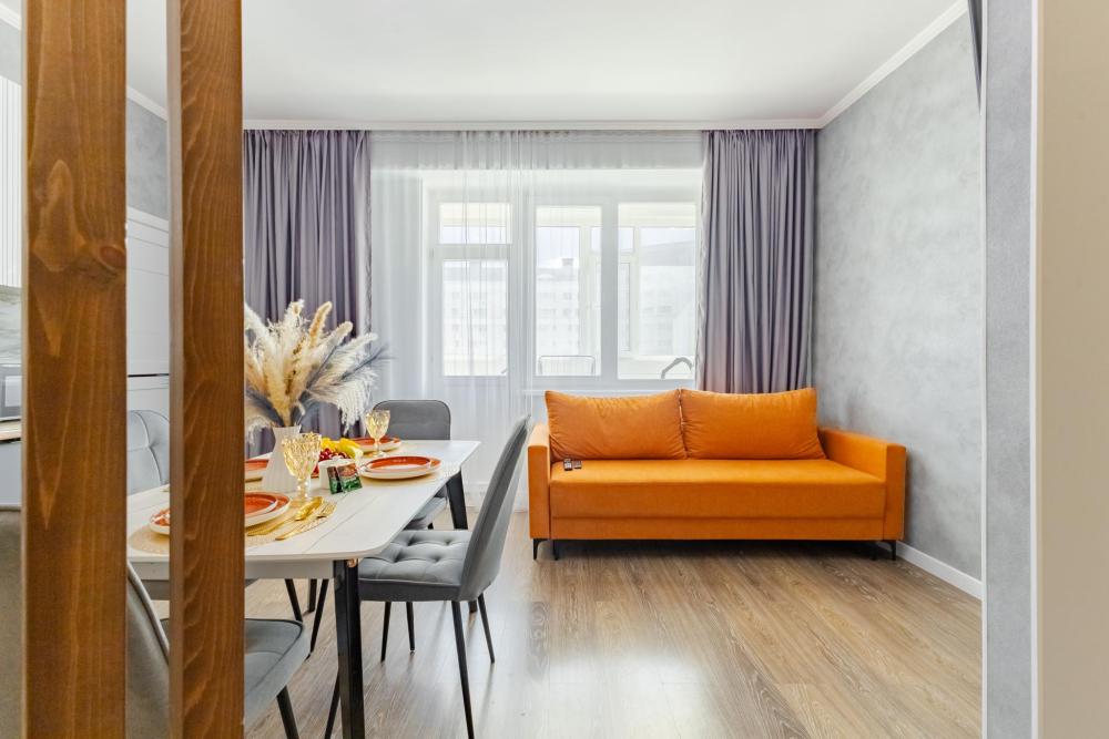 Уютные апартаменты в районе с развитой инфраструктурой. В квартире имеется все для комфортного проживания. Две широкие кровати, комфортный диван, телевизор в каждой комнате. Свежее постельное бельё и полотенца. Кухонная зона со всей необходимой бытовой техникой: посудой, микроволновая печь, плита, чайник, холодильник. В шаговой доступности расположены монумент Байтерек, административные здания: Дом министерств, Ак-орда, ТРЦ "Керуен", Бизнес центр "Москва". Рядом расположены различные кофейни, аптеки, супермаркеты, кафе и рестораны, салоны красоты и т.д.