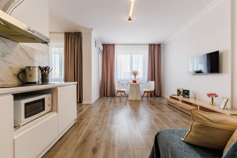 Уютные однокомнатные апартаменты с балконом. Из окон открывается вид на город. К услугам гостей бесплатный Wi-Fi на всей территории. В апартаментах есть спальня, обеденная зона, кухня с холодильником, телевизор с плоским экраном. Гостям этих апартаментов предоставляются полотенца и постельное белье, одноразовые тапочки и туалетно-косметические принадлежности (шампунь, гель для душа, ватные диски, ушные палочки и т.д.).