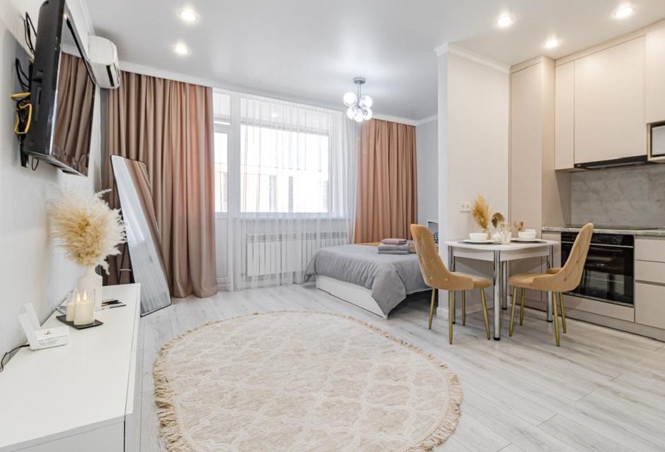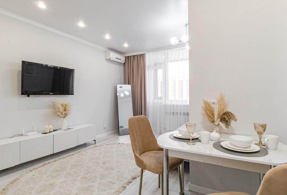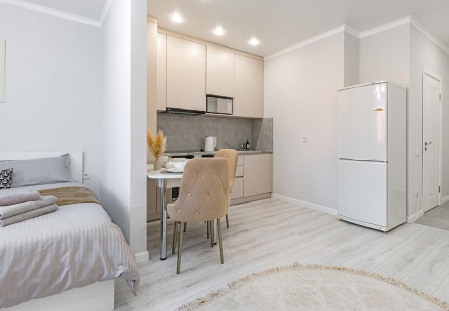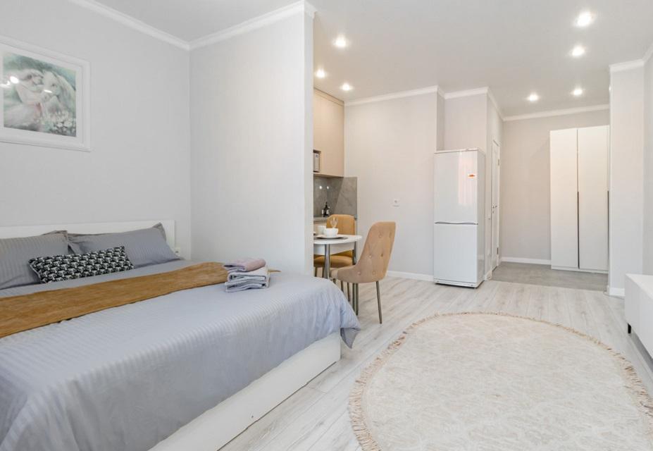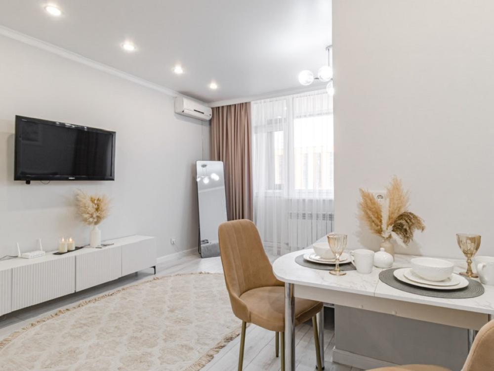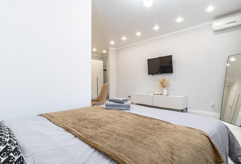 Светлая и уютная однокомнатная студия рядом с Хан Шатыром — идеальный вариант для комфортного проживания в центре левого берега. В квартире есть балкон, ванная комната и кондиционер. Пространство продумано до мелочей: современный интерьер, удобная мебель и спокойная атмосфера создают ощущение домашнего уюта.