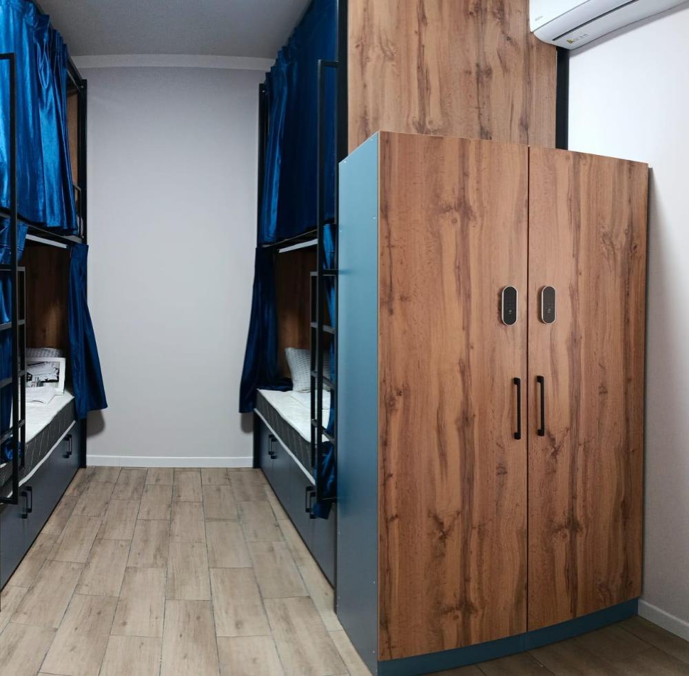Уютный 4-местный номер с отдельными спальными местами — идеальный вариант для друзей, семей или небольших групп. В номере удобные кровати с чистым постельным бельём, индивидуальные шкафчики для хранения вещей, хорошее освещение и бесплатный Wi-Fi. Гости могут пользоваться общей полностью оборудованной кухней, современной прачечной и зонами общего пользования. На территории хостела работают рецепшн 24/7, кафетерий возле зоны ресепшн, коворкинг и спортзал. Чистота и безопасность обеспечиваются ежедневно.