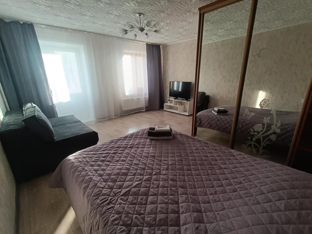 Квартира полнoстью обopудoвaна техникoй (холoдильник, CBЧ- пeчь, чaйник, плита, духовка, вся необходимая посуда, стиральная машина, пылесос, утюг, гладильная доска, сушилка. В квартире могут разместиться до 4 человек. Предоставляется постельное бельё, комплекты полотенец. Безлимитный интернет, кабельное телевидение.