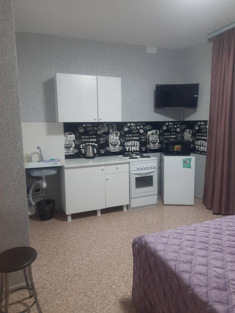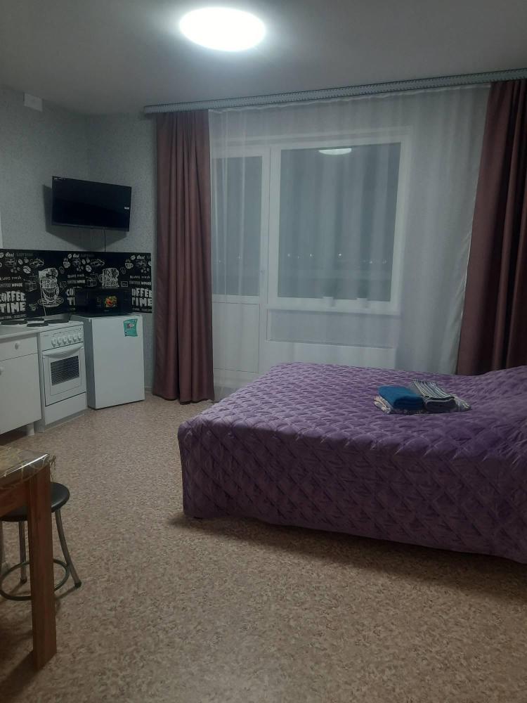 Уютная квартира студия посуточно в центре г. Нягань, новые аппартаменты, матрас, широкая двухспальная кровать, бытовая техника, средства гигиены, постельное белье, кухонная посуда, ТV-Smart/