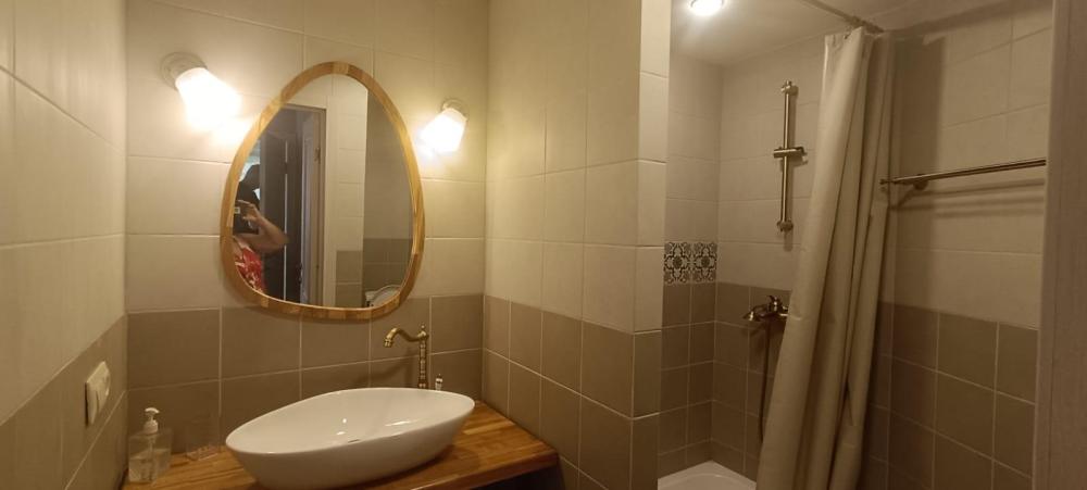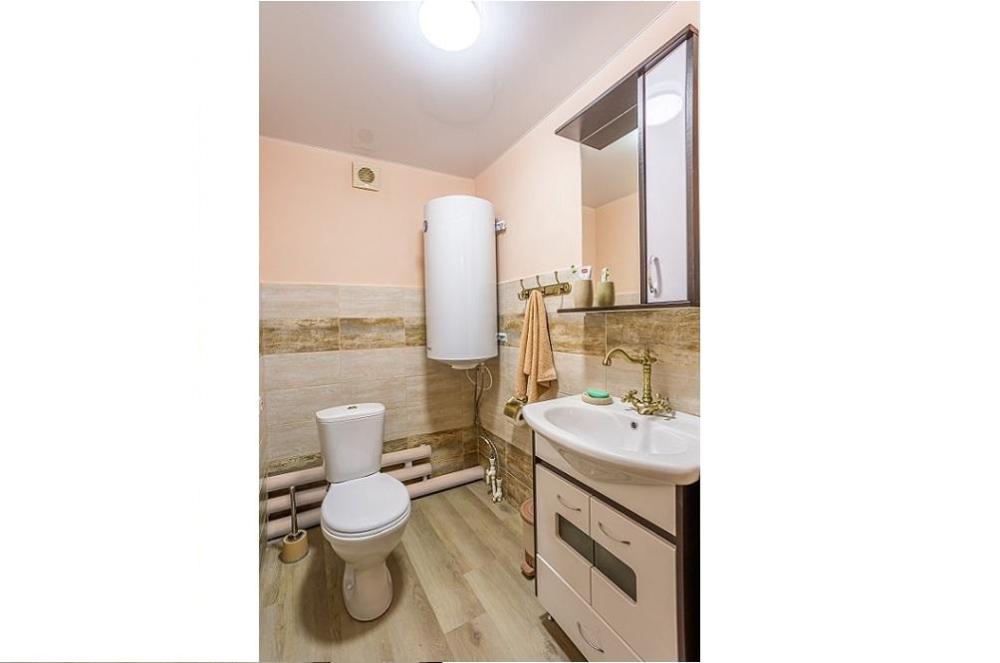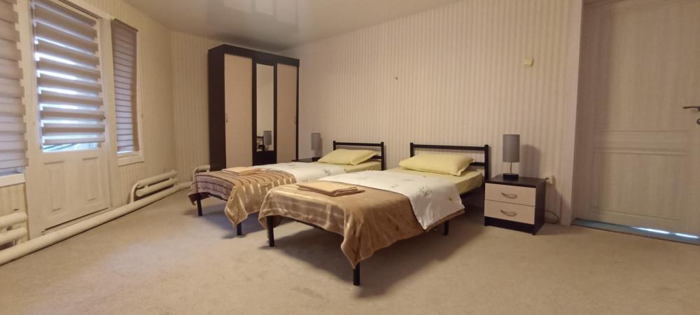 Уютная очень светлая комната на 2 этаже с тремя окнами, из которых открывается великолепный вид на озеро, лес и трамплин. В комнате две односпальных кровати, которые по желанию клиентов трансформируются в двуспальную. Также в комнате есть кресло-кровать, небольшой письменный стол, два кресла и журнальный столик, телевизор и кондиционер. В комнате есть санузел авторского дизайна с душем. Гости, проживающие в этой комнате, могут по желанию пользоваться любой из гостиных, в каждой из которых есть холодильник, две настольных индукционных плиты, СВЧ-печь, электрическая духовка, вся необходимая столовая и кухонная посуда.
