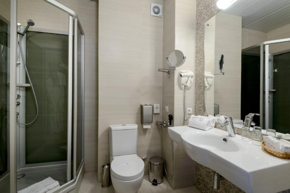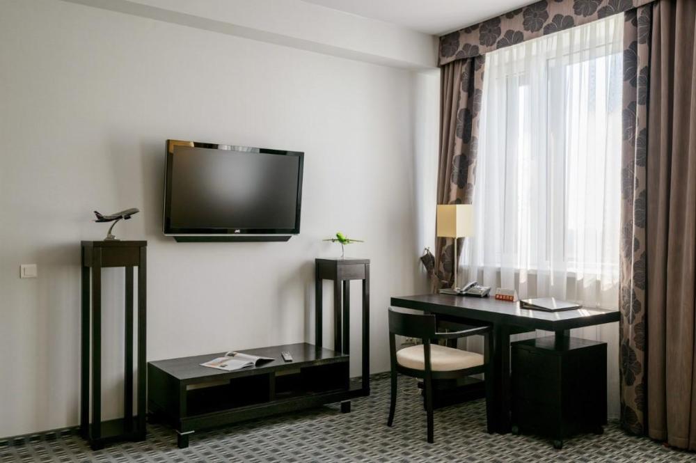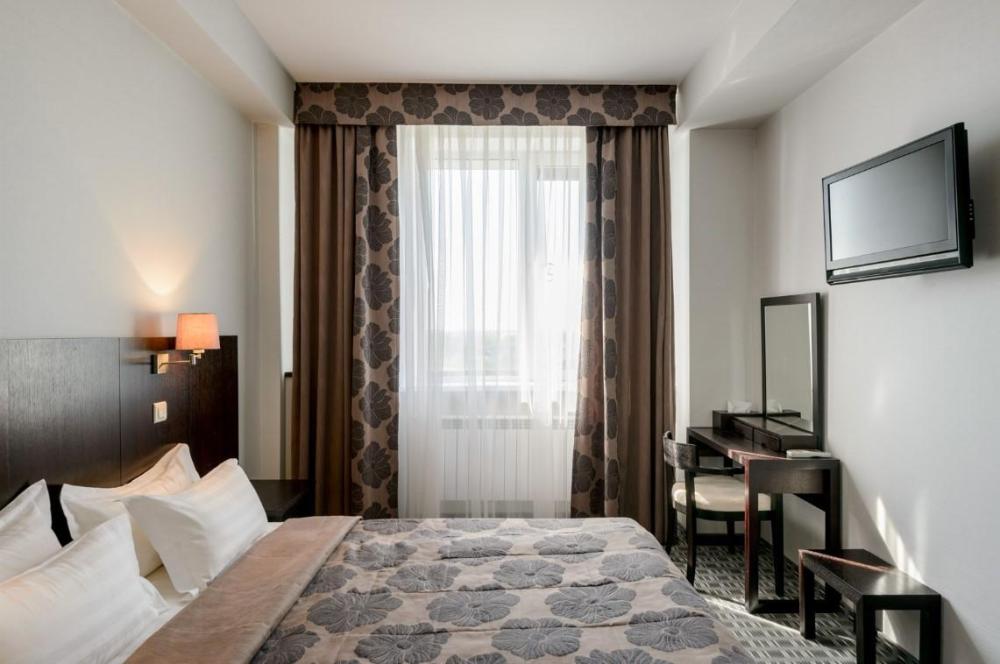 Однокомнатный номер: двуспальная кровать (180*200), спутниковое TV, кондиционер, мини-бар, телефон, выход в Интернет (Wi-Fi), фен, предметы гостеприимства отеля.