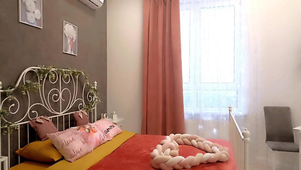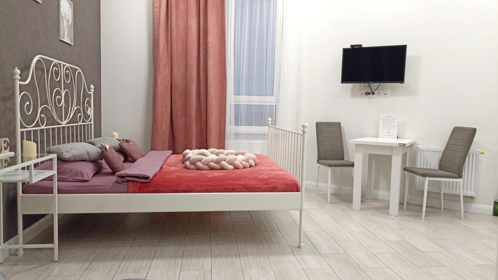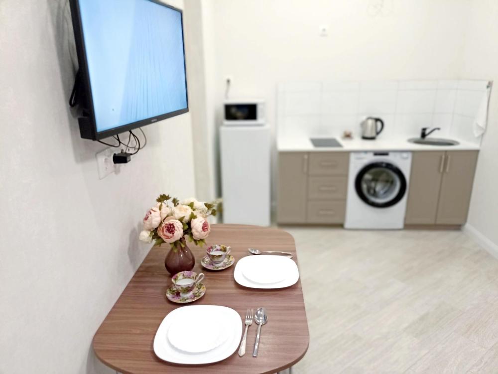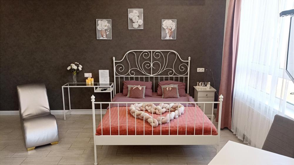 В апартаментах возможно размещение 2 человек на двуспальной кровати. На кухне необходимая посуда и техника: электрическая плита, чайник, микроволновая печь, холодильник. К услугам гостей: телевизор, Wi-Fi, стиральная машина, кондиционер, фен, утюг, туалетные принадлежности, постельное бельё, полотенца.
