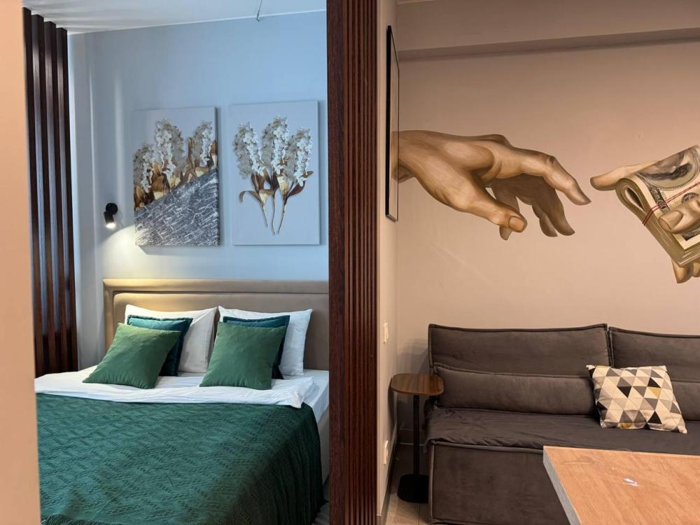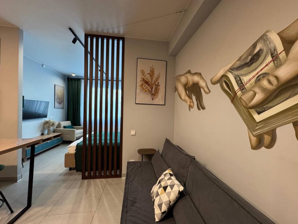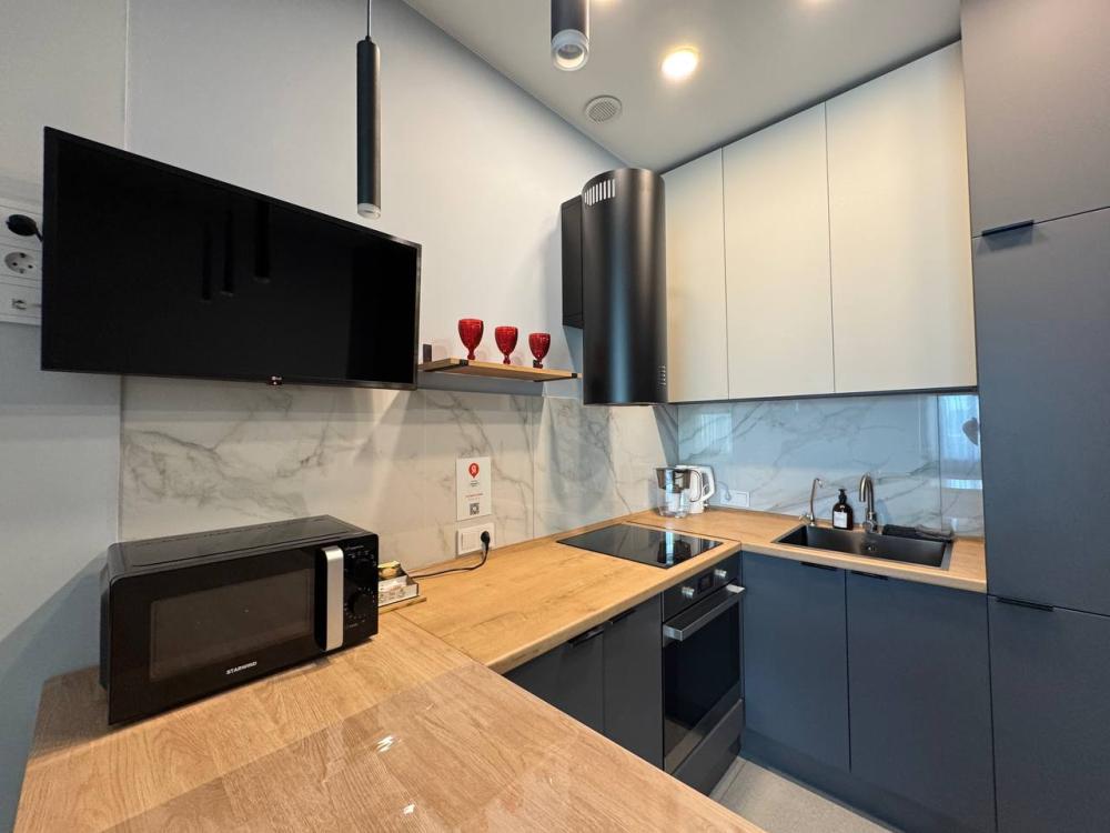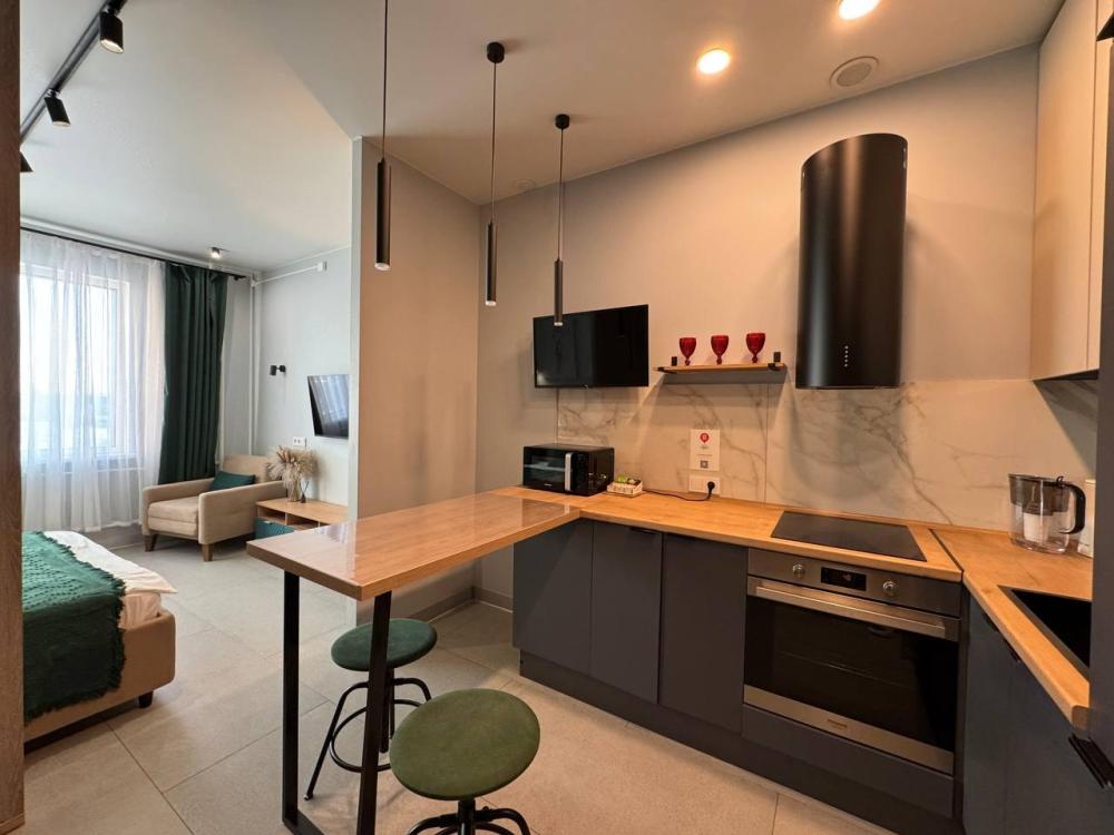 Уютные апартаменты с двуспальной кроватью 160 на 200, креслом-кроватью и диваном. Апартаменты для семьи или компании, которым важны комфортные условия для сна и быта. Апартаменты оснащены всем необходимым для комфортного проживания: два телевизора, фильтр для питьевой воды, бесплатный быстрый wi-fi, два отдельных рабочих места, кухня (плита, холодильник, стиральная машина, микроволновая печь, чайник, духовой шкаф, посуда, фильтр для питьевой воды, столовые приборы), два раздельных санузла, душевая кабина, необходимые бытовые приборы (фен, гладильная доска и утюг).