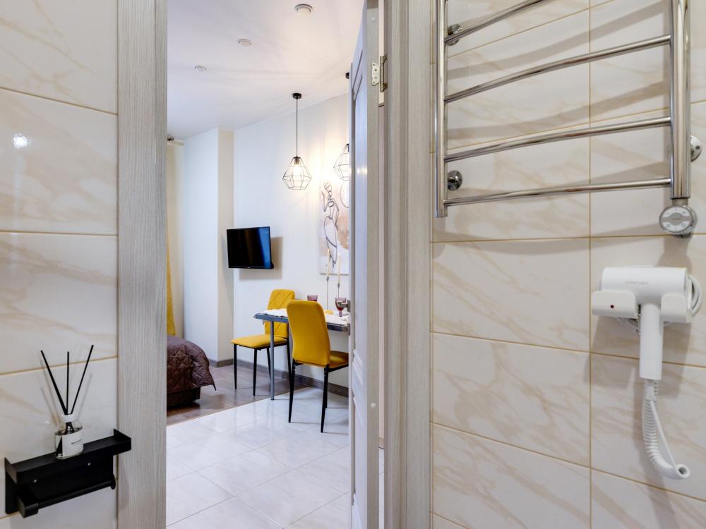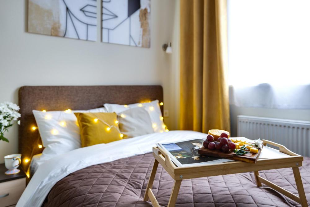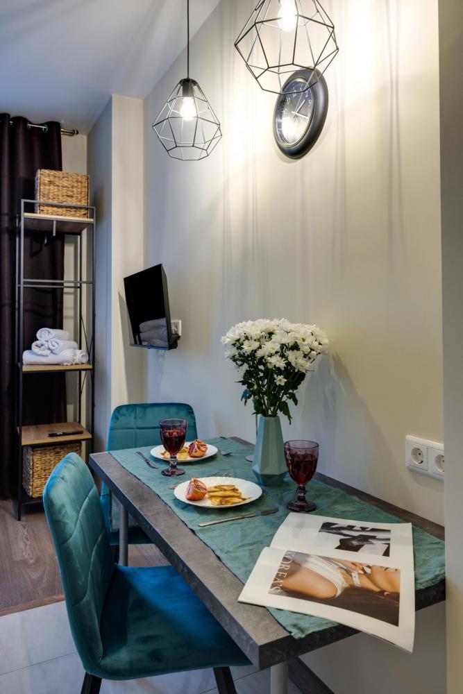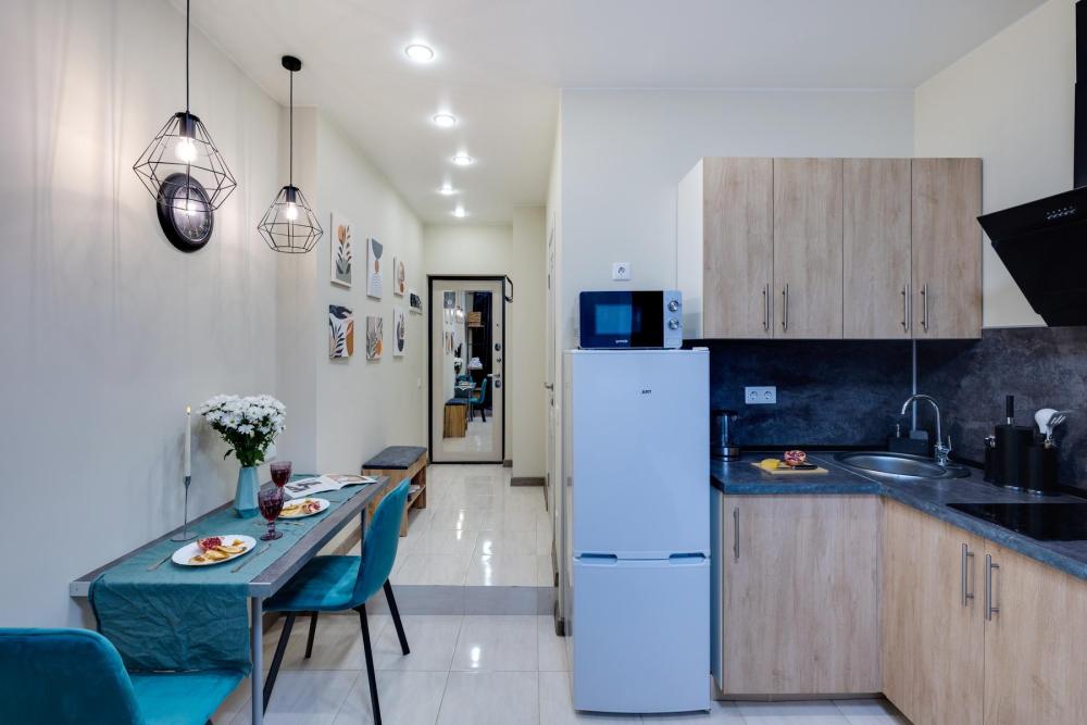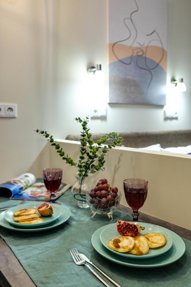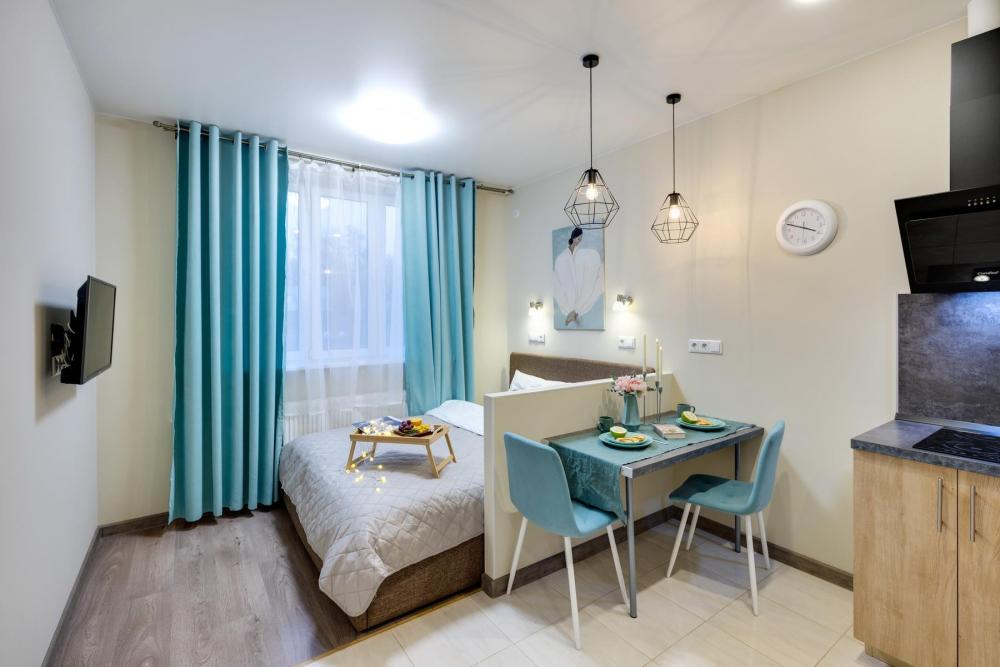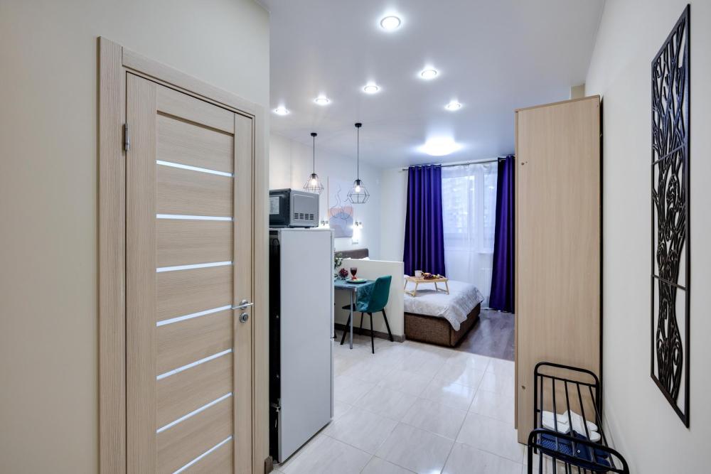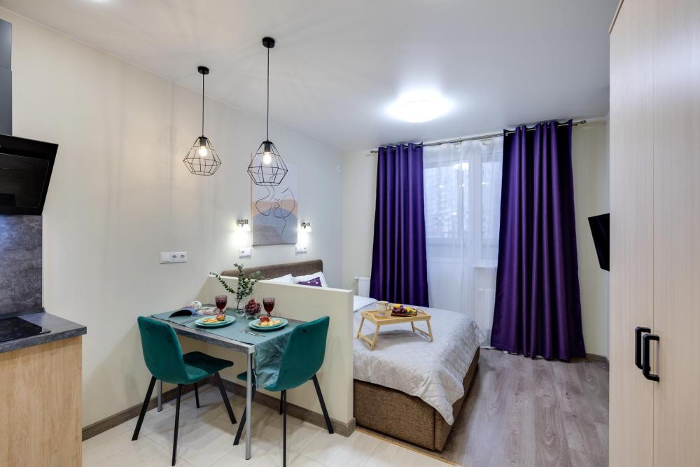Современные апартаменты-студия с балконом для уютных вечеров, выполнена в стильных и теплых тонах. Идеальный вариант для пары или самостоятельного проживания, где каждая деталь создана для комфорта и уюта. Для комфортного проживания гостей апартаменты оборудованы всем необходимым: уютная двуспальная кровать 160×200 см с ортопедическим матрасом и качественным постельным бельем, полноценная кухня с индукционной варочной панелью, капсульной кофе-машиной, стиральная машина, фен, утюг, Smart TV и бесплатный Wi-Fi. Продуманные детали: шторы blackout для отличного сна, фильтр для воды и вся необходимая посуда для приготовления любимых блюд. Забота о гостях: приветственный набор (чай, кофе, сахар), комплекты полотенец и средства гигиены (шампунь, гель, мыло), а также тапочки.