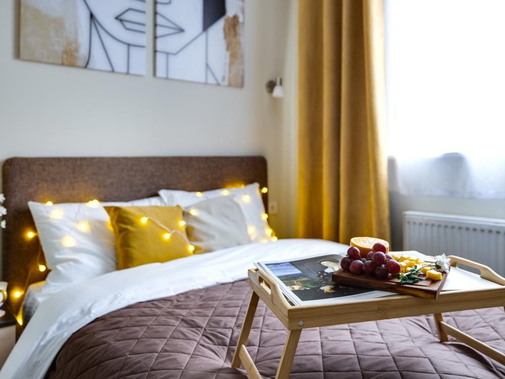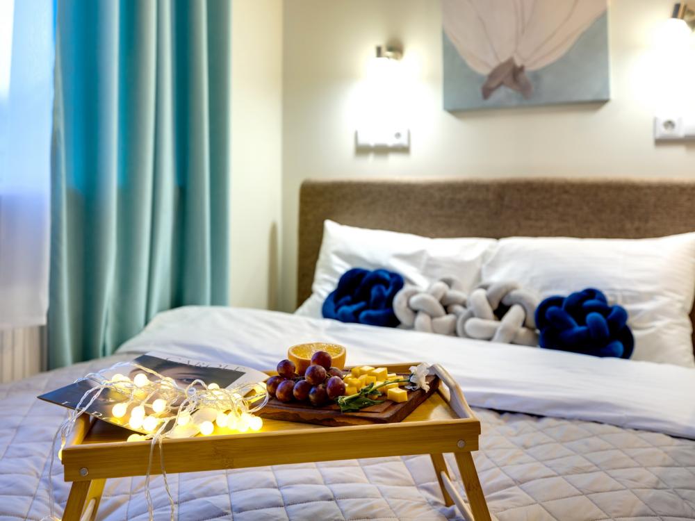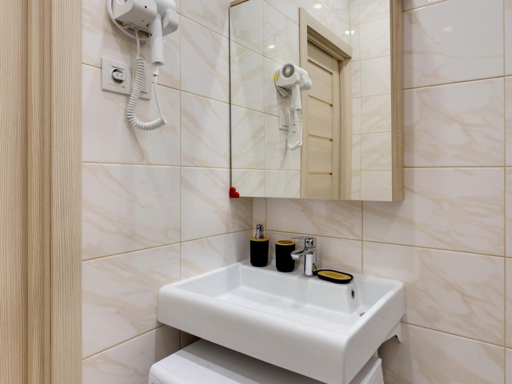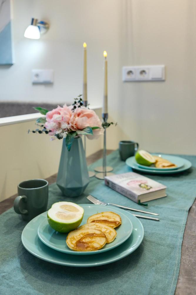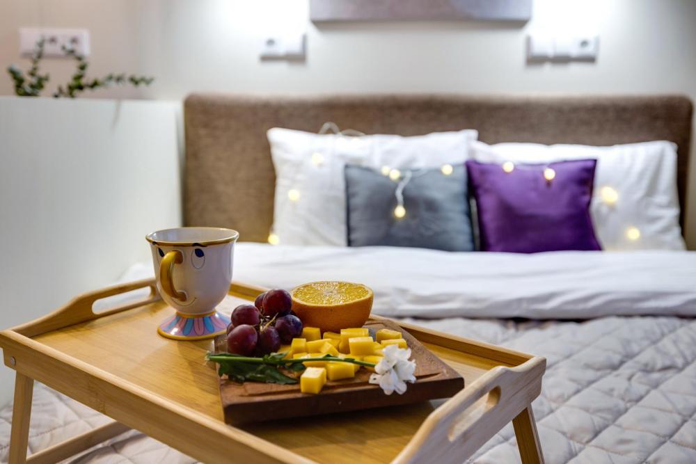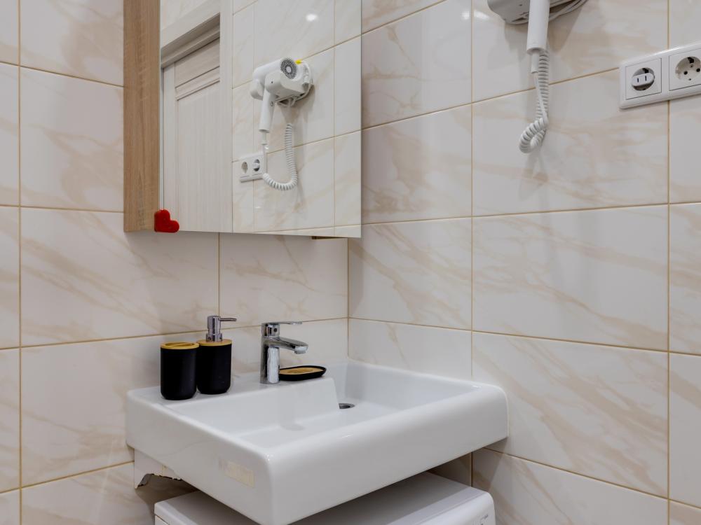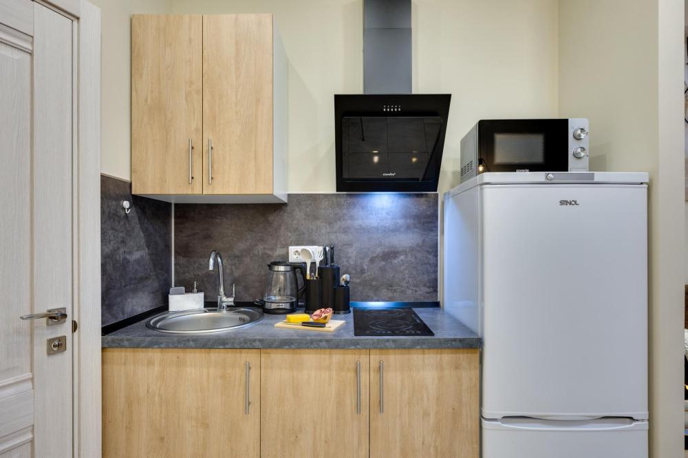 Современные апартаменты-студия с балконом для уютных вечеров, выполнена в стильных и теплых тонах. Идеальный вариант для пары или самостоятельного проживания, где каждая деталь создана для комфорта и уюта. Для комфортного проживания гостей апартаменты оборудованы всем необходимым: уютная двуспальная кровать 160×200 см с ортопедическим матрасом и качественным постельным бельем, полноценная кухня с индукционной варочной панелью, капсульной кофе-машиной, стиральная машина, фен, утюг, Smart TV и бесплатный Wi-Fi. Продуманные детали: шторы blackout для отличного сна, фильтр для воды и вся необходимая посуда для приготовления любимых блюд. Забота о гостях: приветственный набор (чай, кофе, сахар), комплекты полотенец и средства гигиены (шампунь, гель, мыло), а также тапочки.