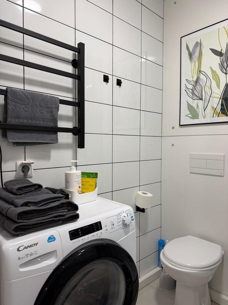 Санузел — чистота и комфорт: Здесь всегда свежо и безупречно чисто. Просторная душевая кабина с хорошим напором воды поможет взбодриться с утра или смыть усталость вечером. А стиральная машина (с функцией сушилка) позаботится о ваших вещах.