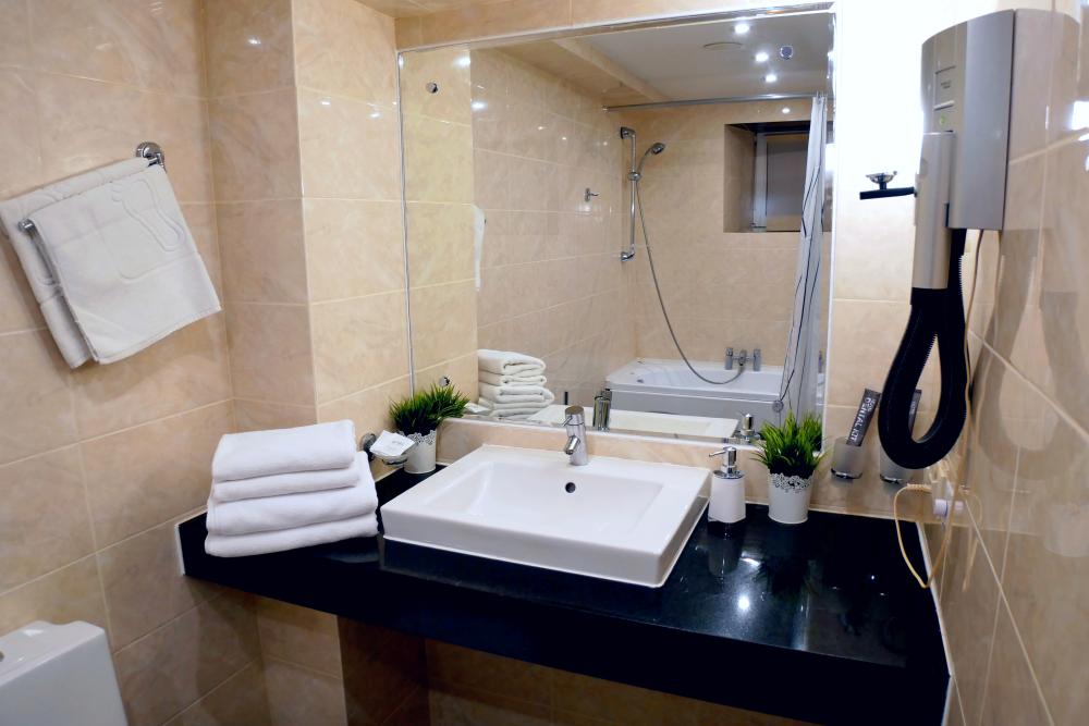 Номер Люкс в гостинице Ковчег - это идеальное сочетание комфорта, удобства и отдыха г. Одинцово. Описание номера: Площадь: просторный номер площадью 27 кв. м. Кровати: Большая двуспальная кровать, обеспечивающая вам расслабление и спокойный сон. Мебель и техника: Вас ожидает удобная мебель и современная техника. Журнальный столик, кресла для отдыха, шкаф для одежды и туалетный столик с зеркалом обеспечат вам комфортное пребывание. Кондиционер, телевизор, телефон, мини-холодильник, электрочайник и бесплатный Wi-Fi - все, чтобы вы чувствовали себя как дома. Ванная комната: Просторная ванная комната с душем, феном, халатами и тапочками. Здесь вы найдете все необходимое для своего удобства. Дополнительное спальное место: По вашему желанию, мы можем установить дополнительное спальное место за дополнительную плату. Завтрак: Завтрак в стоимость номера не входит. Дополнительные платные удобства: Вас ждет сауна со своим комплексом услуг, где вы сможете расслабиться после насыщенного дня. Мини-бар предложит вам прохладные напитки, а услуга доставки еды сделает ваше пребывание еще более комфортным. Услуги отеля: Наш отель работает круглосуточно, чтобы удовлетворить все ваши потребности. Для гостей доступна бесплатная и платная парковка. Выберите номер Люкс в гостинице Ковчег и наслаждайтесь отдыхом и уютом в г. Одинцово.