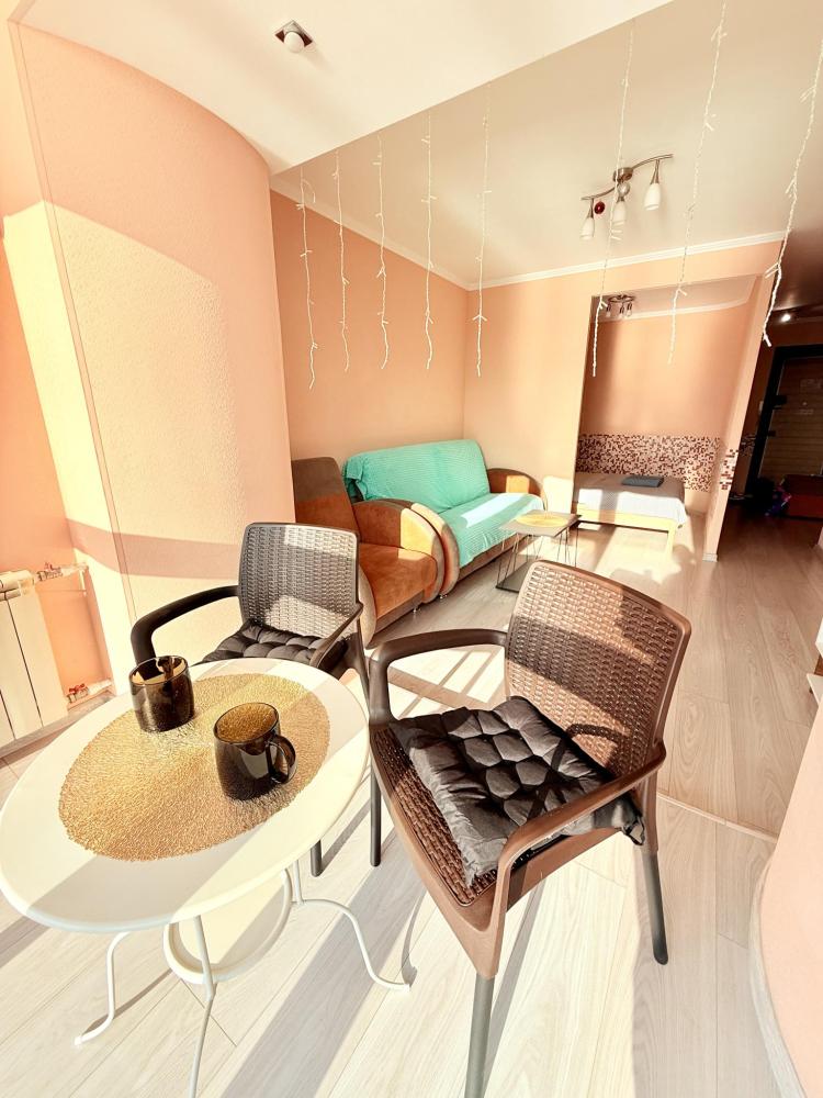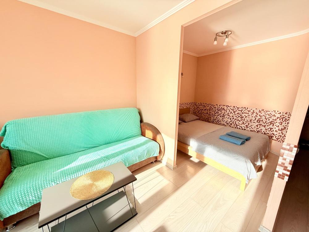 Апартаменты для 4 гостей. Спальные места: диван и двуспальная кровать. В квартире есть всё необходимое для комфортного проживания: санузел , душевая кабина, кухня оборудованная необходимой посудой и техникой, Smart TV, бесплатный WI-FI.