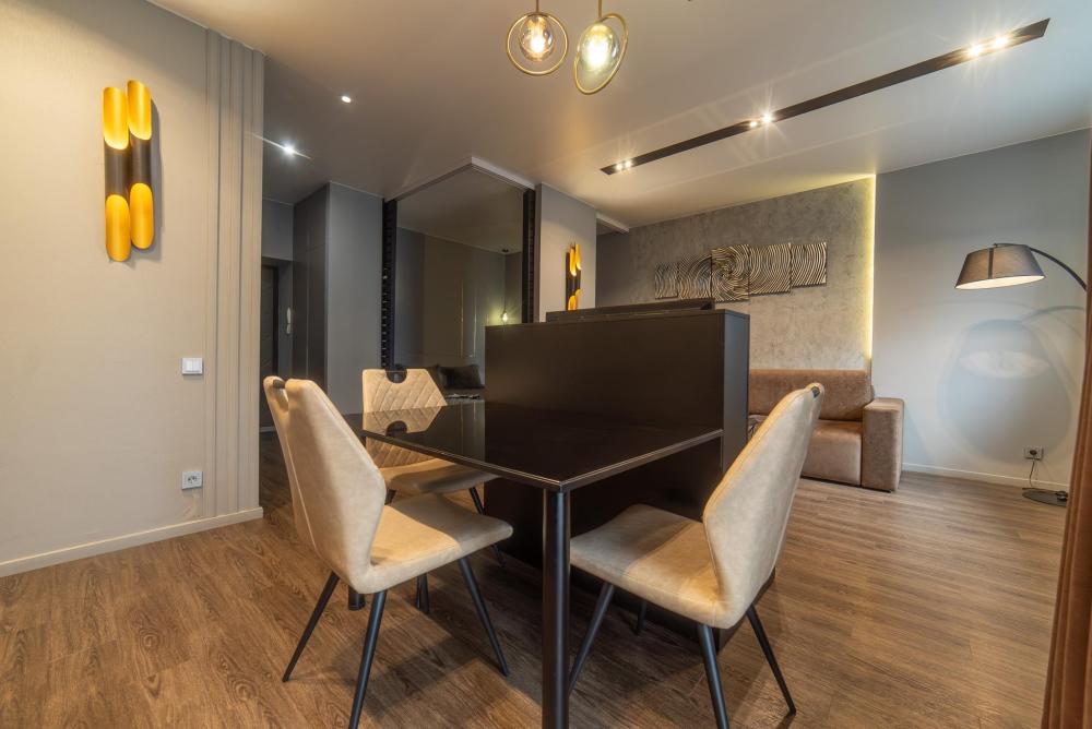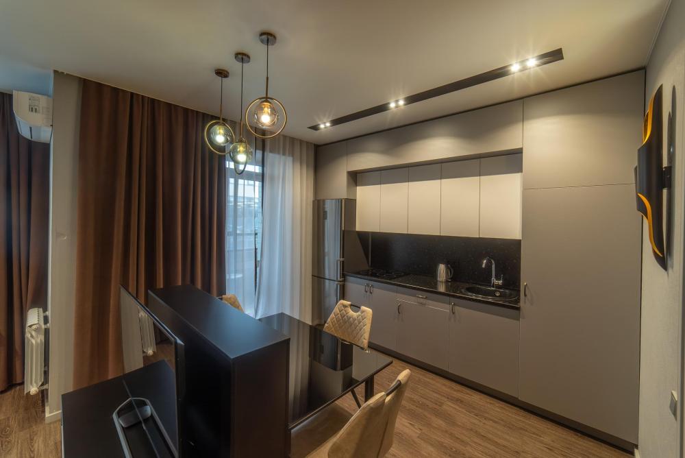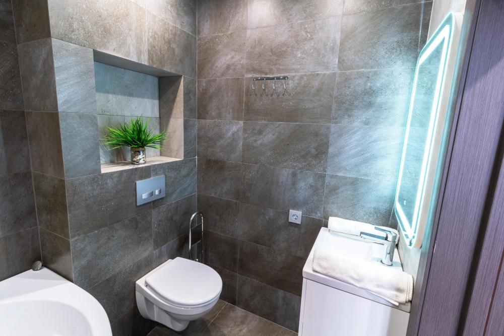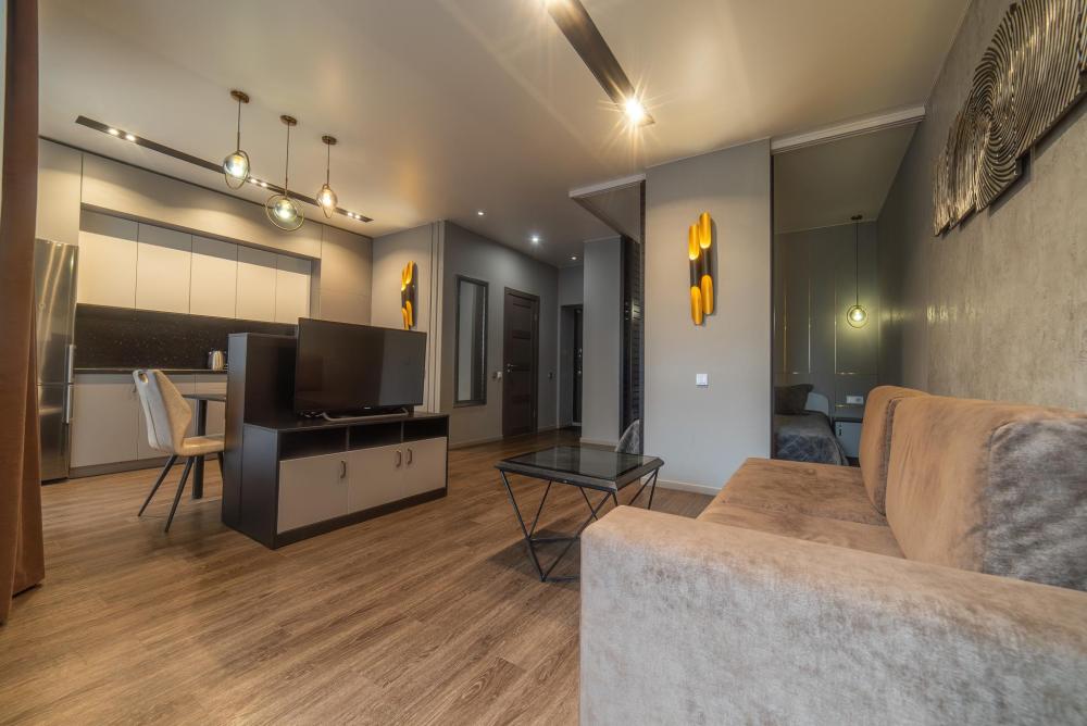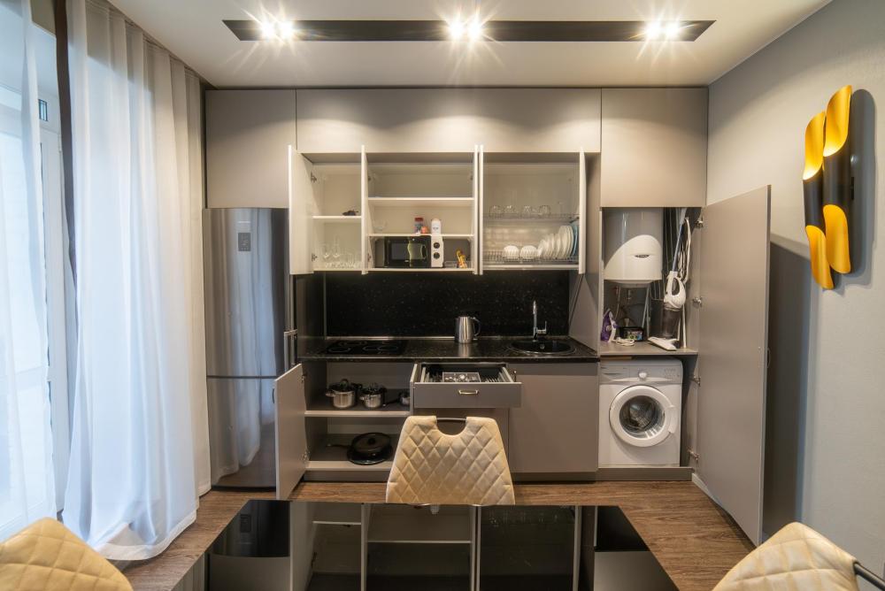В квартире есть вся техника для комфортного проживания: Смарт-ТВ с 60 кабельными каналами, кондиционер, стиральная машина, холодильник, водонагреватель, теплые полы. Также мелкая бытовая техника: микроволновка, электрочайник, утюг, фен, двухместная гидромассажная ванна джакузи.