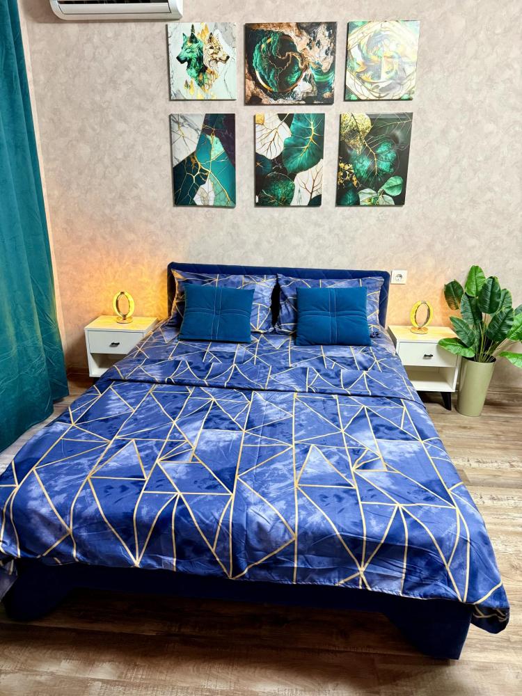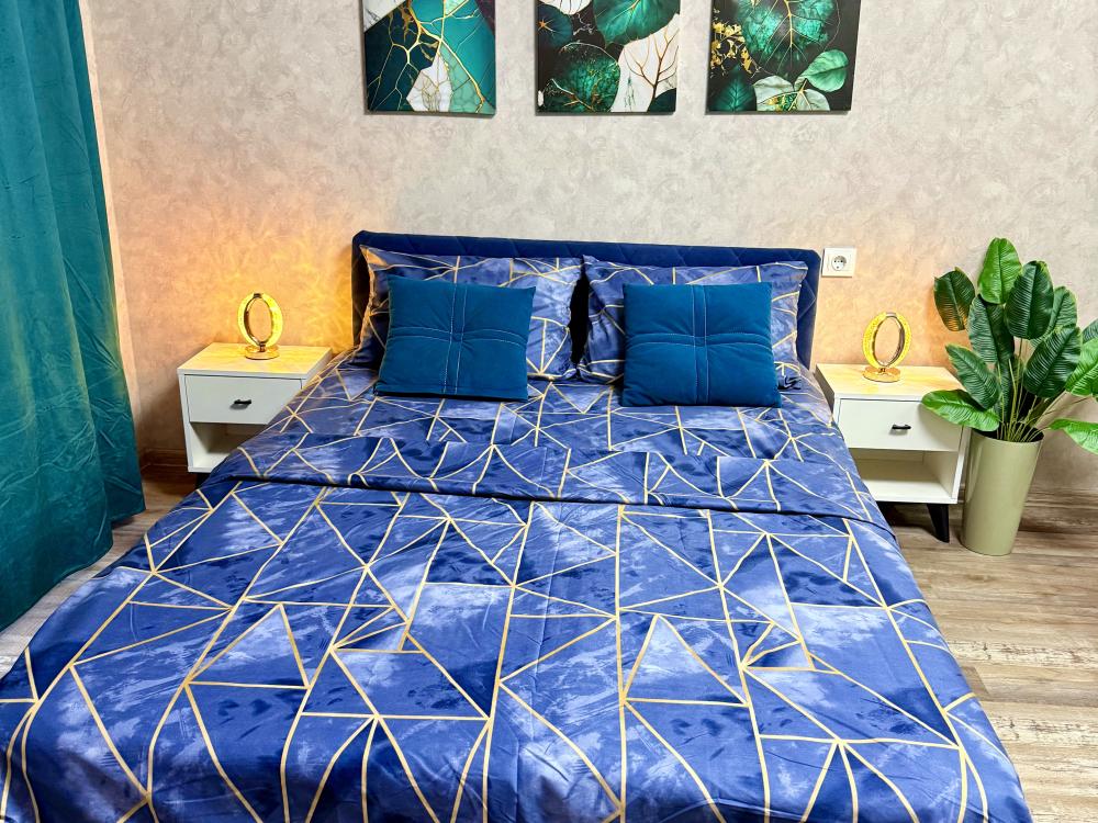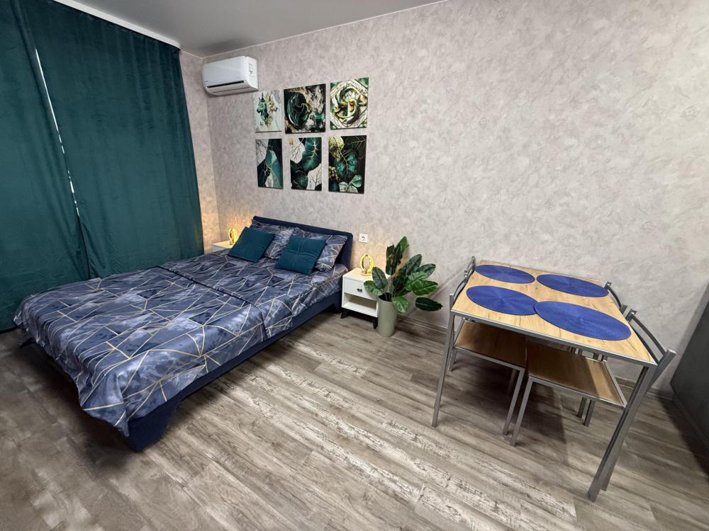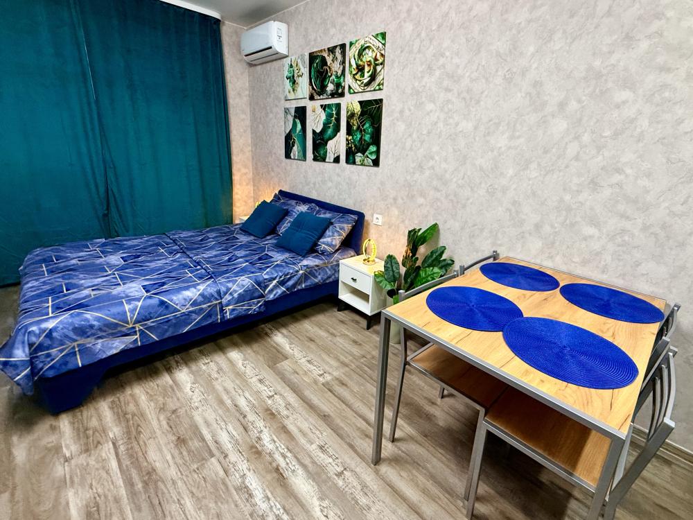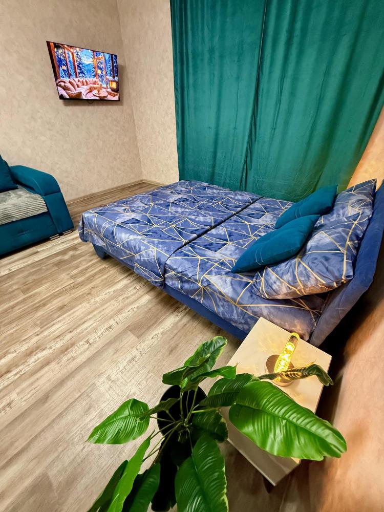 Апартаменты для 4 гостей. Спальные места: диван и двуспальная кровать. В квартире есть всё необходимое для комфортного проживания: санузел , душевая кабина, кухня оборудованная необходимой посудой и техникой, Smart TV, бесплатный WI-FI.