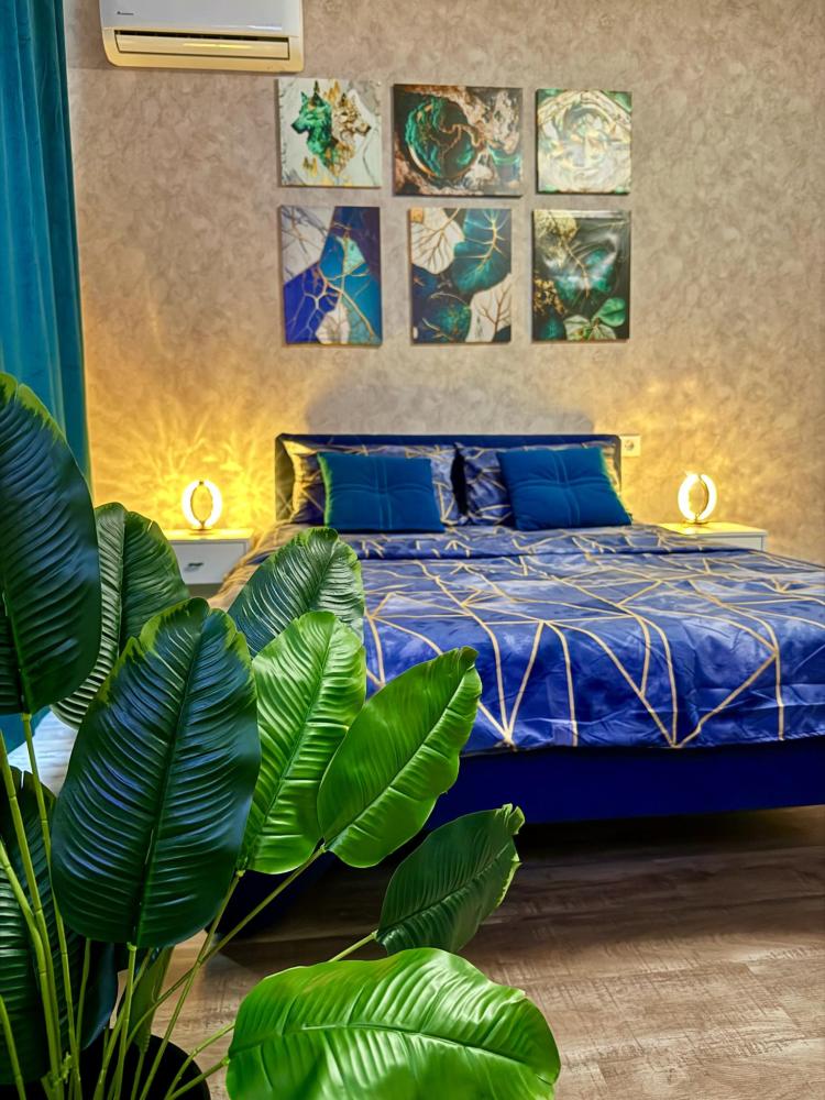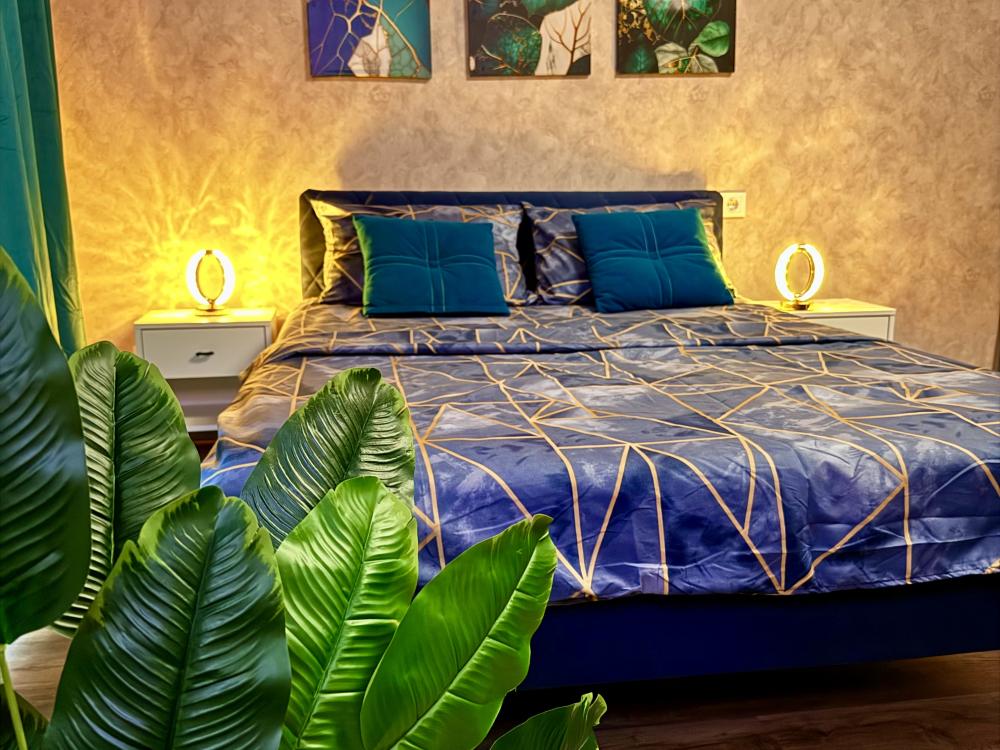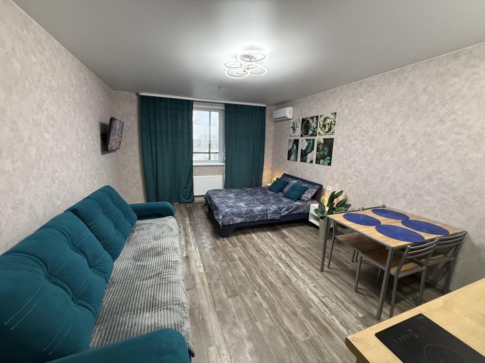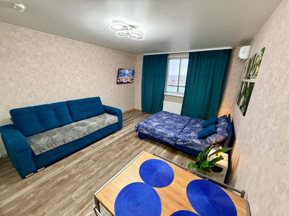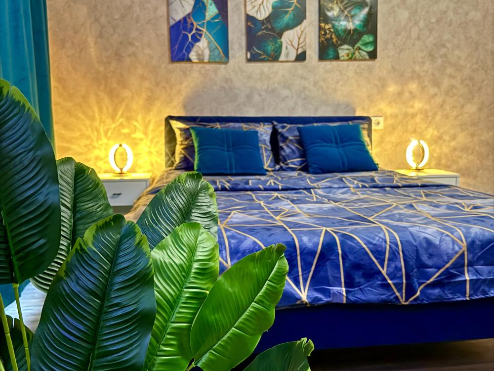 Апартаменты для 4 гостей. Спальные места: диван и двуспальная кровать. В квартире есть всё необходимое для комфортного проживания: санузел , душевая кабина, кухня оборудованная необходимой посудой и техникой, Smart TV, бесплатный WI-FI.