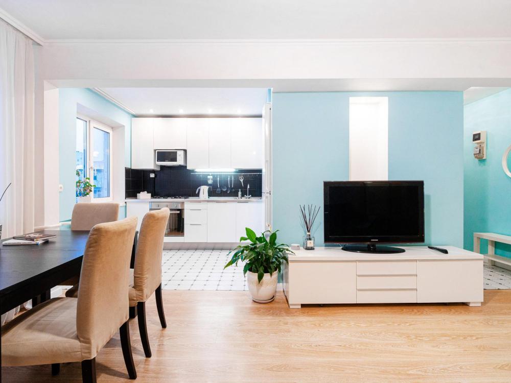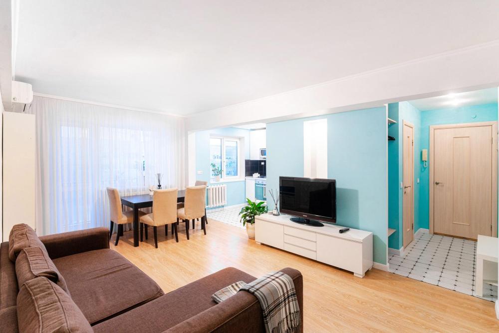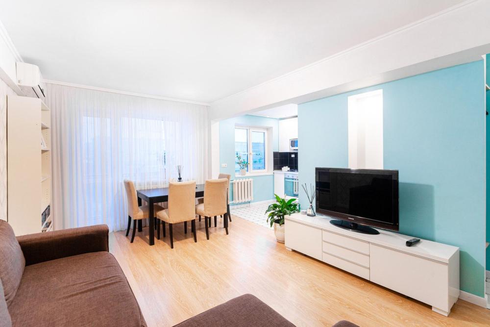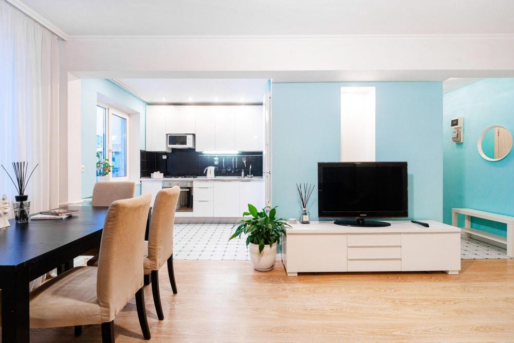 Ортопедический матрас со свежим хлопковым бельём — для комфортного сна и отдыха. Полный набор бытовой техники: кондиционер, бойлер, стиральная машина, посудомоечная машина, чайник, микроволновка, фен, утюг и гладильная доска. Современная кухня с посудой и необходимыми принадлежностями. Быстрый Wi‑Fi и Smart‑TV, Станция Алиса. Просторная гардеробная — для комфортного хранения вещей. Открытая парковка рядом с домом