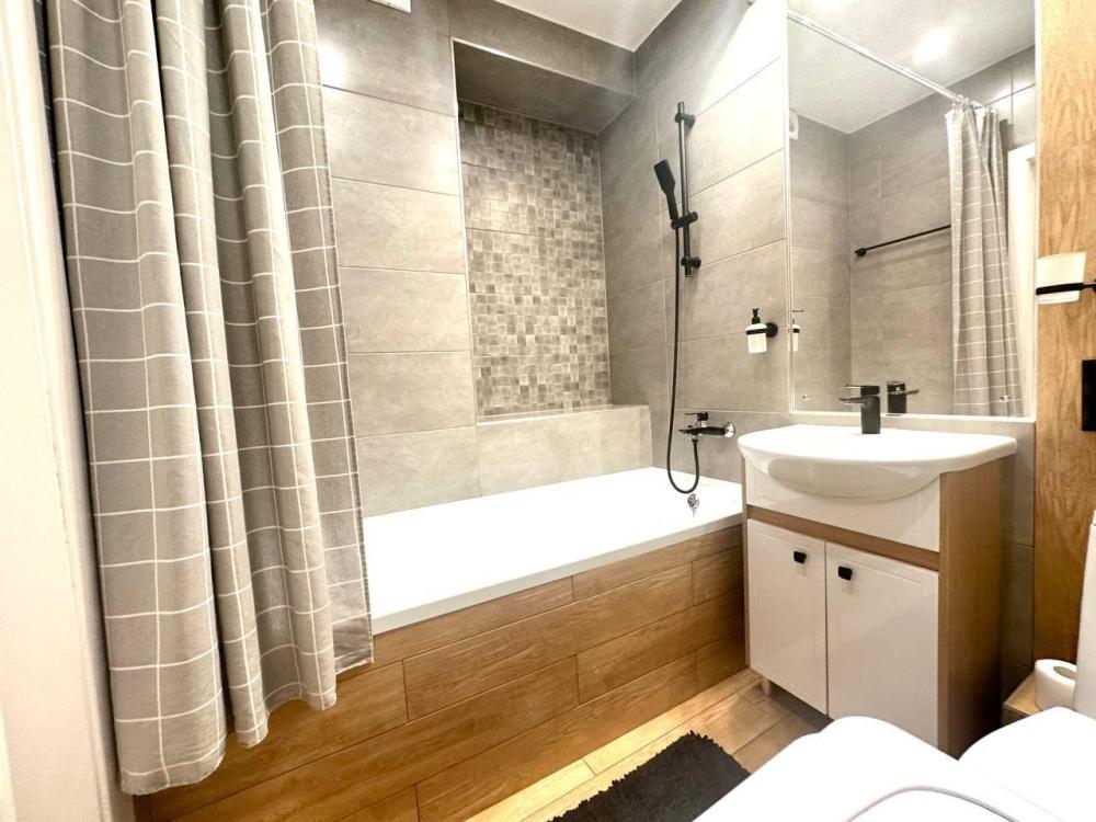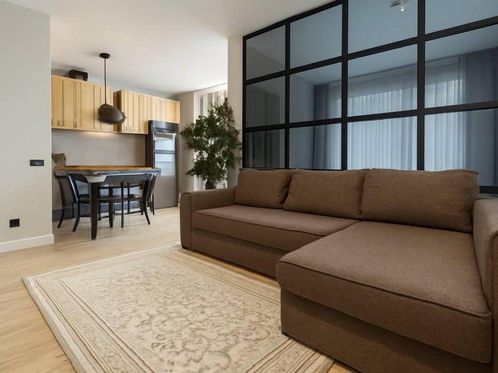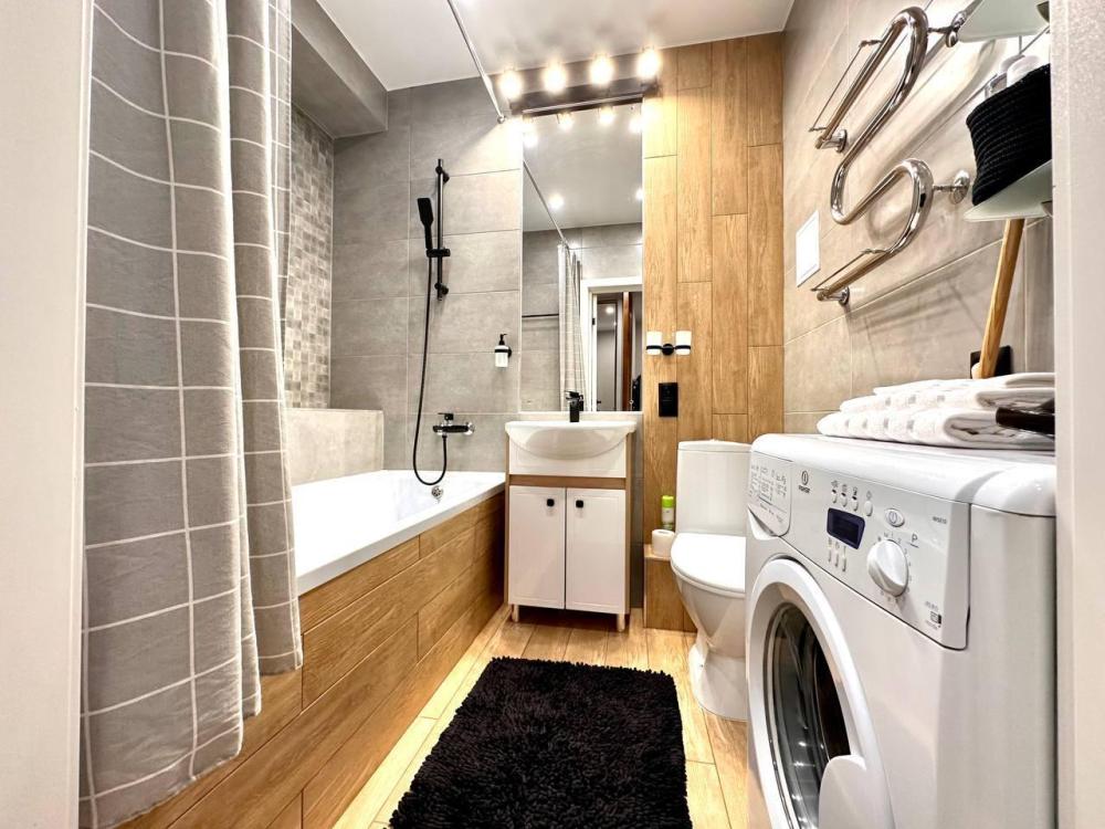 Апартаменты для 4 гостей. Спальные места: диван и двуспальная кровать. Качественное хлопковое постельное белье и полотенца. Полный набор бытовой техники: чайник, микроволновая печь, фен, утюг, гладильная доска, сушилка для белья. Полностью оборудованная кухня с необходимыми кухонными принадлежностями и посудой. Быстрый Wi-Fi и Smart-TV.