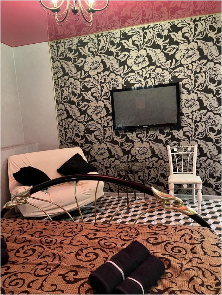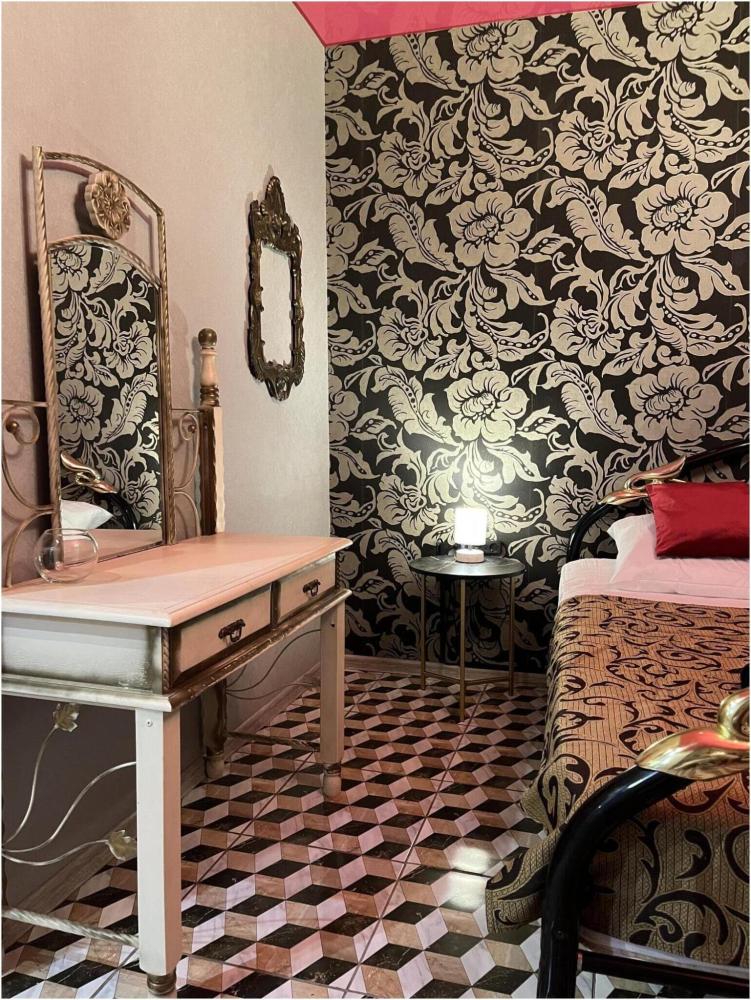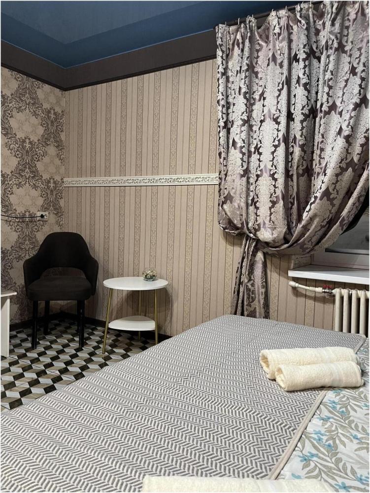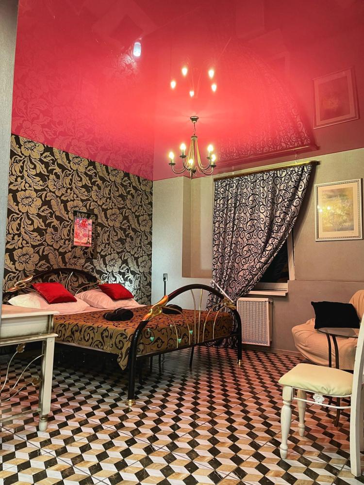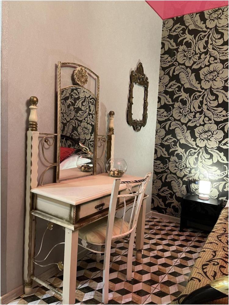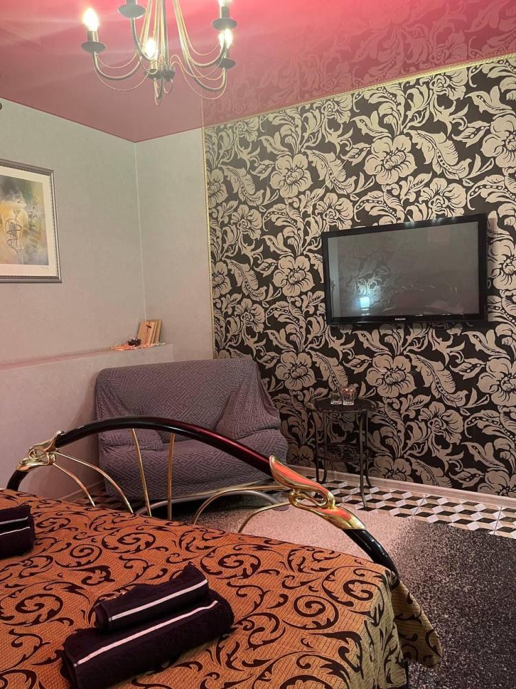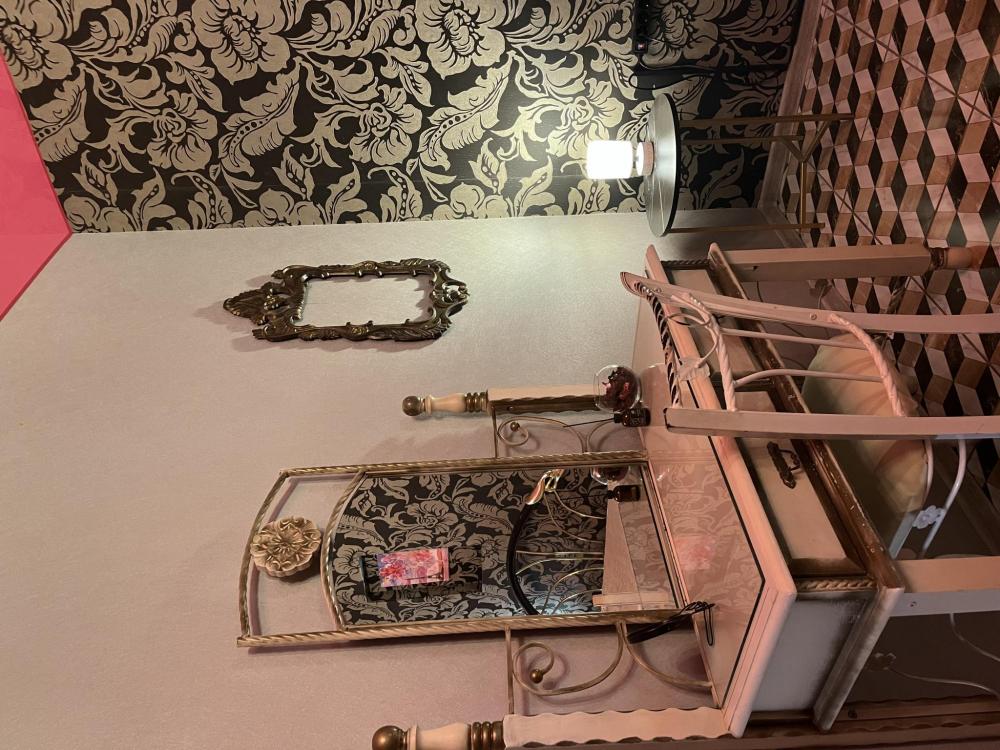 Винтаж Номер выполнен в романтическом стиле Винтаж, укомплектован кроватью King Size, креслом и зоной с туалетным столиком, винтажным зеркальным столиком ручной работы и большим плазменным телевизором. Так же в номере индивидуальная душевая комната, индивидуальные средства гигиена, полотенца и халаты.
