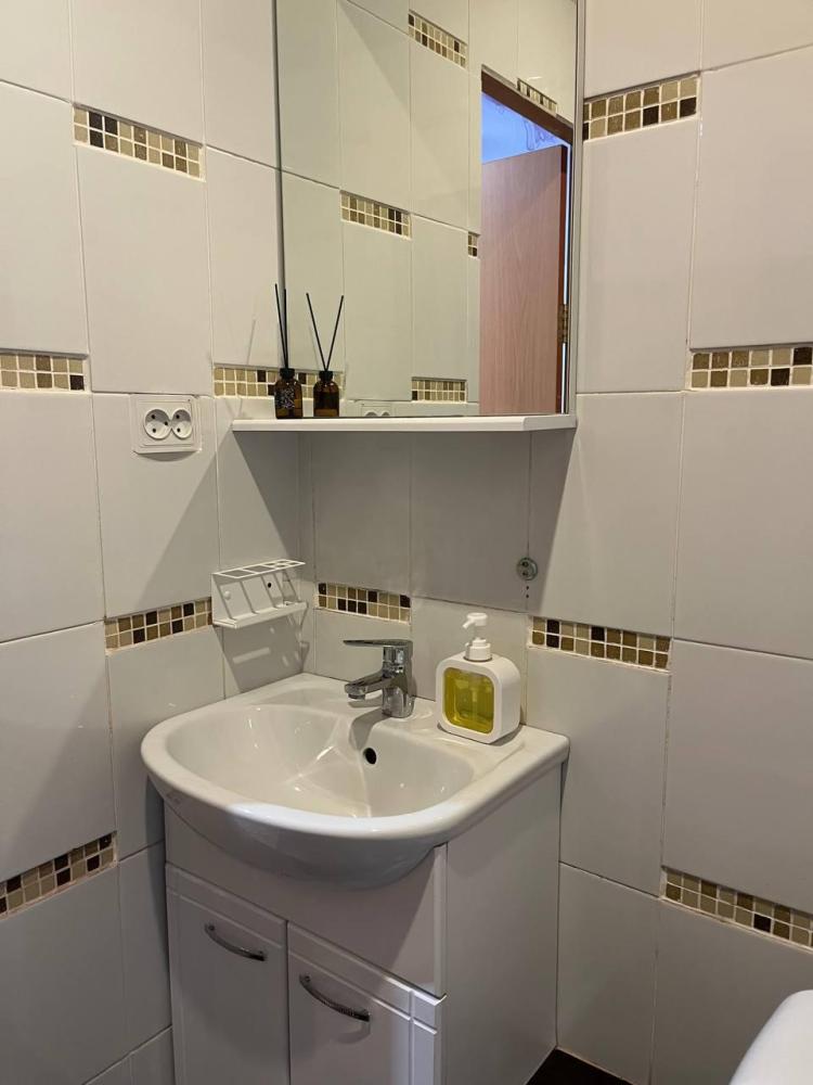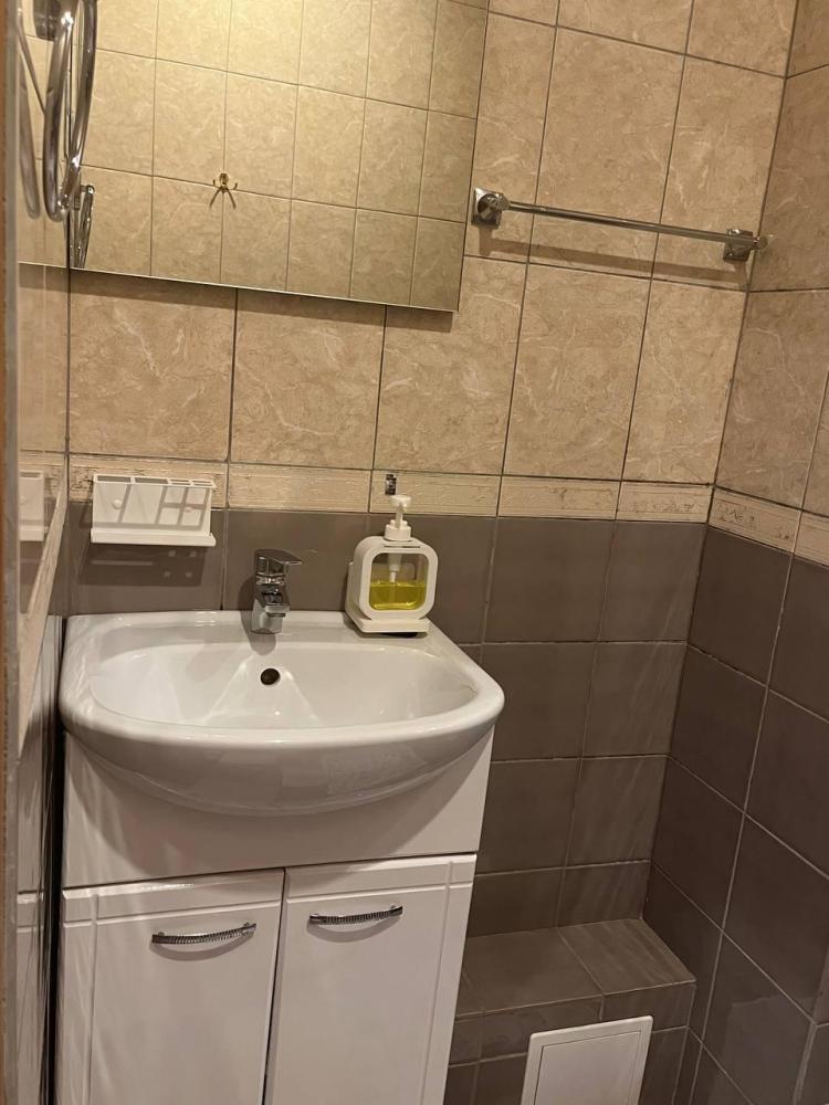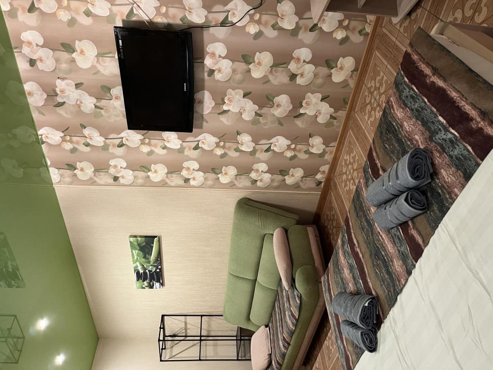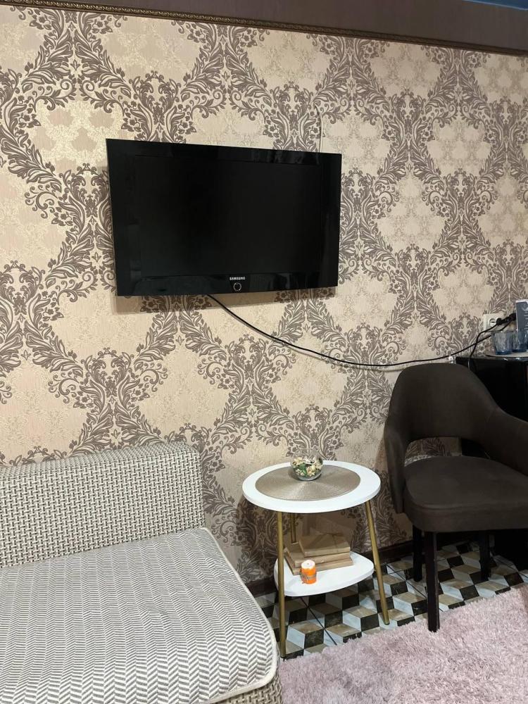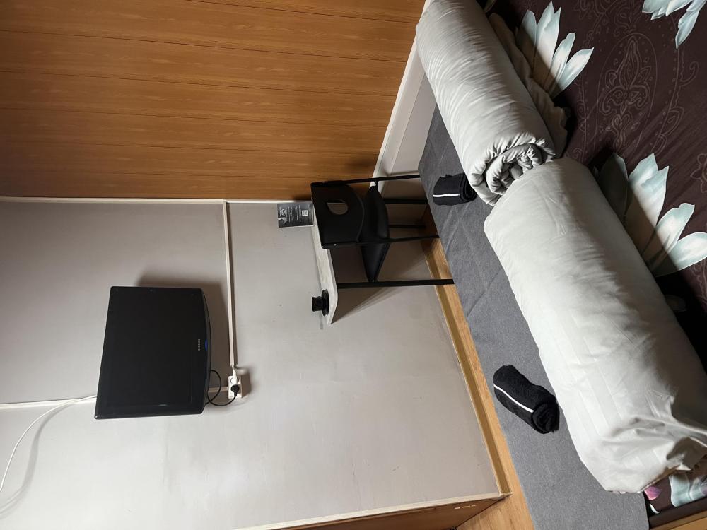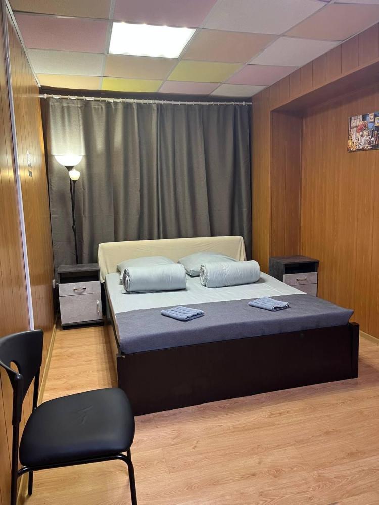 Номер укомплектован одной двуспальной кроватью, столиком, стулом, плазменным телевизором. В номере предусмотрена туалетная комната без душа. Без окна. Душ на этаже!