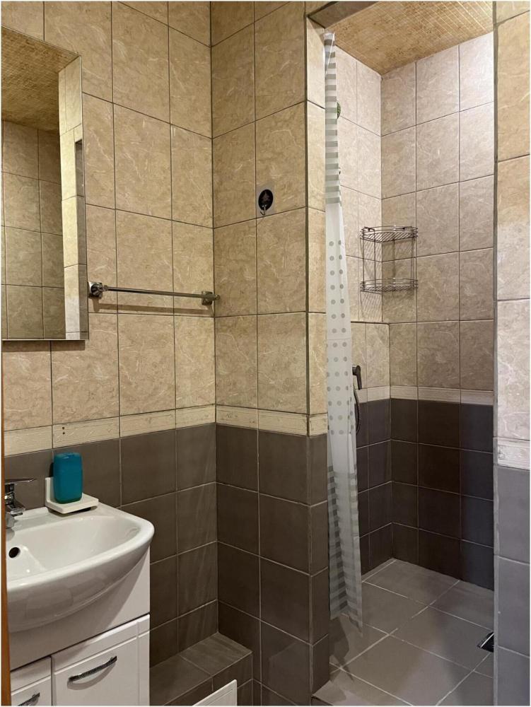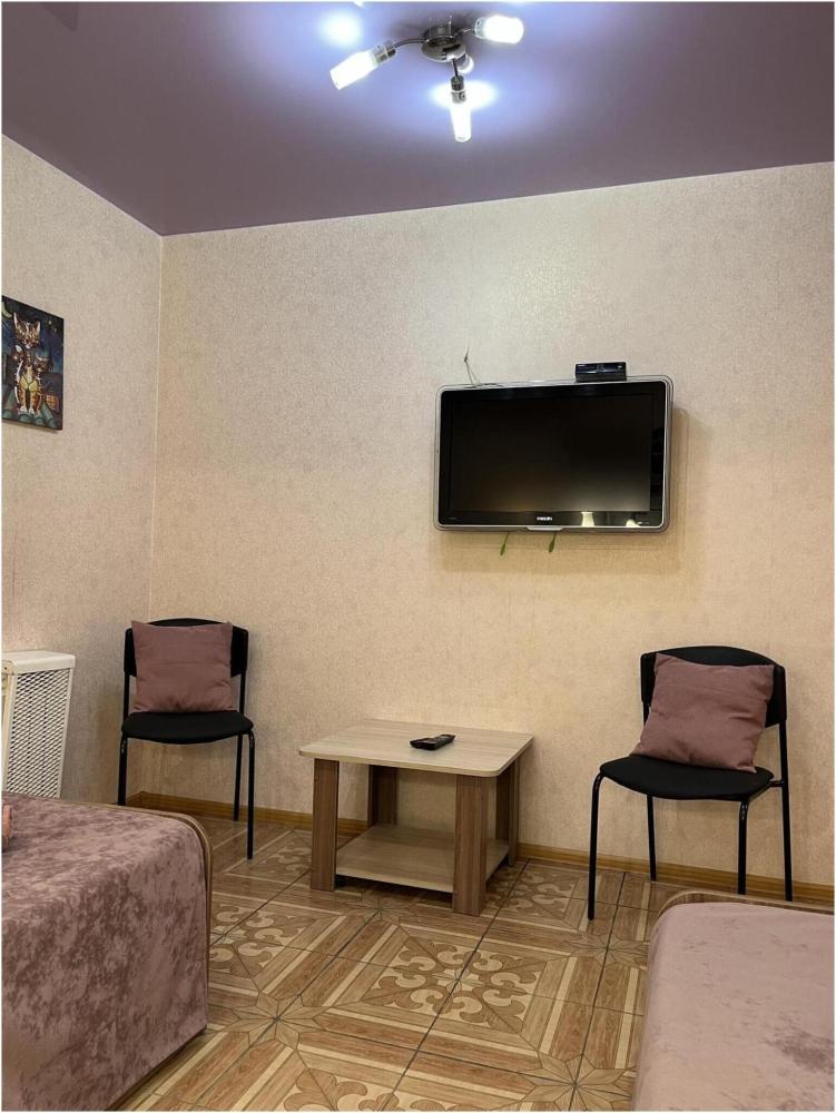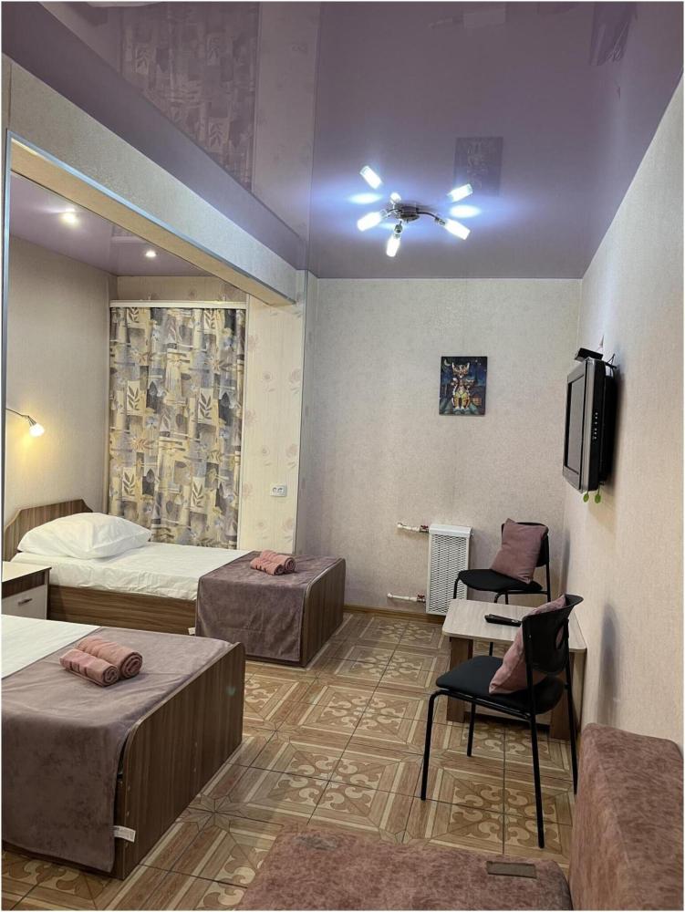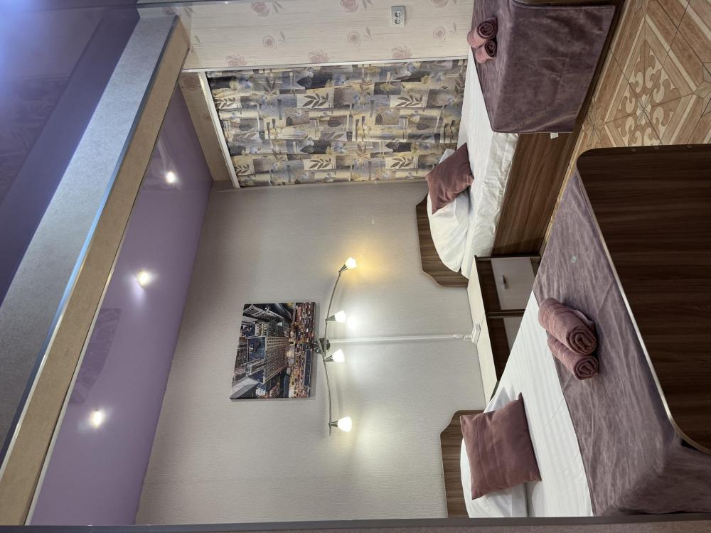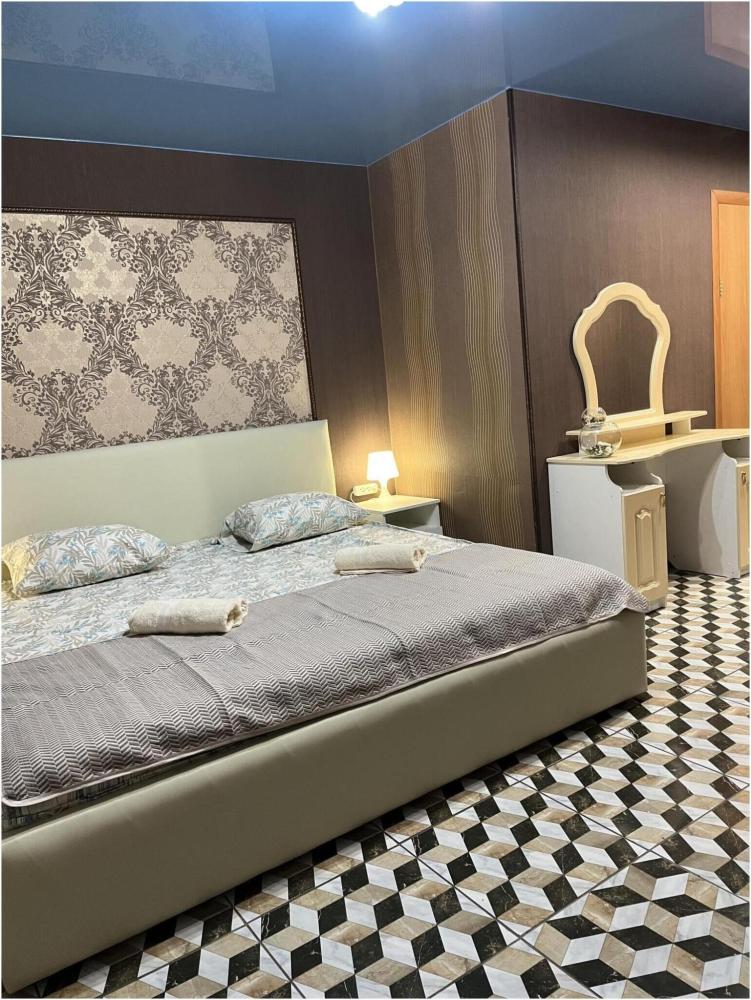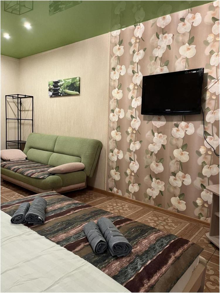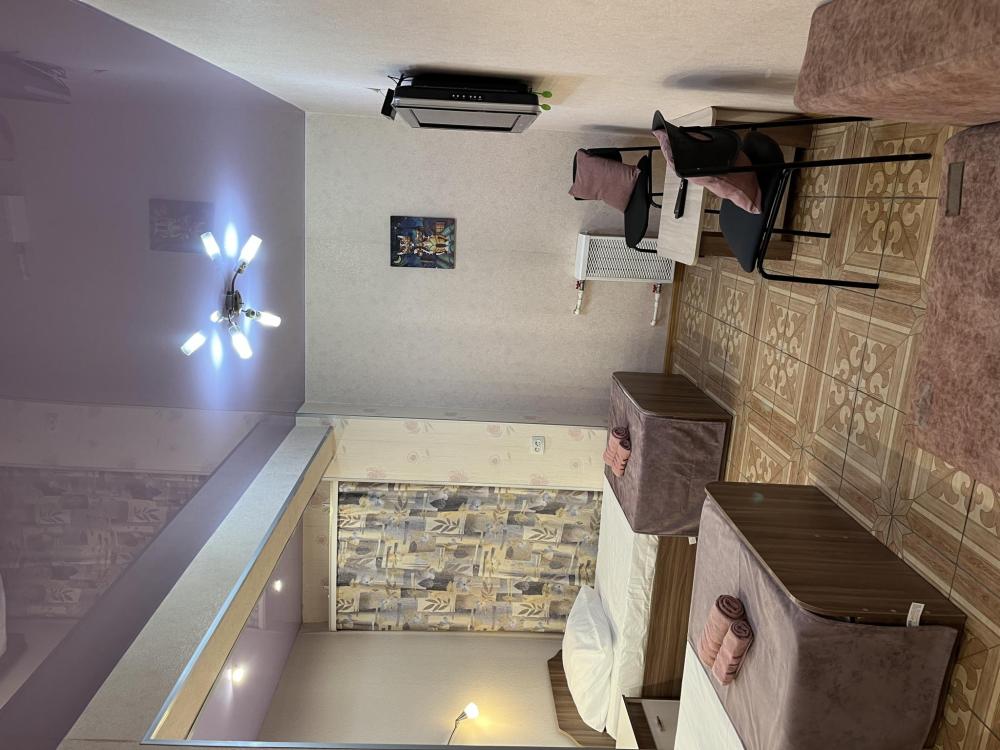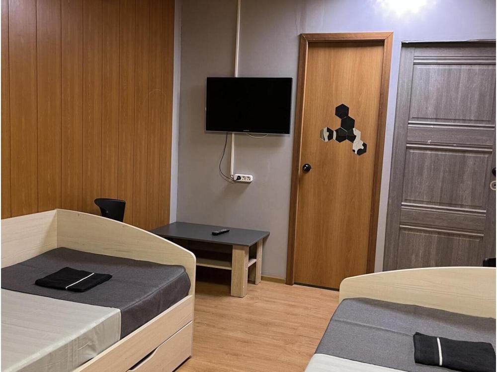 Стандарт улучшенный с двуспальной Номер укомплектован большой двуспальной кроватью с ортопедическим матрасом, диваном в качестве доп места, зоной с туалетным столиком, большим плазменным телевизором. Так же в номере предусмотрен индивидуальный сан узел с душем.