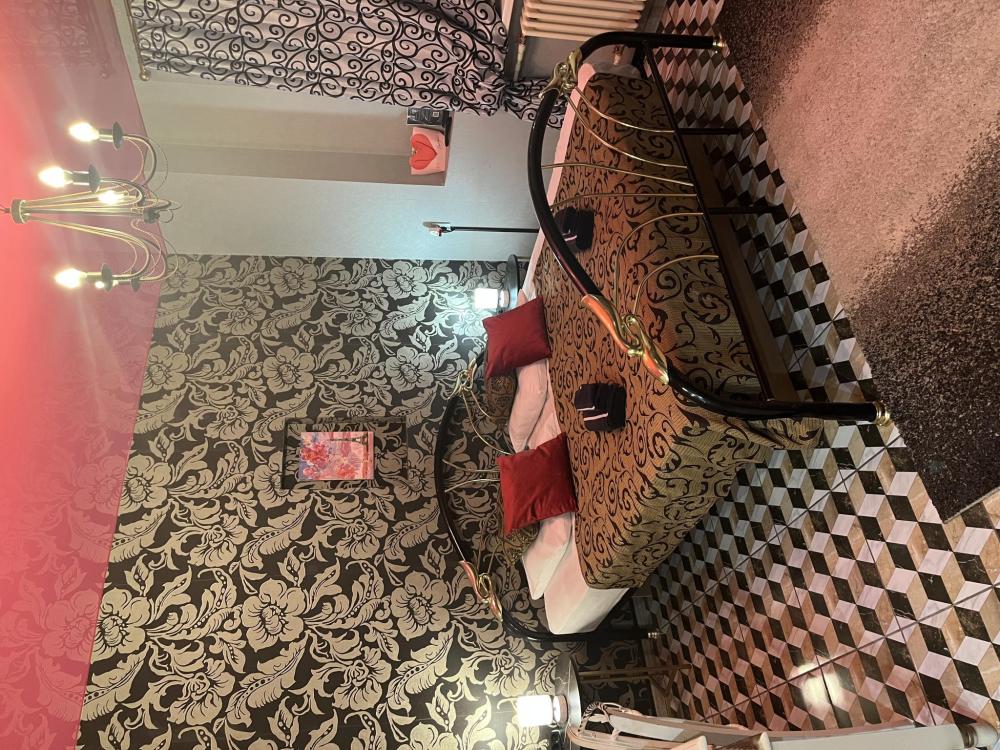 Винтаж ♥️Номер выполнен в романтическом стиле Винтаж, укомплектован кроватью King Size, креслом и зоной с туалетным столиком, винтажным зеркальным трюмо ручной работы и большим плазменным телевизором. ?Так же в номере предусмотрены индивидуальная душевая комната, качественные косметические средства, полотенца, халаты и тапочки. ♥️Винтаж наполнен приятной романтичной атмосферой, подходит как для уединенных встреч, так и для отдыха после длительной дороги.