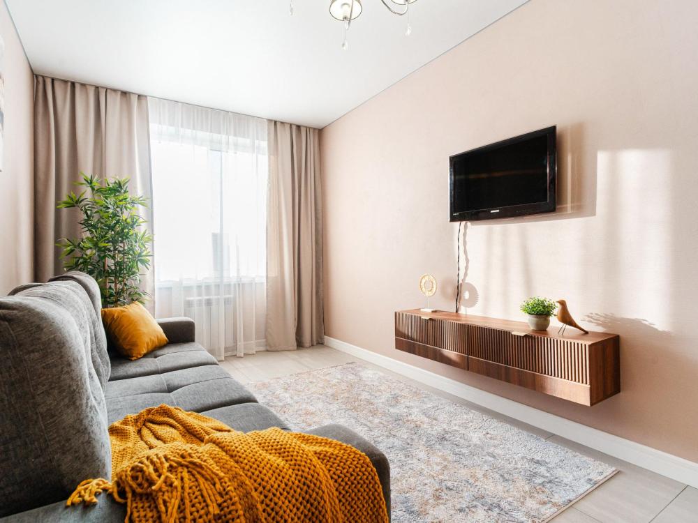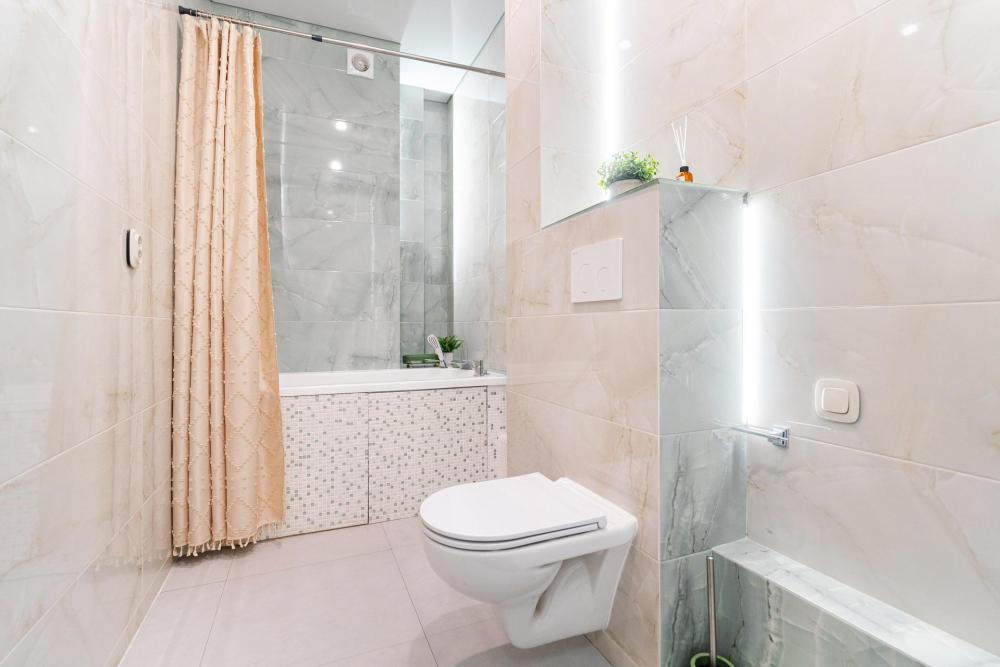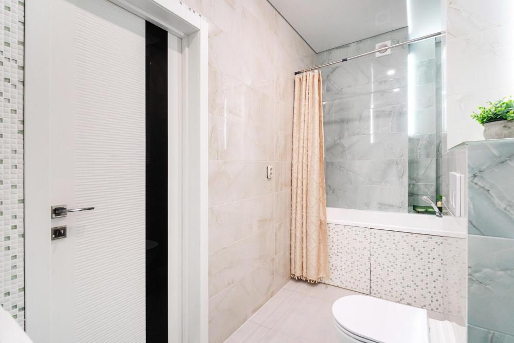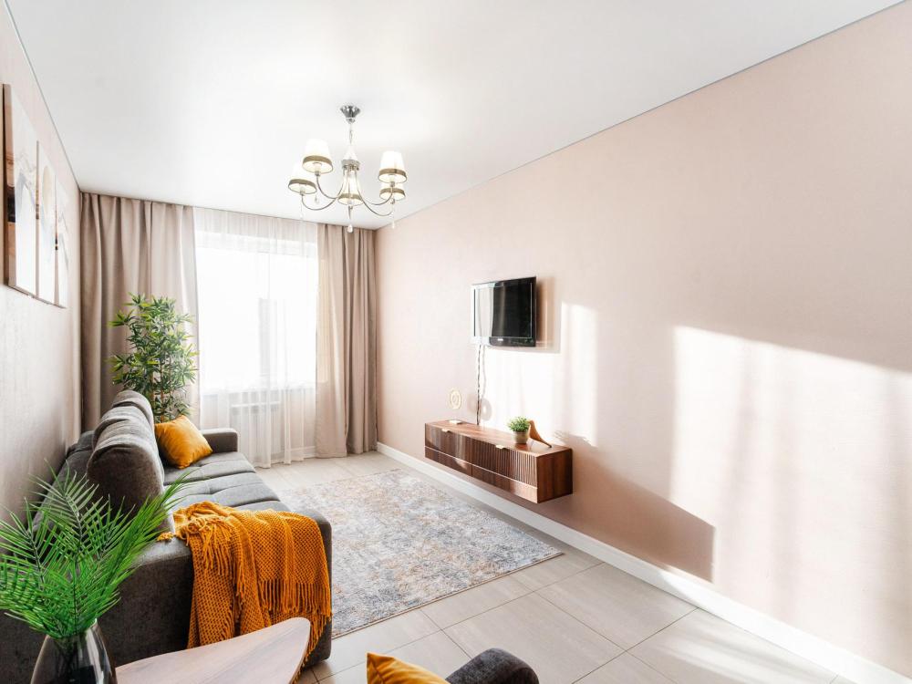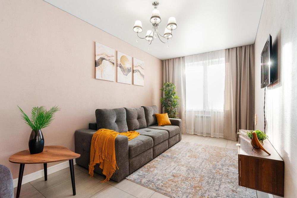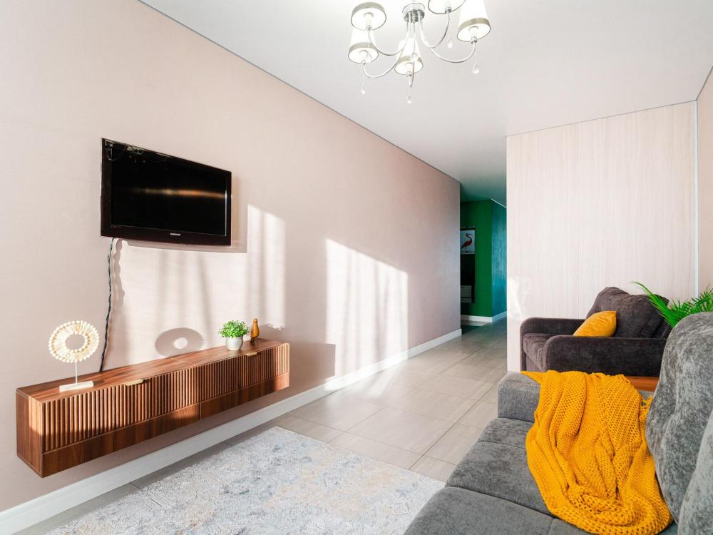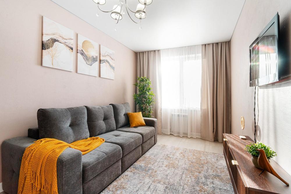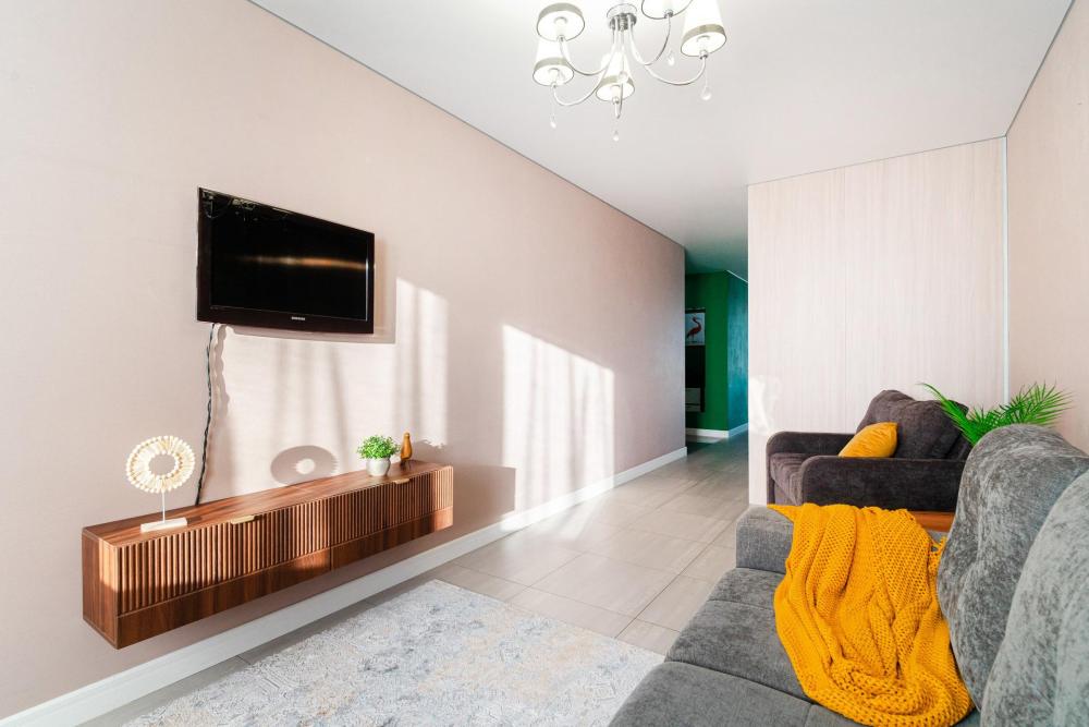 Двухомнатная квартира 46 м², 16 этаже (лифт). 2-спальных раскладной диван 160/190 + 1-спальное раскладное кресло 110/190. Свежее постельное белье и полотенца. Базовые одноразовые гигиенические средства. Бытовая техника: холодильник, бойлер, стиральная машинка, чайник, микроволновка, чайник, фен, утюг, гладильная доска, вентилятор. Современная кухня, полностью оснащенная посудой и кухонным инвентарем. Wi-Fi 100 Мбит/с и Smart-TV
