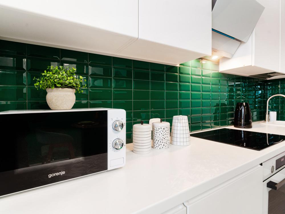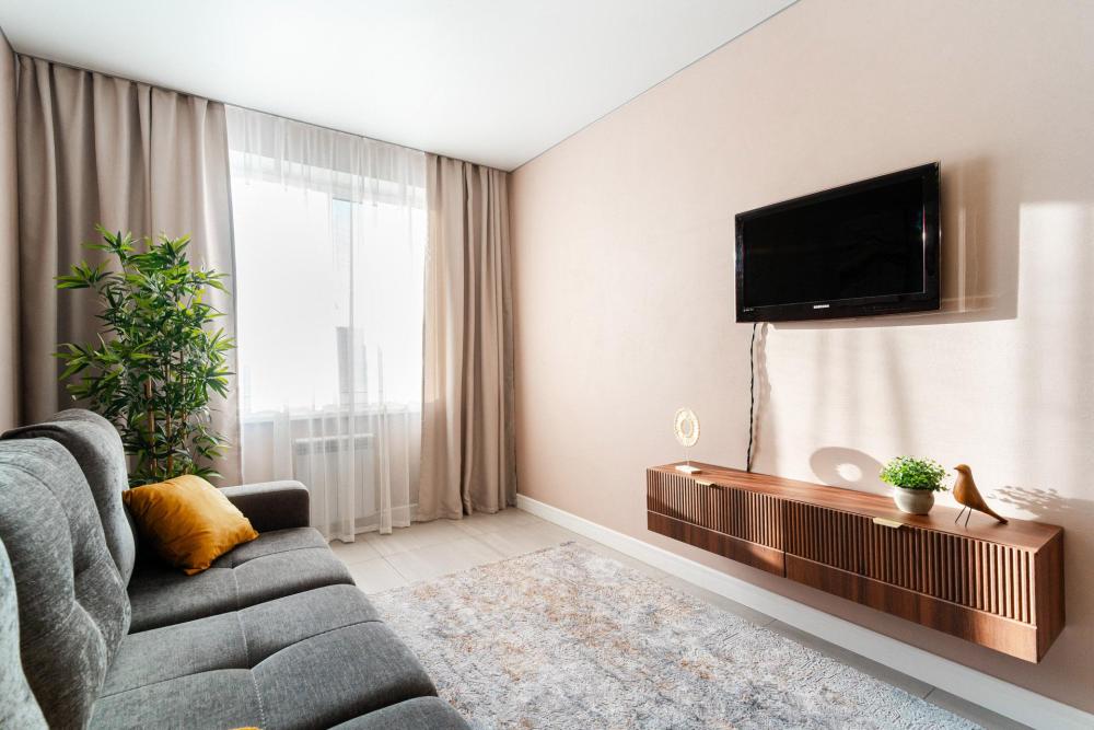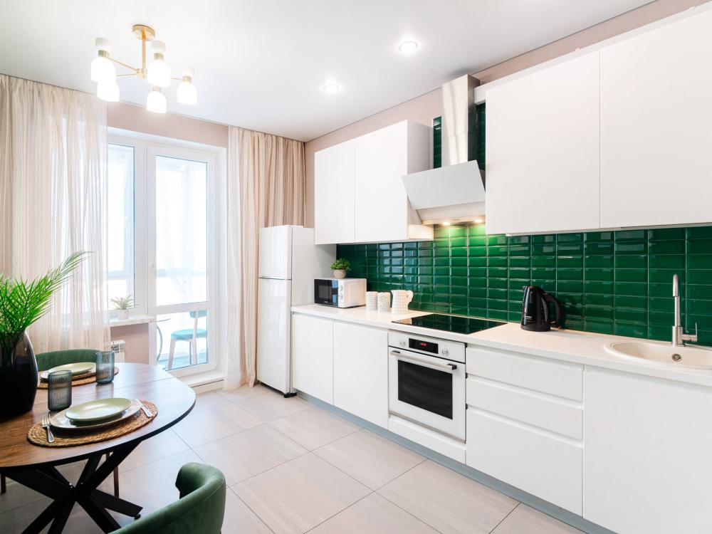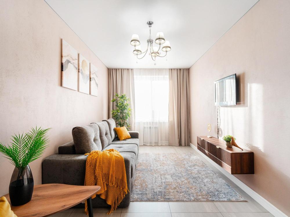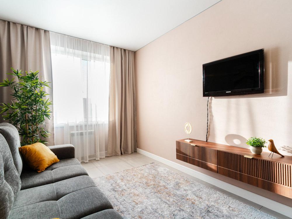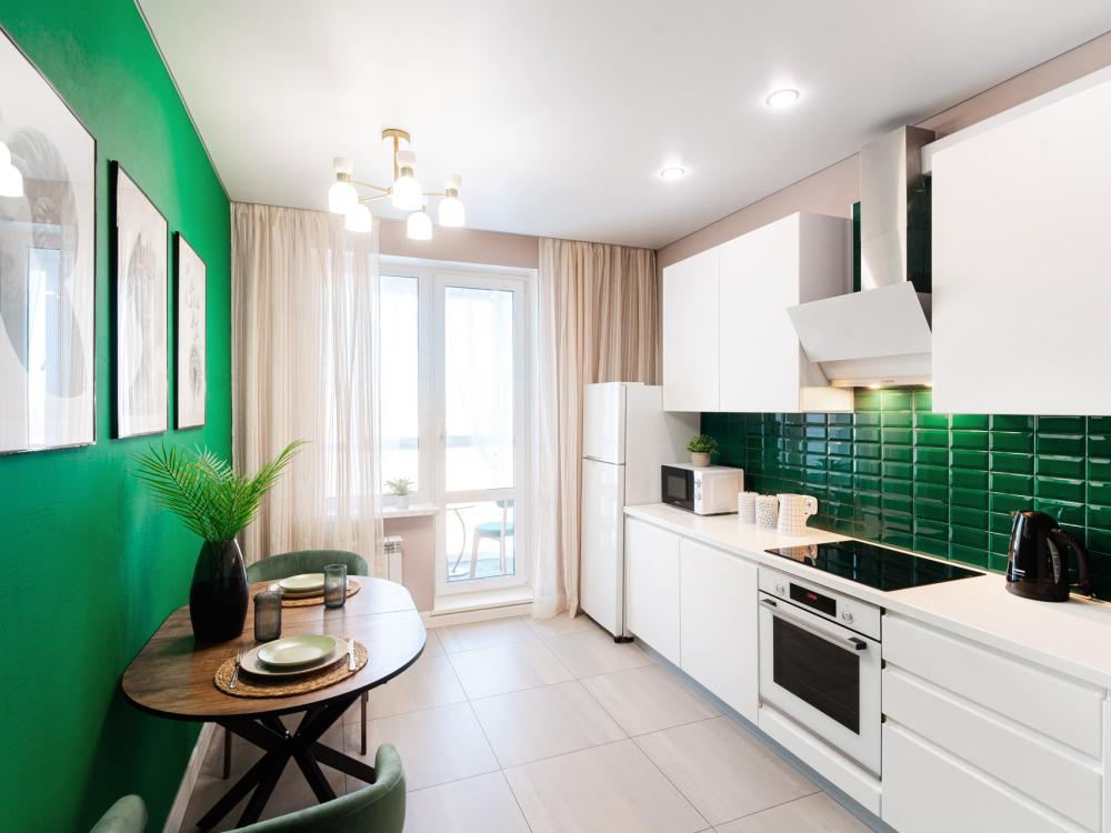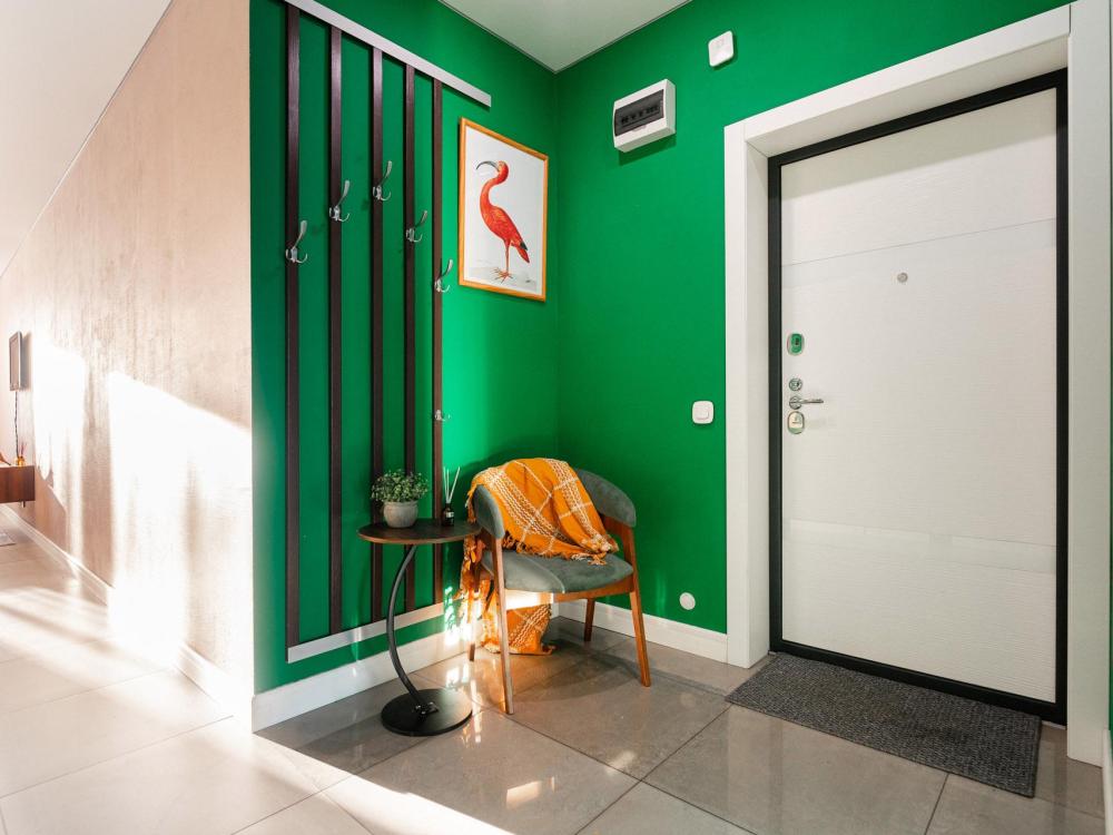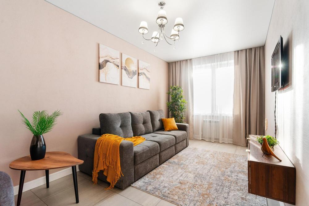 Двухомнатная квартира 46 м², 16 этаже (лифт). 2-спальных раскладной диван 160/190 + 1-спальное раскладное кресло 110/190. Свежее постельное белье и полотенца. Базовые одноразовые гигиенические средства. Бытовая техника: холодильник, бойлер, стиральная машинка, чайник, микроволновка, чайник, фен, утюг, гладильная доска, вентилятор. Современная кухня, полностью оснащенная посудой и кухонным инвентарем. Wi-Fi 100 Мбит/с и Smart-TV
