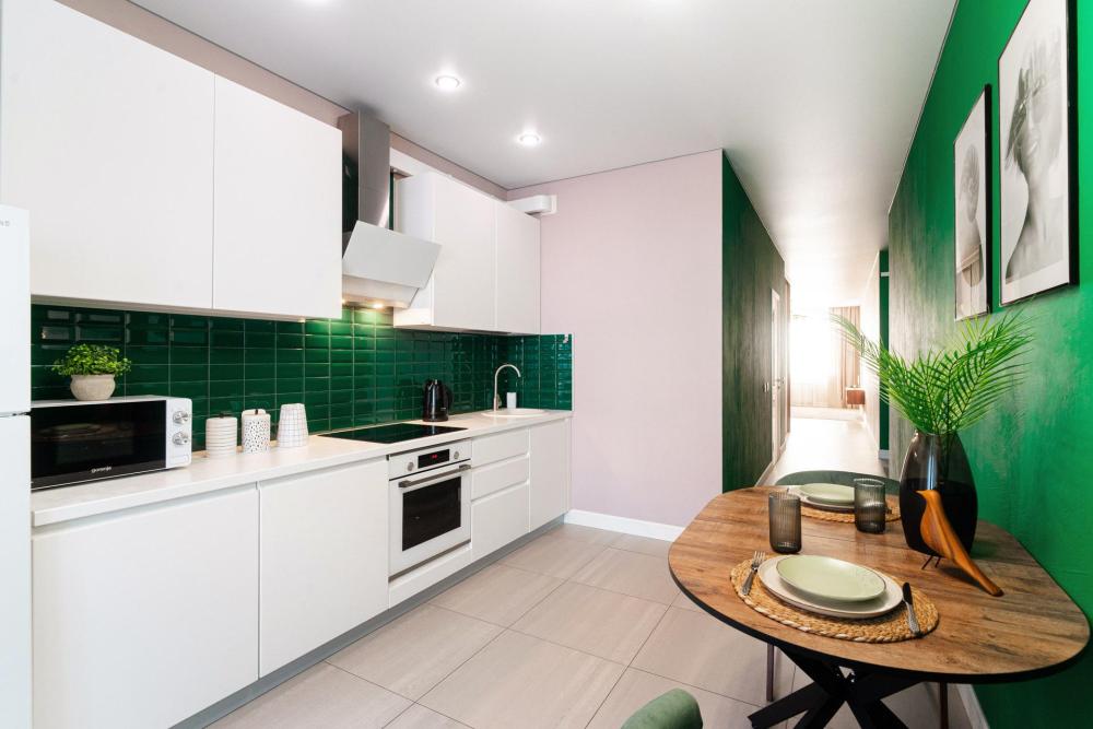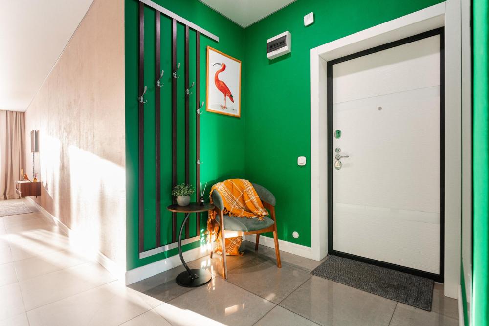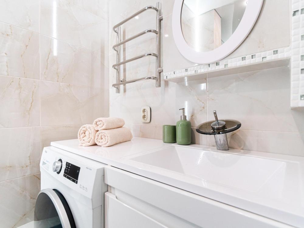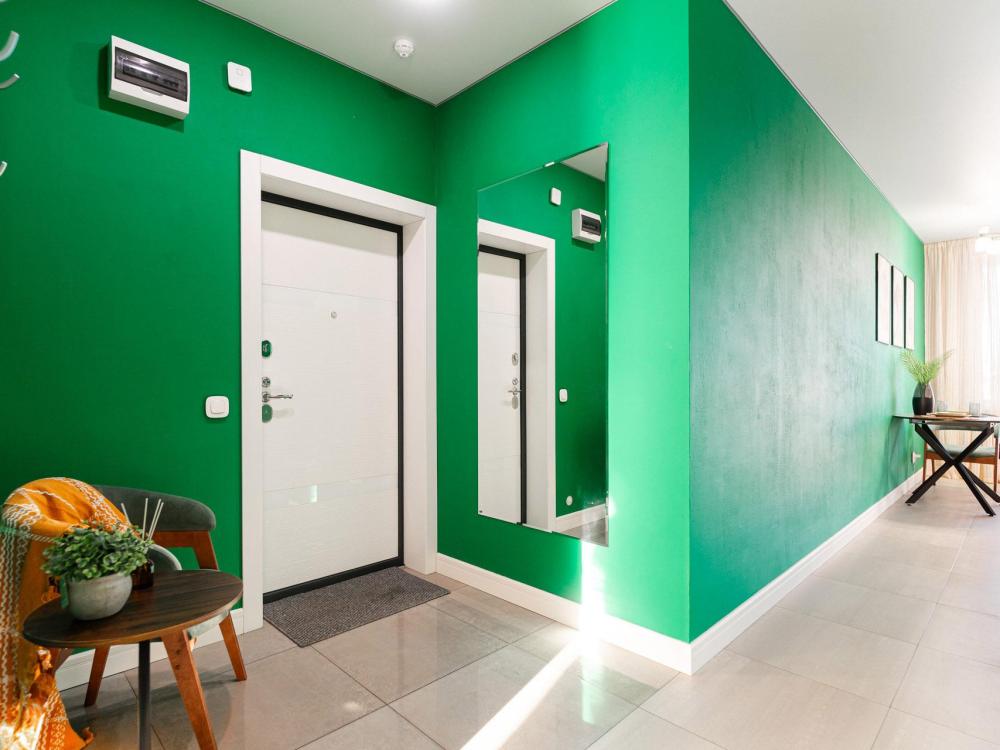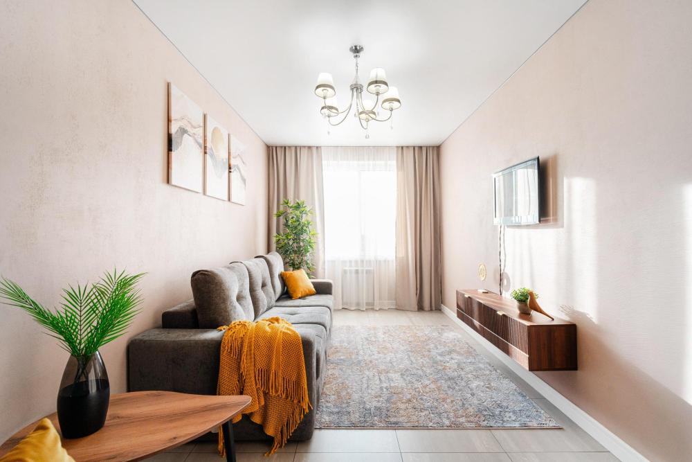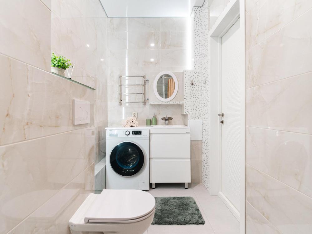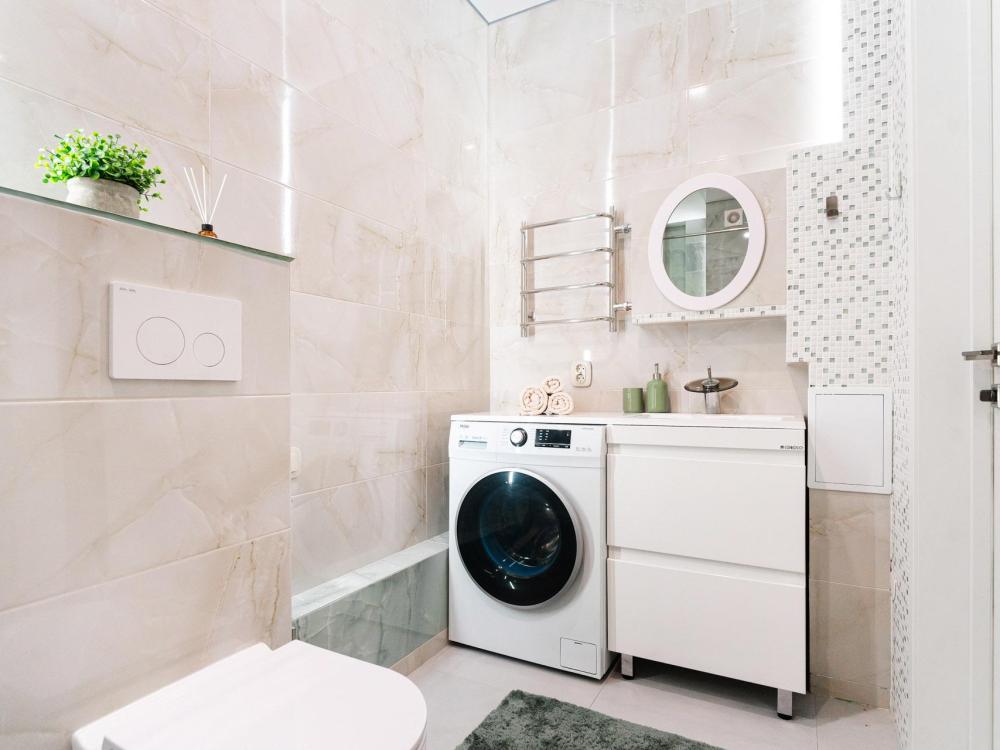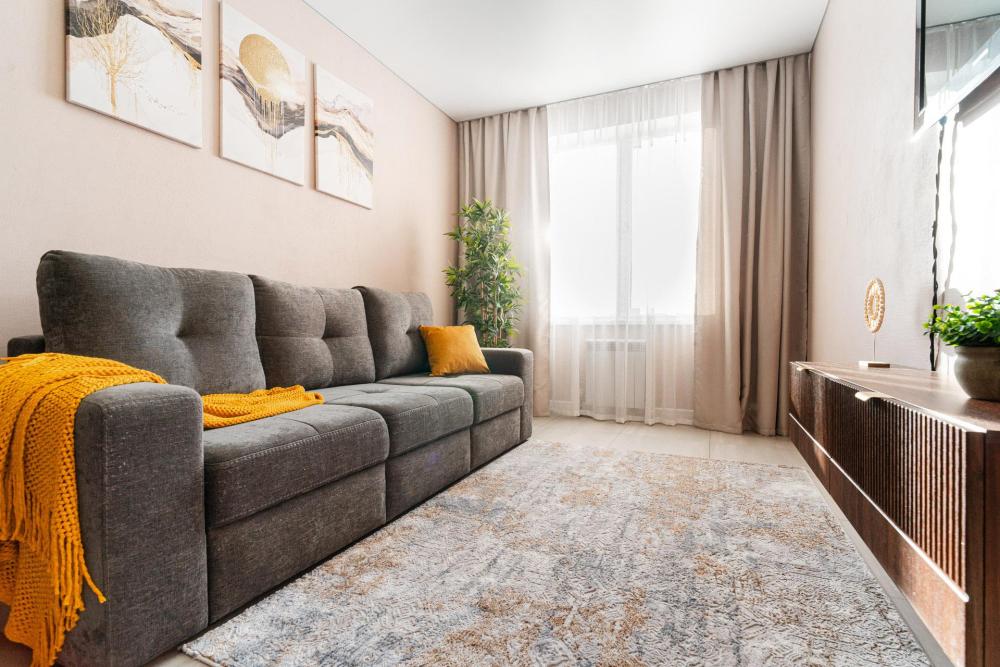 Двухомнатная квартира 46 м², 16 этаже (лифт). 2-спальных раскладной диван 160/190 + 1-спальное раскладное кресло 110/190. Свежее постельное белье и полотенца. Базовые одноразовые гигиенические средства. Бытовая техника: холодильник, бойлер, стиральная машинка, чайник, микроволновка, чайник, фен, утюг, гладильная доска, вентилятор. Современная кухня, полностью оснащенная посудой и кухонным инвентарем. Wi-Fi 100 Мбит/с и Smart-TV