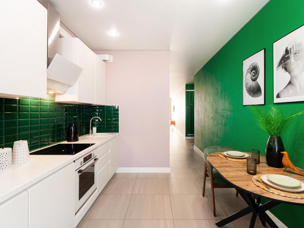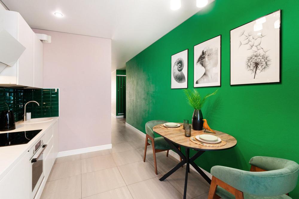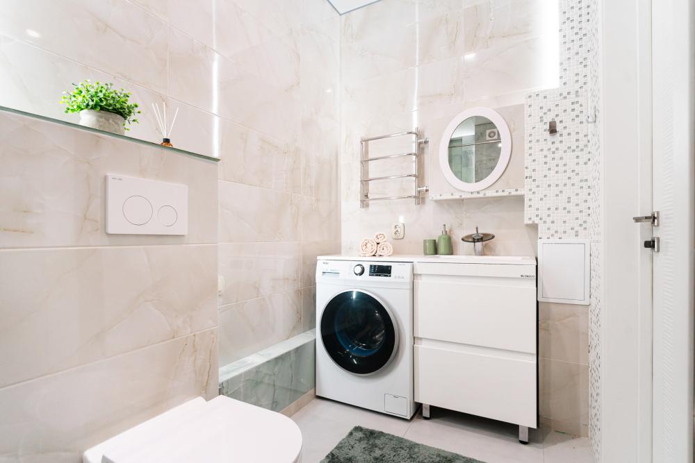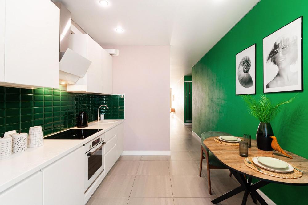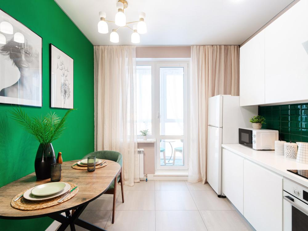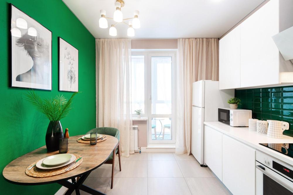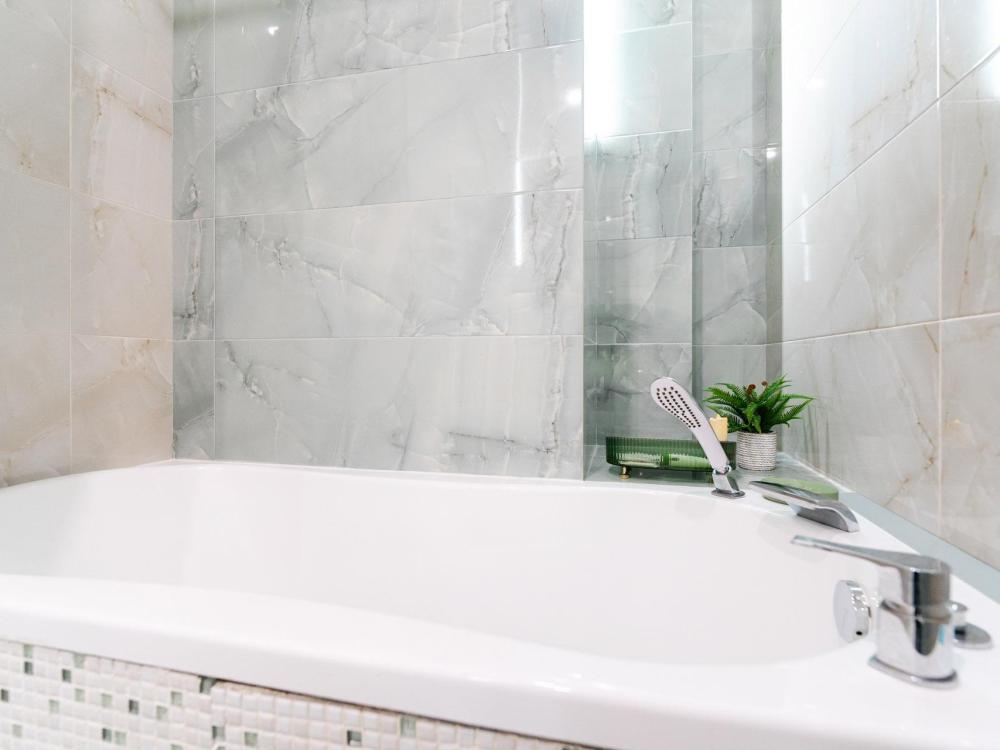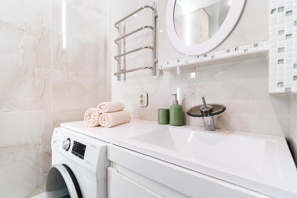 Двухомнатная квартира 46 м², 16 этаже (лифт). 2-спальных раскладной диван 160/190 + 1-спальное раскладное кресло 110/190. Свежее постельное белье и полотенца. Базовые одноразовые гигиенические средства. Бытовая техника: холодильник, бойлер, стиральная машинка, чайник, микроволновка, чайник, фен, утюг, гладильная доска, вентилятор. Современная кухня, полностью оснащенная посудой и кухонным инвентарем. Wi-Fi 100 Мбит/с и Smart-TV