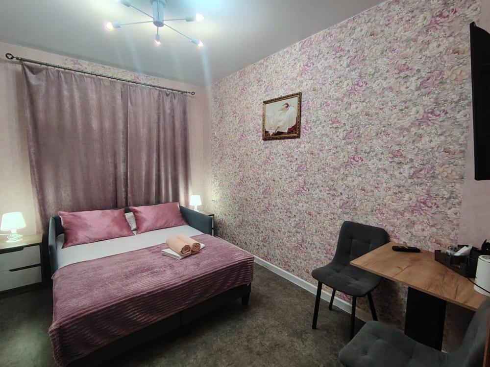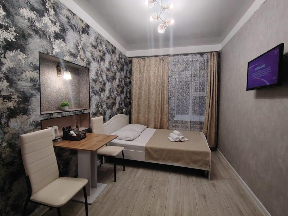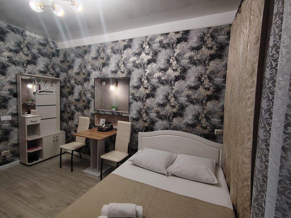 Комфортабельная комната стандарт, есть всё необходимое: Двуспальная кровать, (комплект постельного белья и полотенца) прикроватный столик с пуфиками, гардероб, телевизор, Wi-Fi. Душевая кабина и сан.узел (средства гигиены).