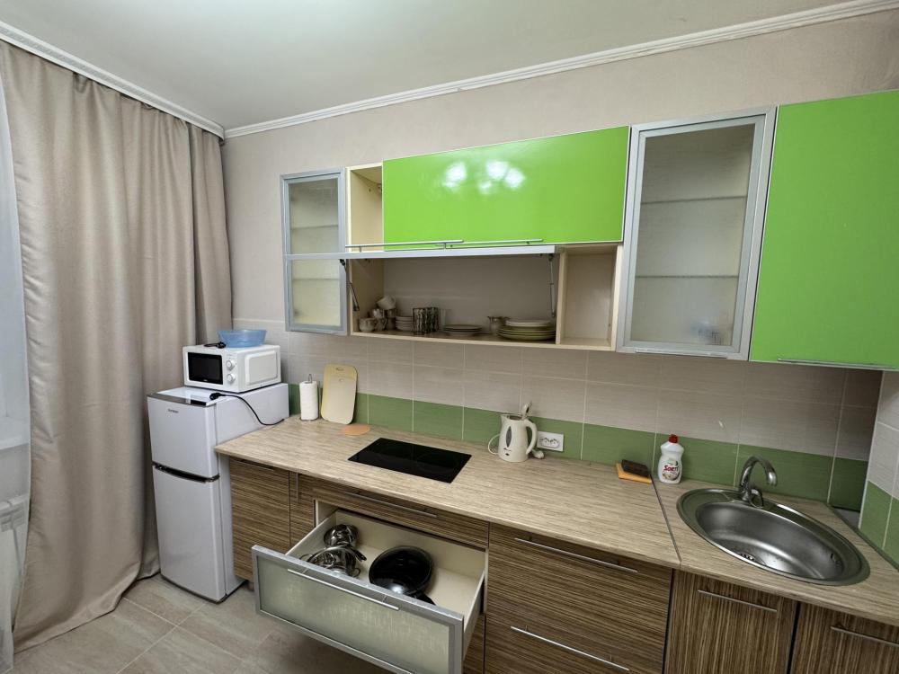 Сдается уютная и чистая квартира посуточно! В квартире предусмотрено 2 спальных места, двуспальная кровать и раскладной диван. В вашем распоряжении будет все необходимое для комфортного размещения: ? Удобные спальные места: двуспальная кровать с ортопедическим матрасом, раскладной диван, телевизор, WI-FI ? Полностью оборудованная кухня с необходимыми кухонными принадлежностями и посудой. Холодильник, микроволновая печь, электрическая плита, мультиварка, чайник. ? Ванная комната с ванной, гигиенические принадлежности (шампунь, гель для душа, зубная щетка с пастой),стиральная машинка. Расположение до: ? ЖД Вокзал 20 минут на машине 9,7 км. ✈️ Аэропорт 35 минут на машине 17 км ? Танковый институт 22 минуты на машине 12 км ?пос. Светлый 242 Учебный корпус ВДВ 5 минут на машине 7 км Инфраструктура комплекса: ? На территории дома своя детская игровая площадка ? Для гостей на авто просторная парковка с круглосуточным видеонаблюдением ? Три минуты пешком до Гипермаркет Лента, Ростикс, Маримото (лапшичная),До-До пицца, Лаваш (шаурма), аптеки, салон красоты, салон цветов и многое другое. ? 7 минут пешком до Арт бассейна (хамам, тренажерный зал), парк для прогулок и отдыха. ‼️Правила заселения‼️ ⭐️ Заселение с 14.00, выезд до 12.00. ⭐️ При заселении предъявление паспорта обязательно!! ⭐️ Мы бережно относимся к своей квартире, поэтому берем страховой депозит 3000 рублей ( возвращается в течении дня при условии сохранности имущества). ?Актуальные цены в календаре бронирования, выбирайте нужные вам даты чтобы уточнить стоимость жилья. ⚠️ Обратите ОСОБОЕ внимание ‼️ Курение в квартире и шумные вечеринки категорически запрещены, штраф - удержание депозита ‼️